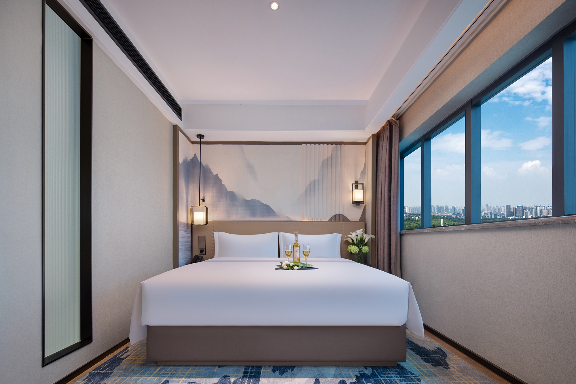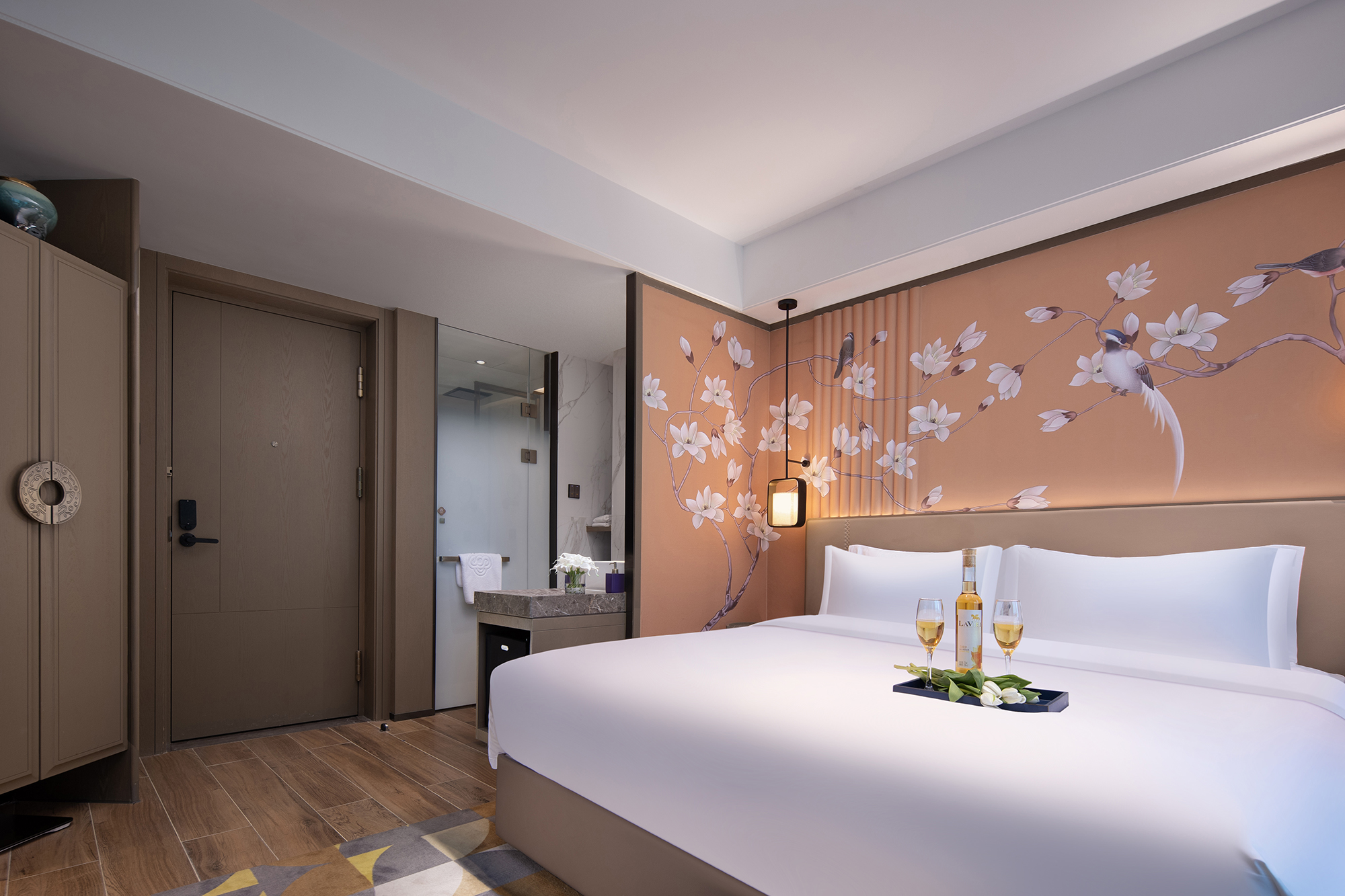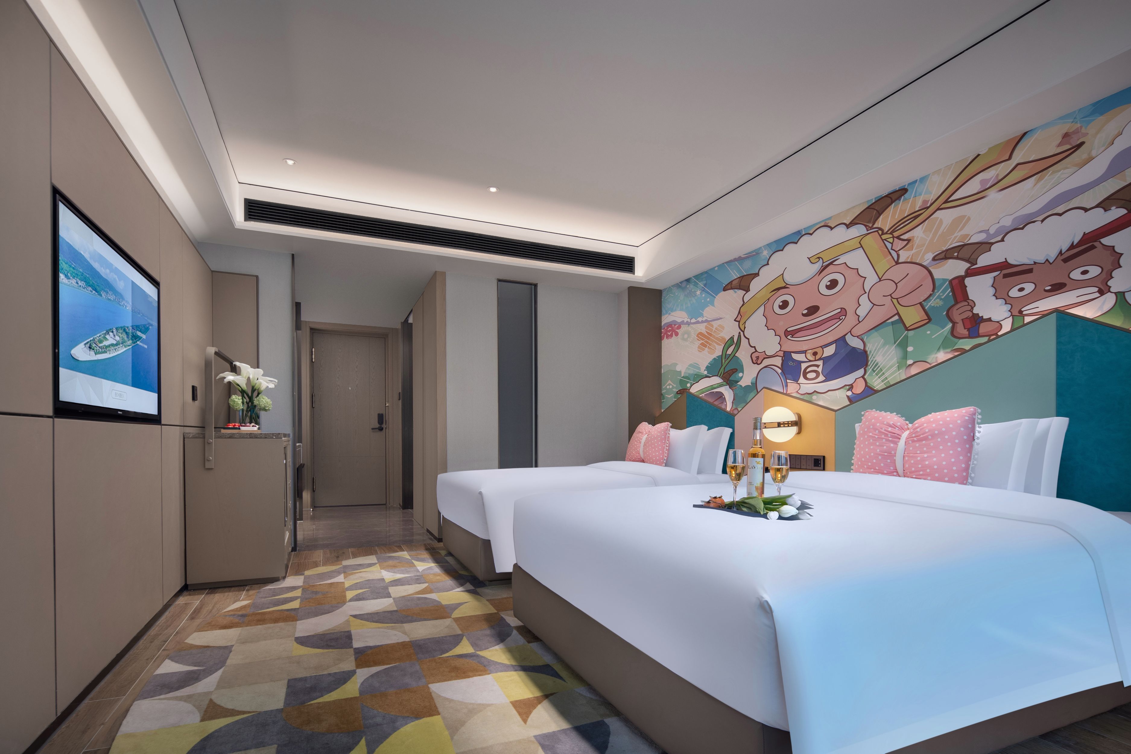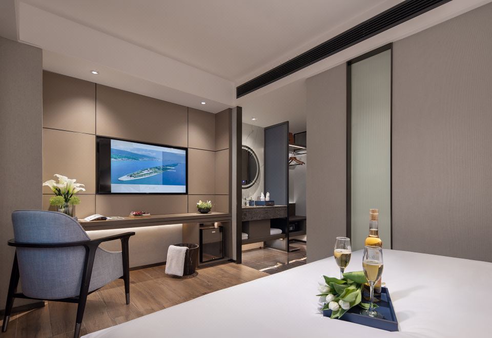 Xinyi Cozy Double Bed Room With Mini Fridge And Support For Mobile Screen Casting