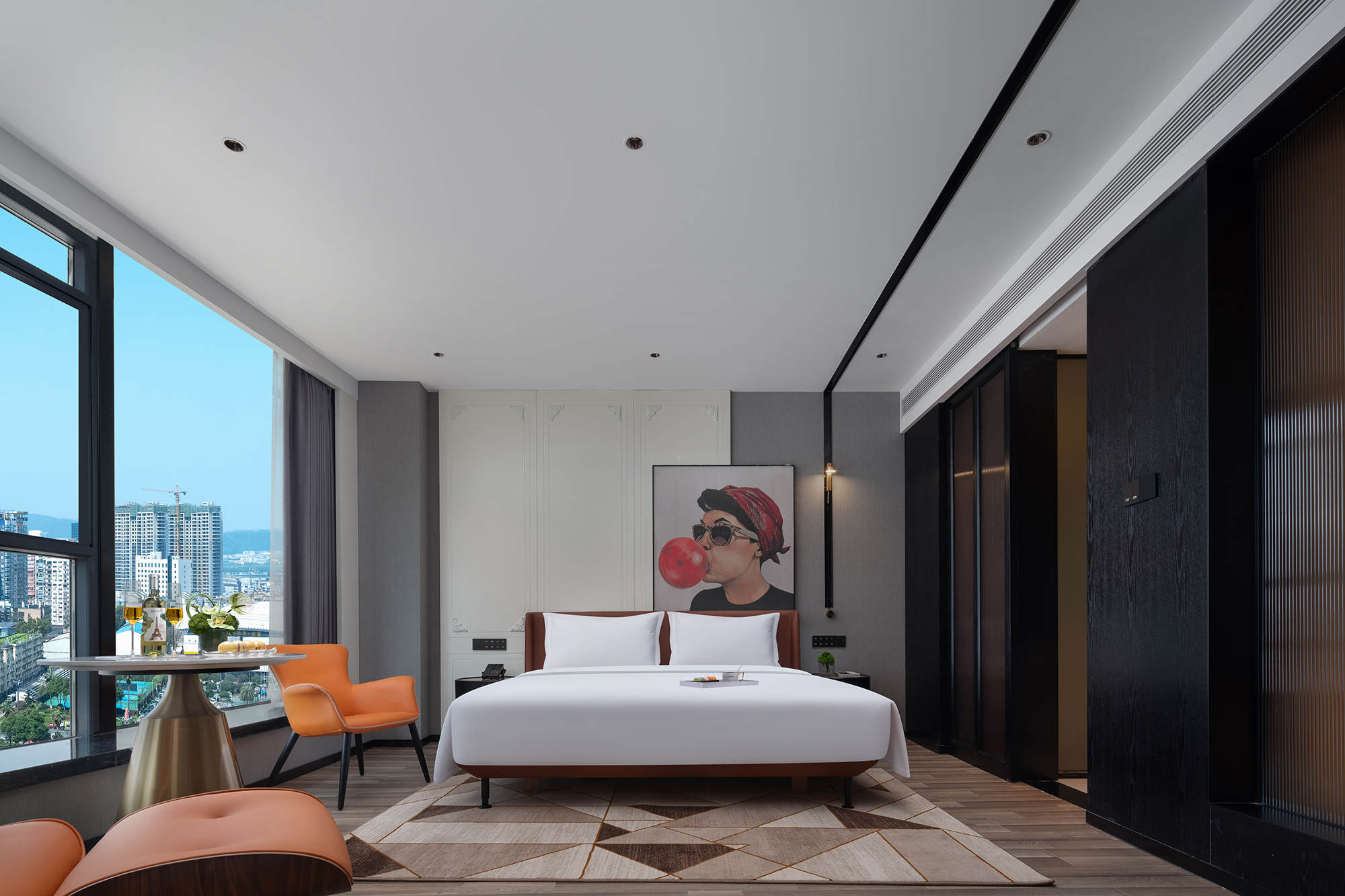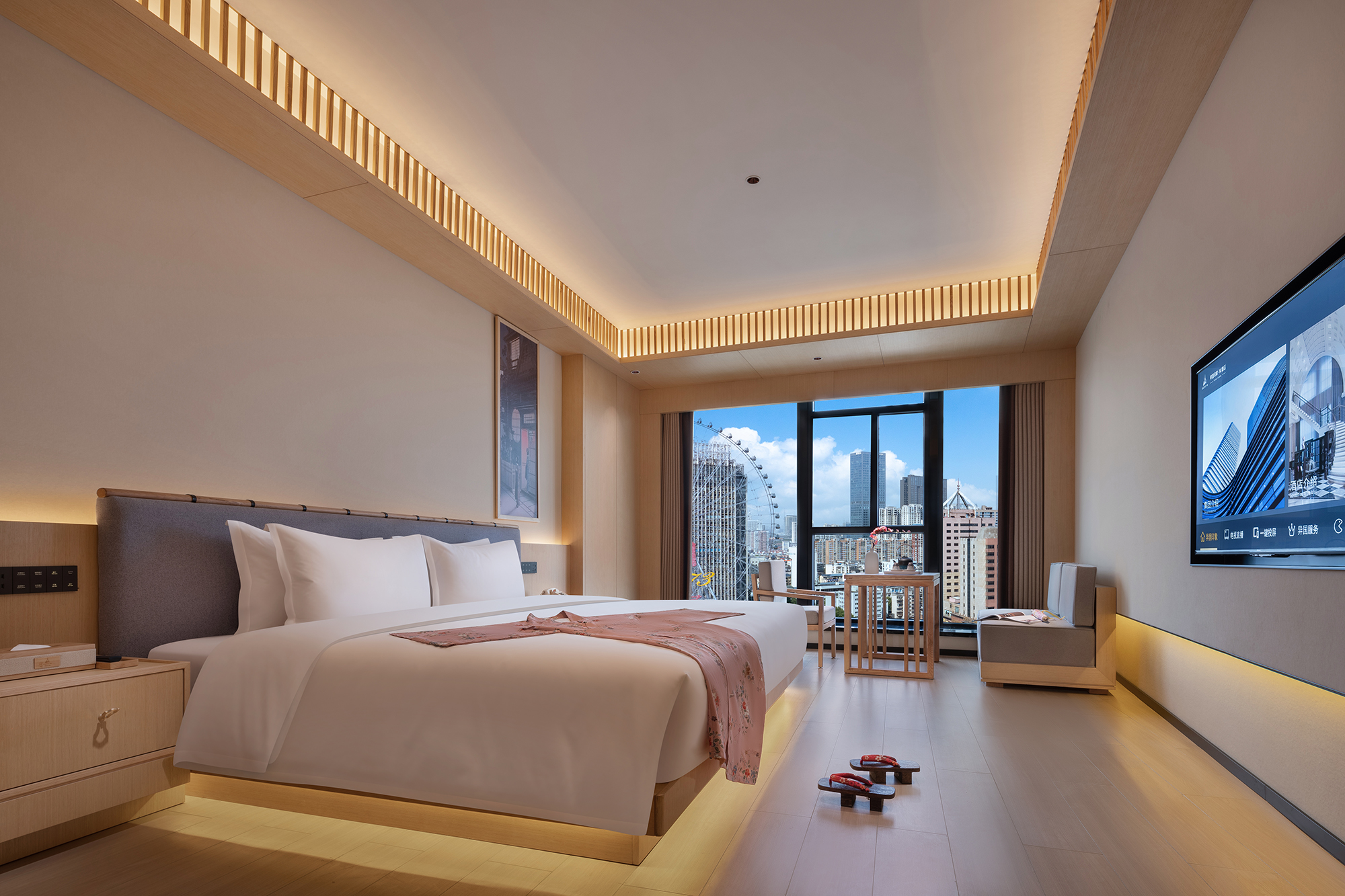 Japanese-Style Ferris Wheel View Double Bed Room