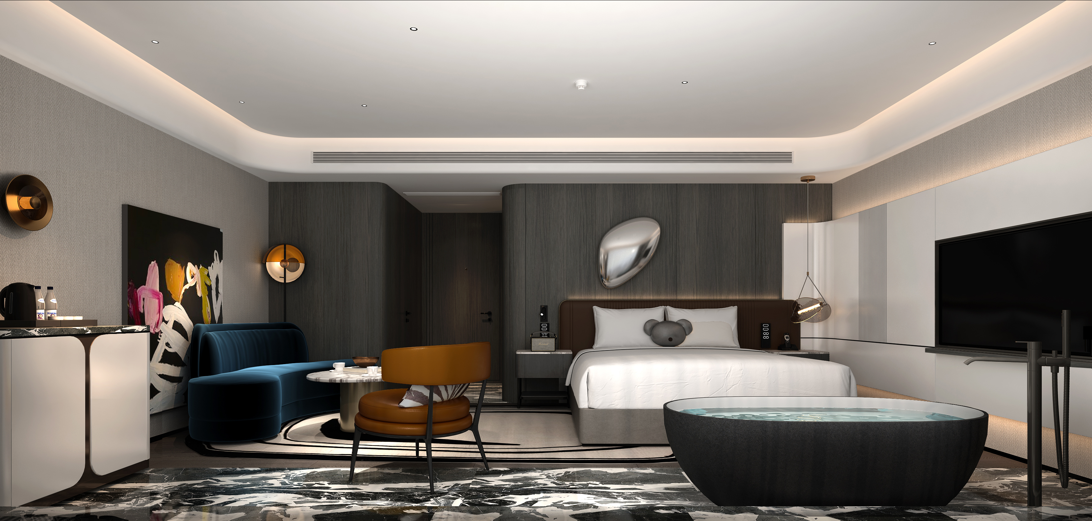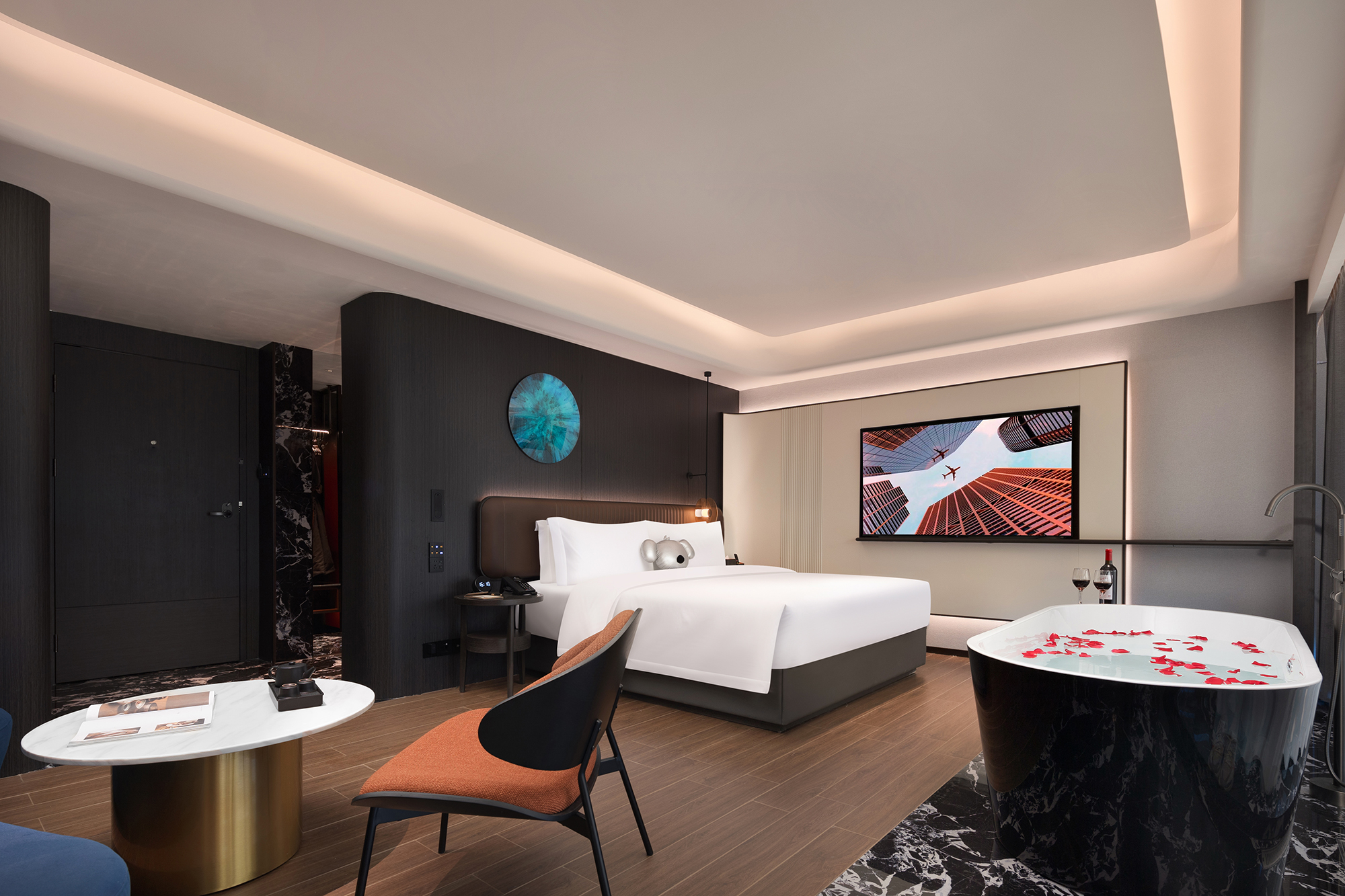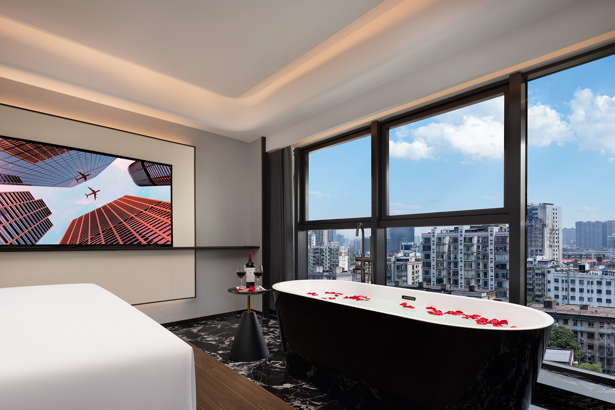 Cozy 180 ° Cloudscape Tub Double Bed Room