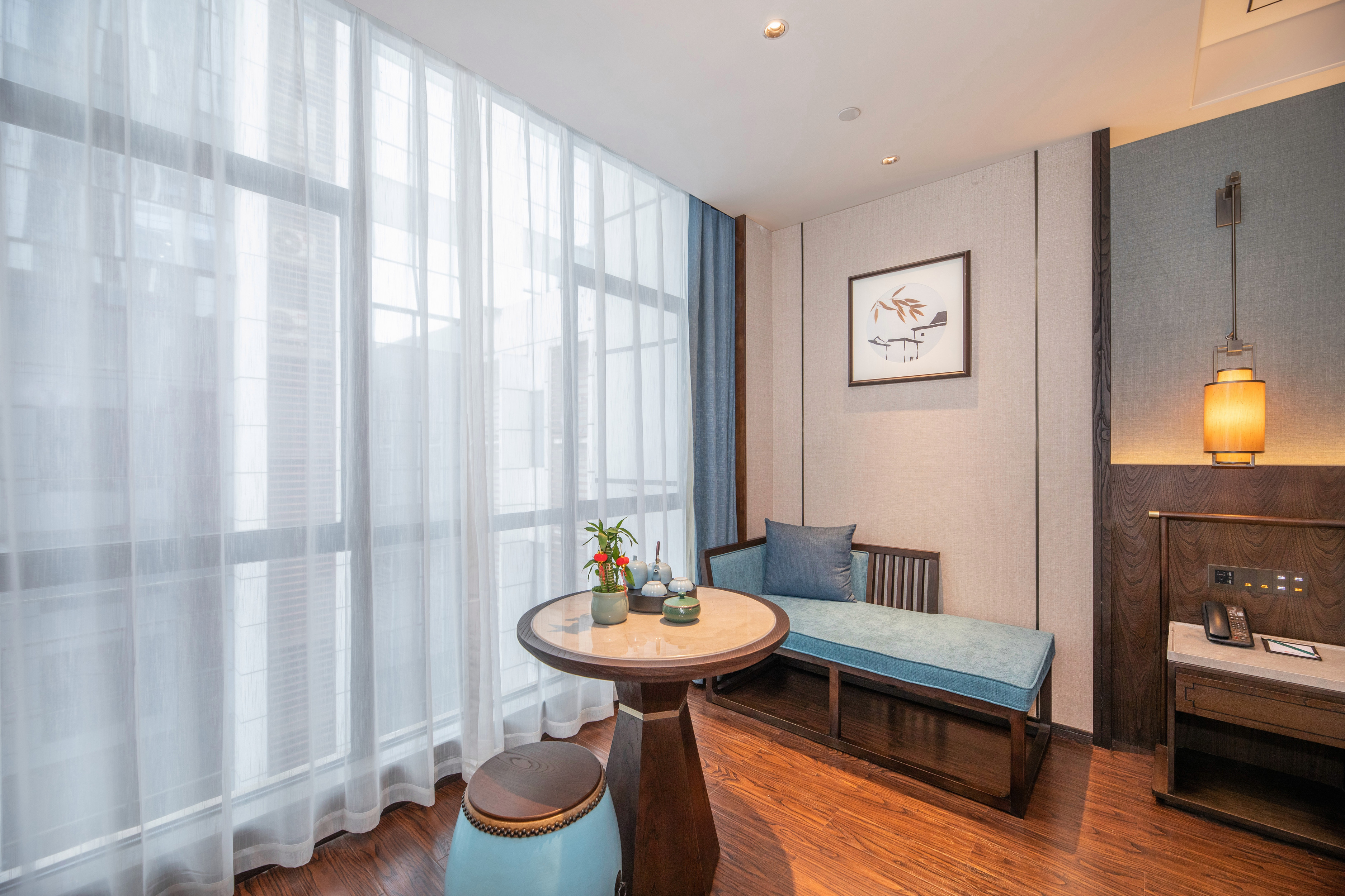 Elegant Delight Double Bed Room (Traditional Tea Platform + High-Speed Internet + Automatic Curtains)