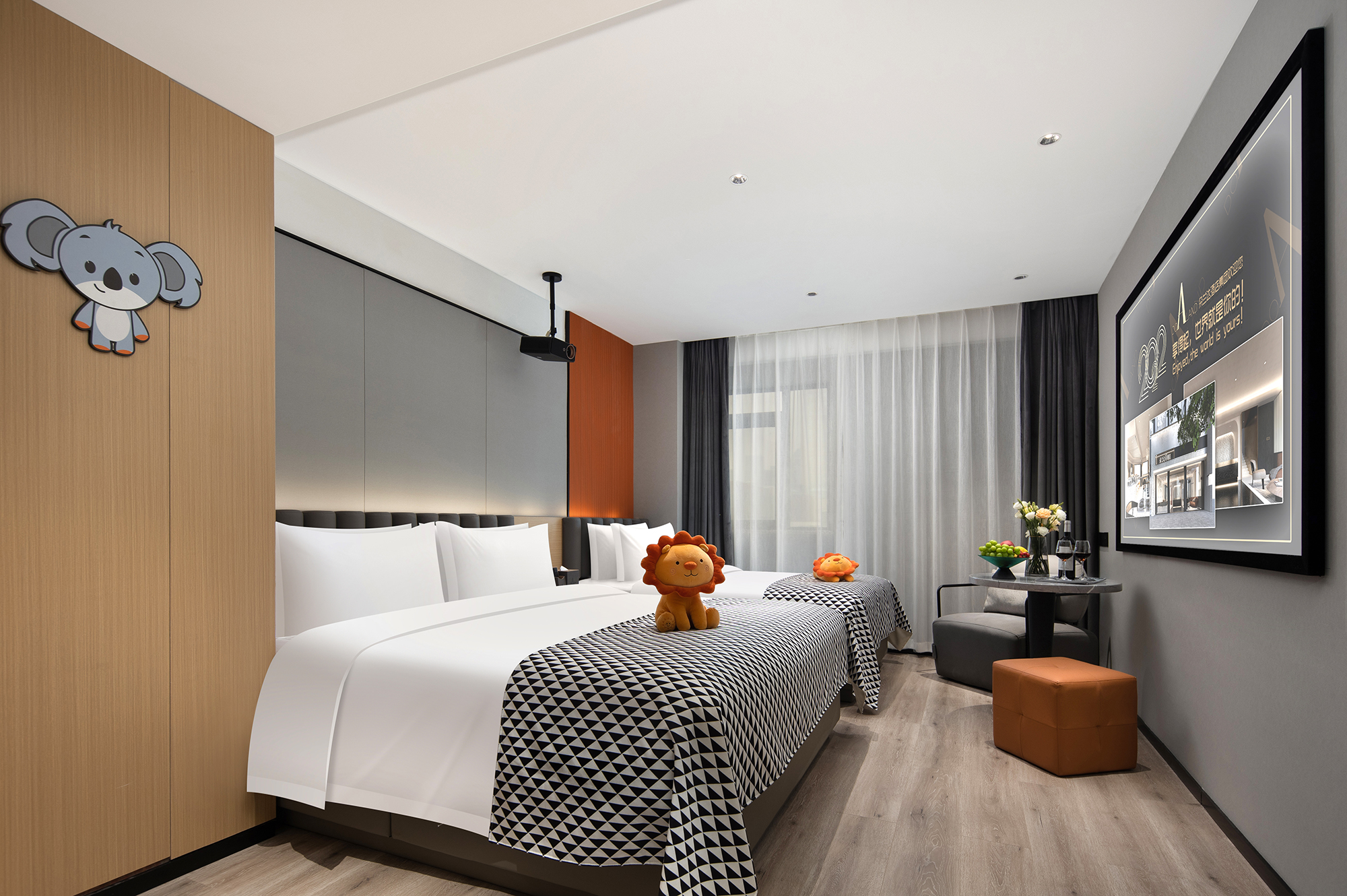 A Yuan Universe Street-View Smart Control Double Bed Room
