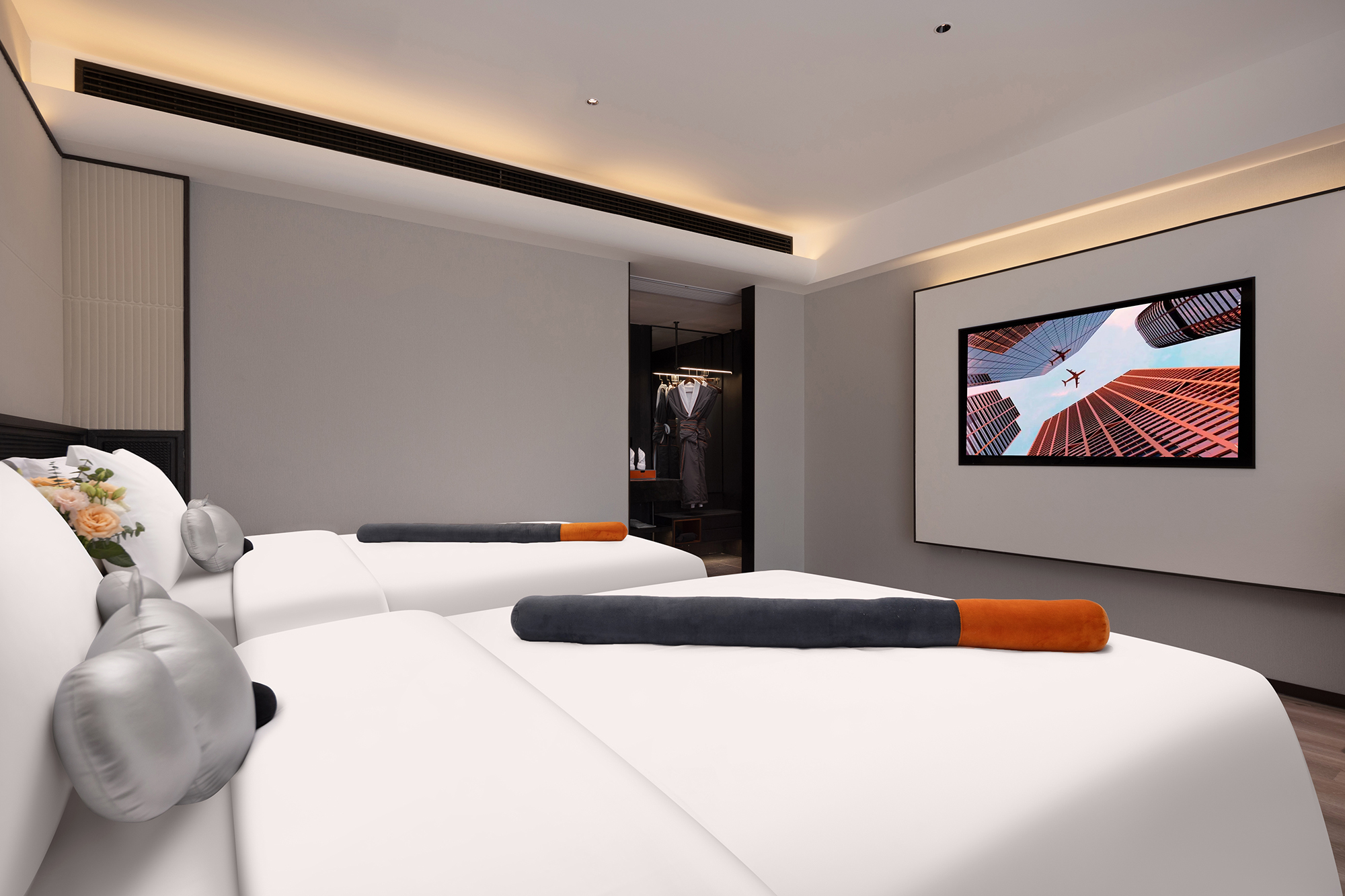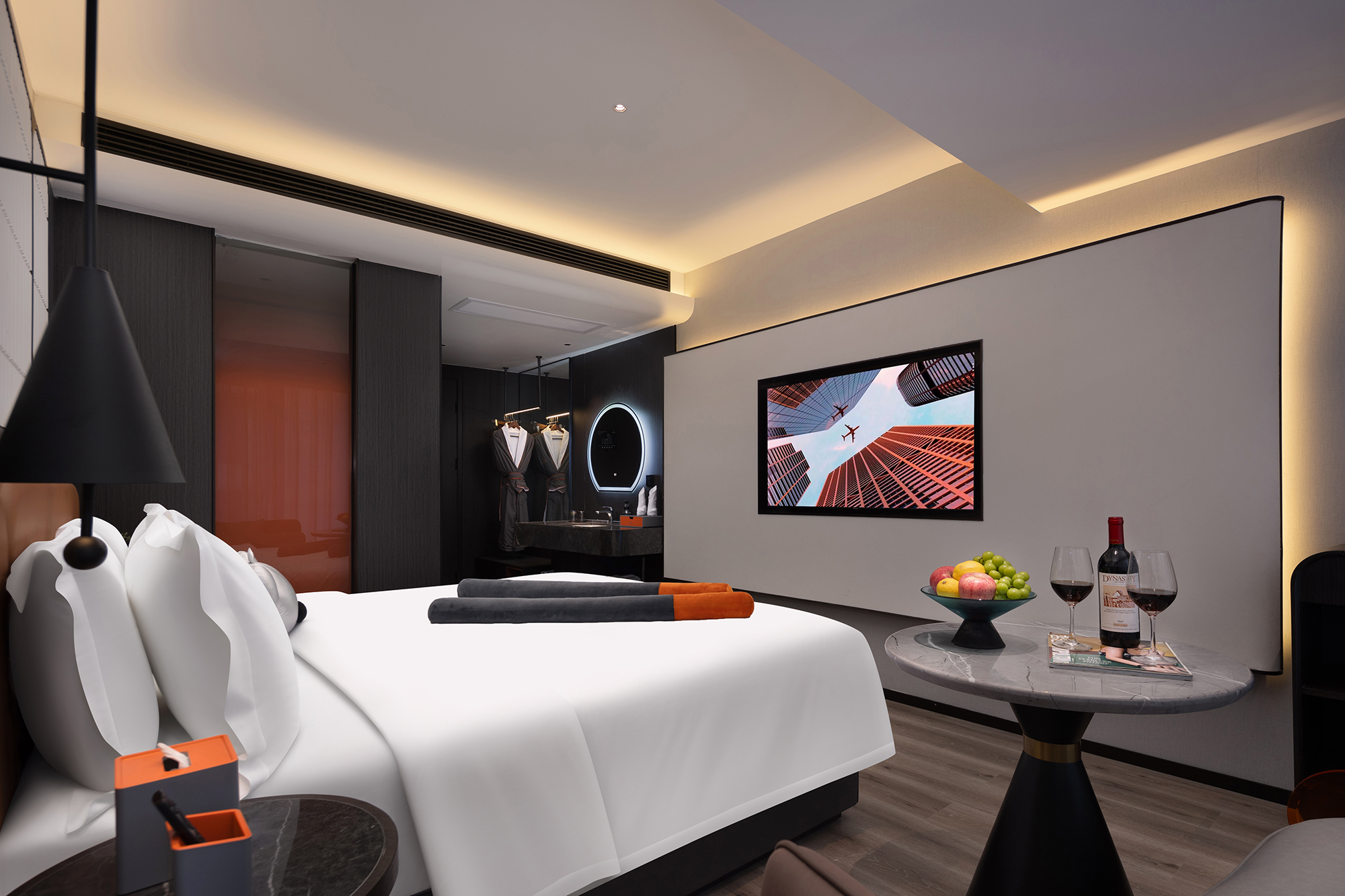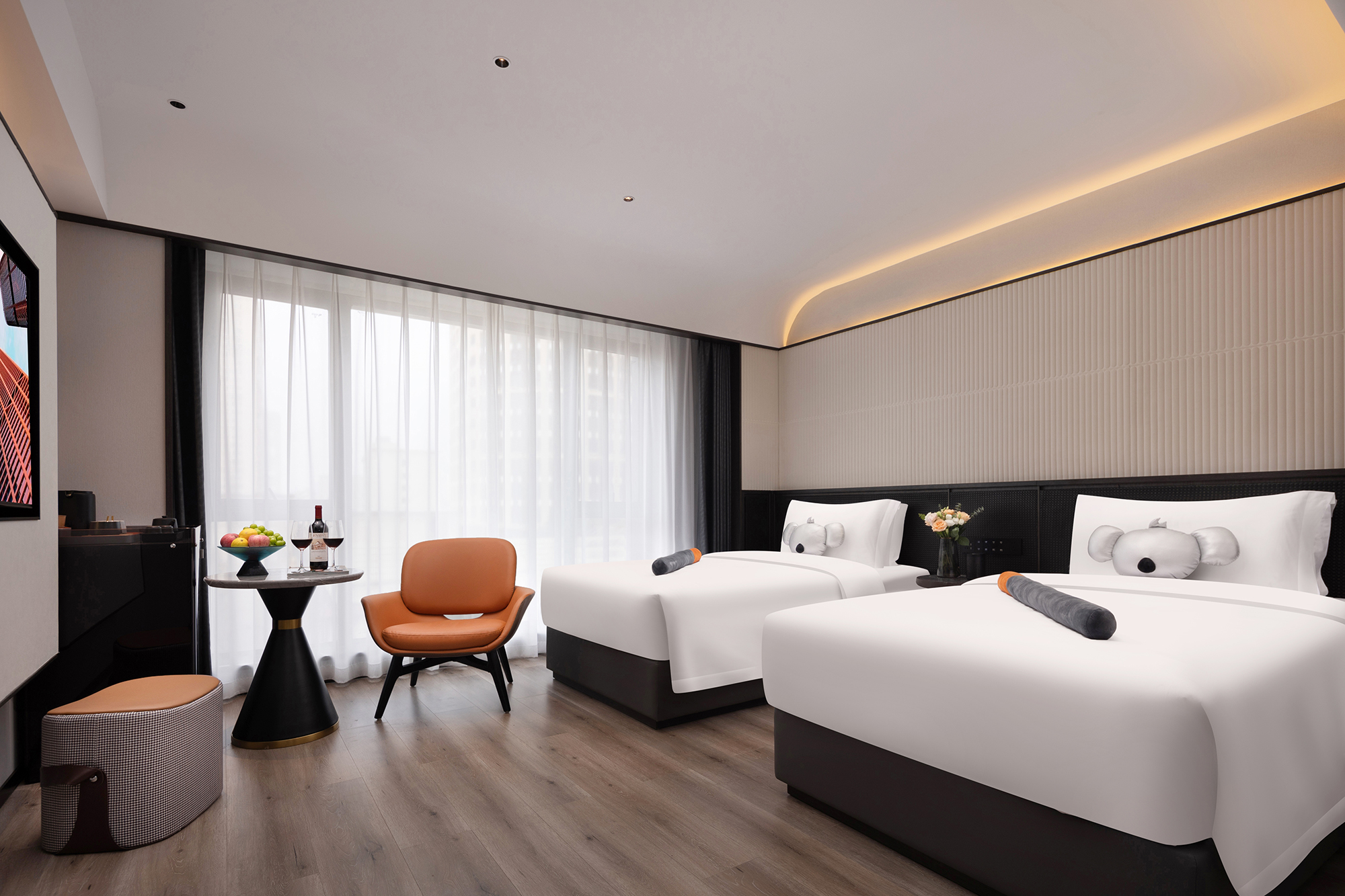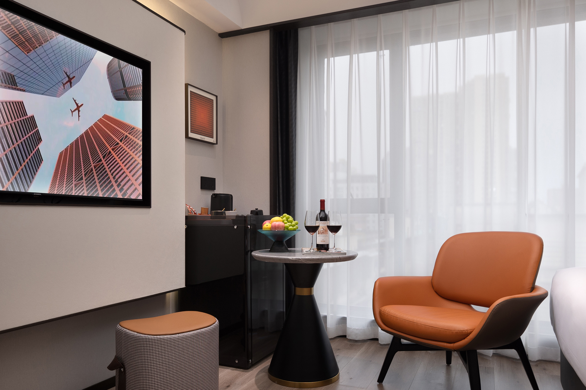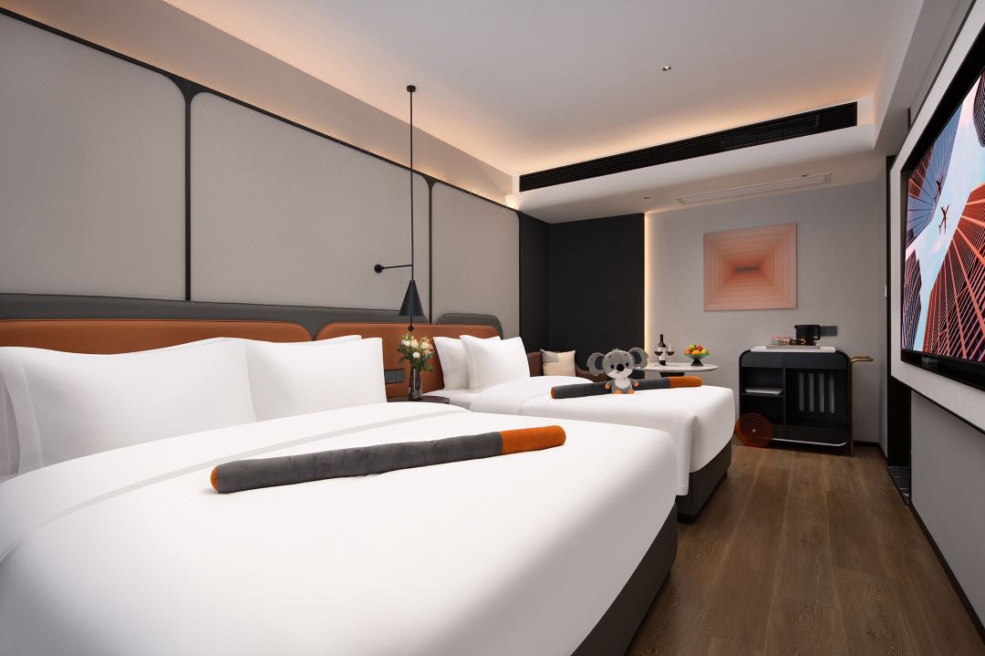 Trend Leisure Enjoyment Street-View Double Bed Room (Full House Smart Home System + Mini Fridge + Floor-to-Ceiling Window + Tencent Membership)