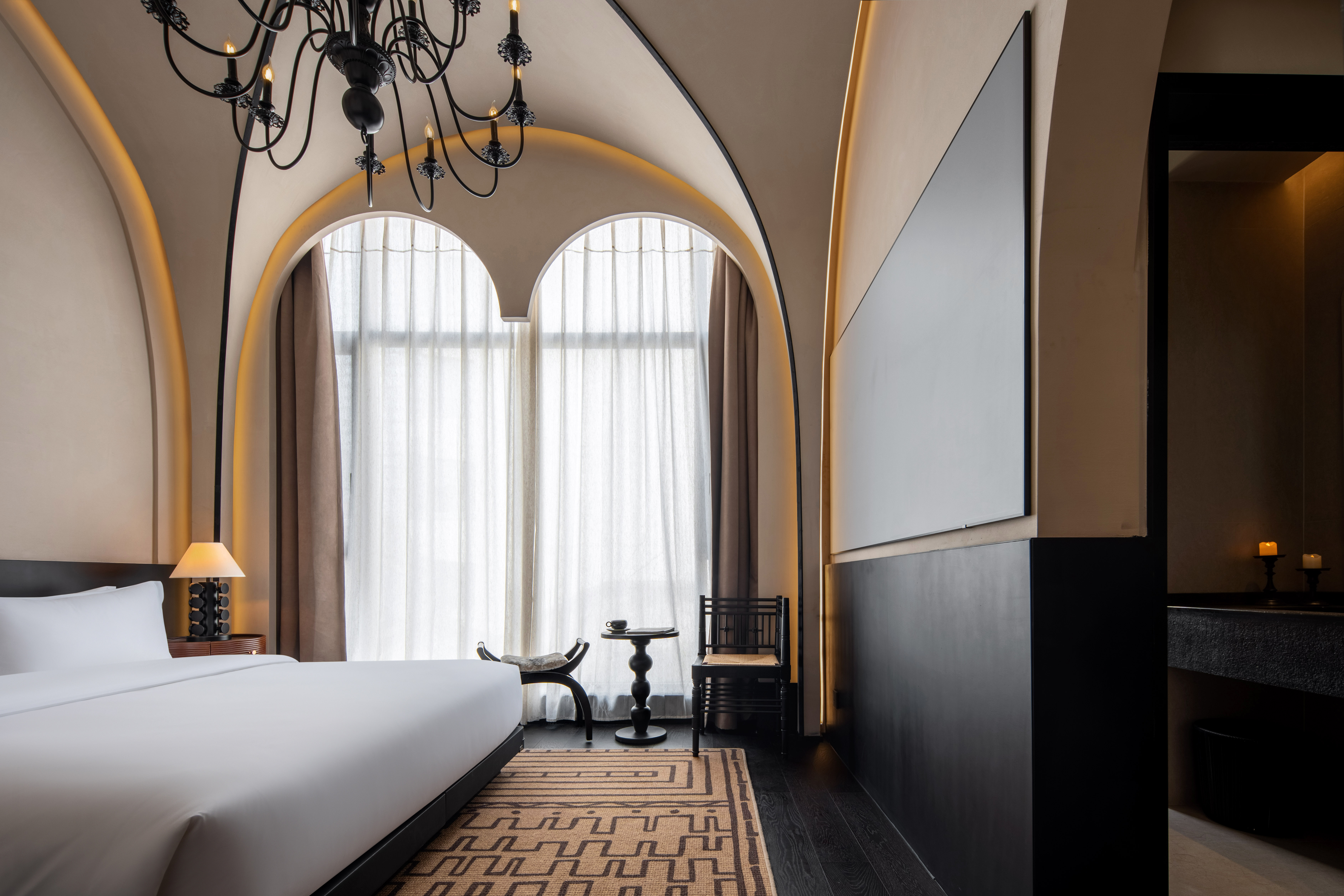 甲影·全景法式大床房【落地窗+深睡床垫+巨幕观影】