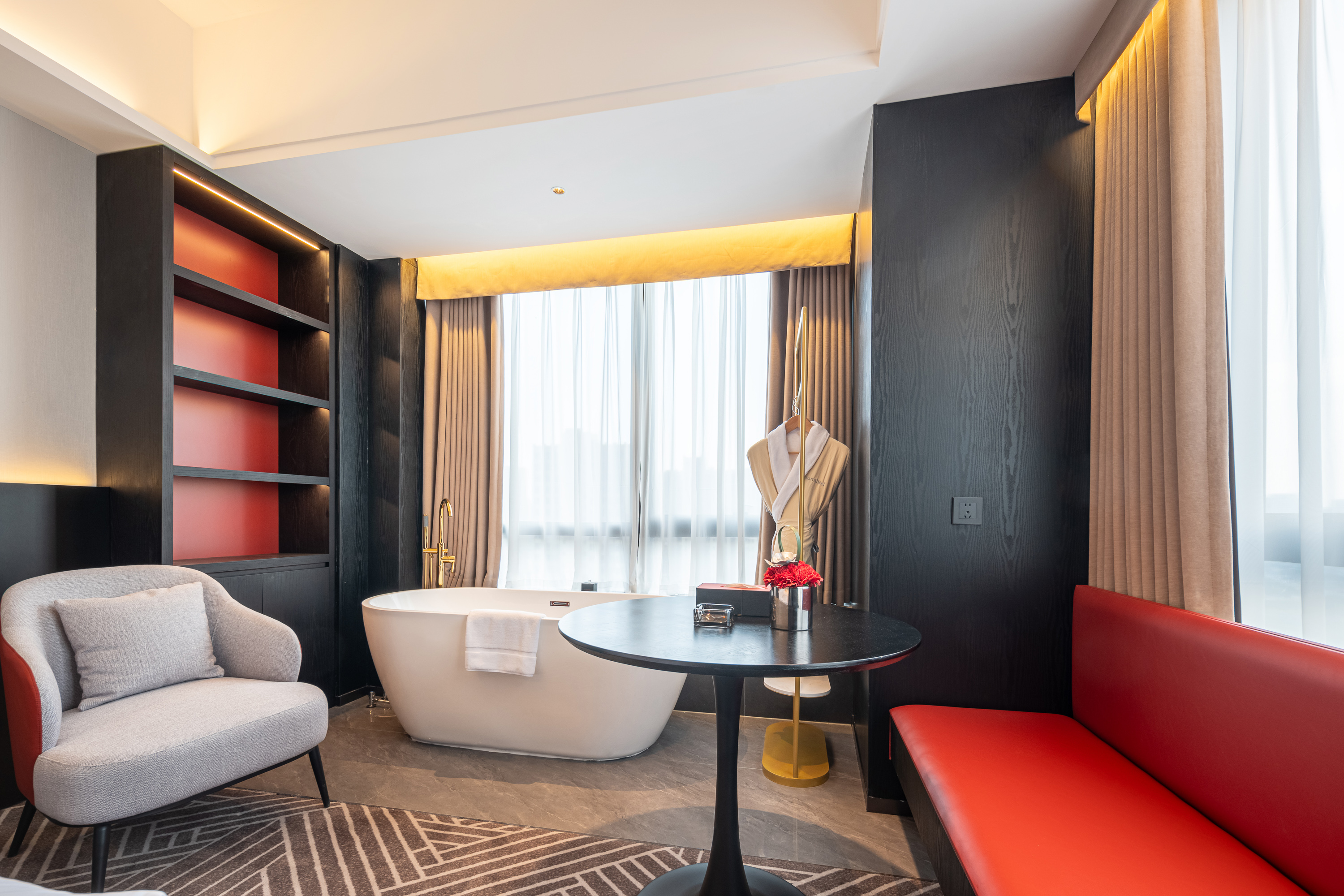 行政大床房270度高空城景+深泡浴缸+零压床垫+化粧区