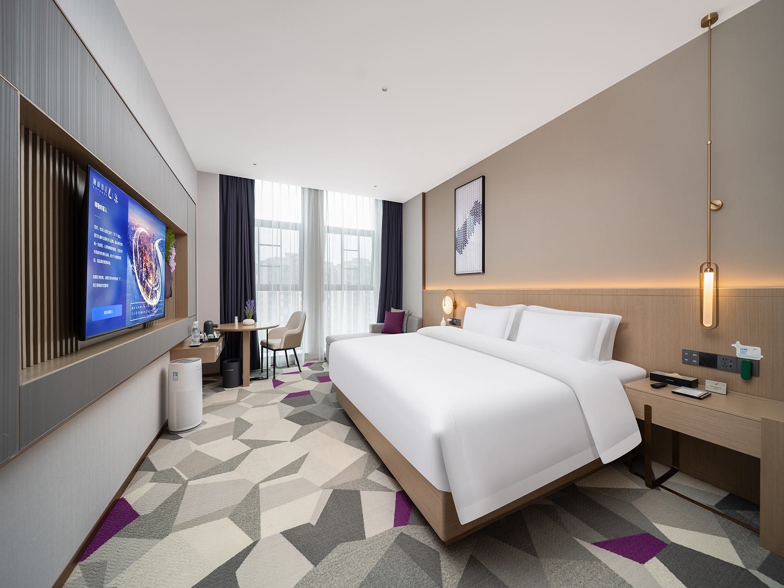纯净自然大床房(全景落地窗+负离子净化+手机投屏)