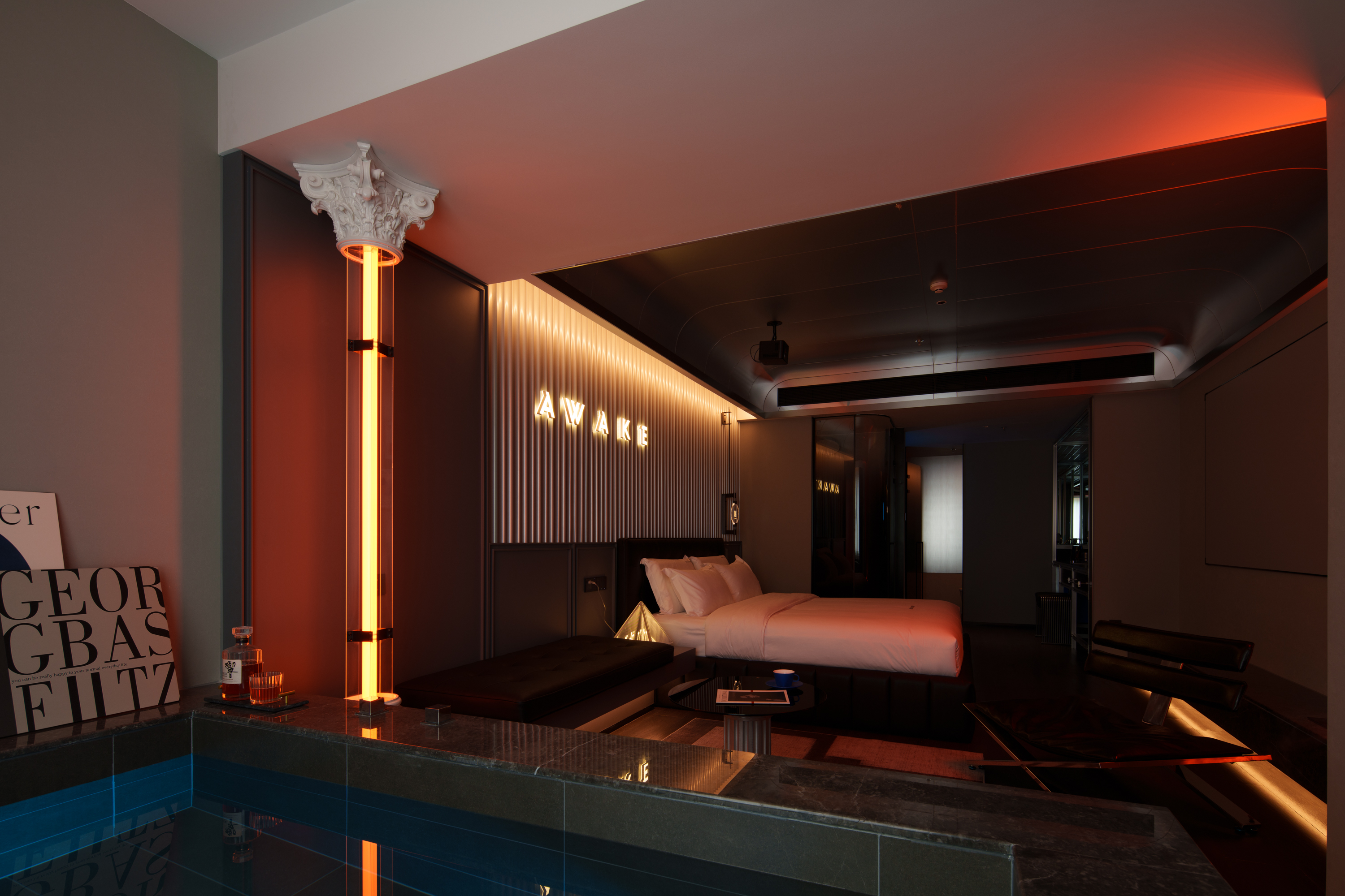 阿瑞斯·巨幕泡池套房丨私人汤池丨高奢洗护丨氛围壁炉