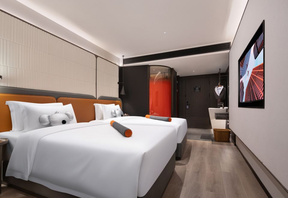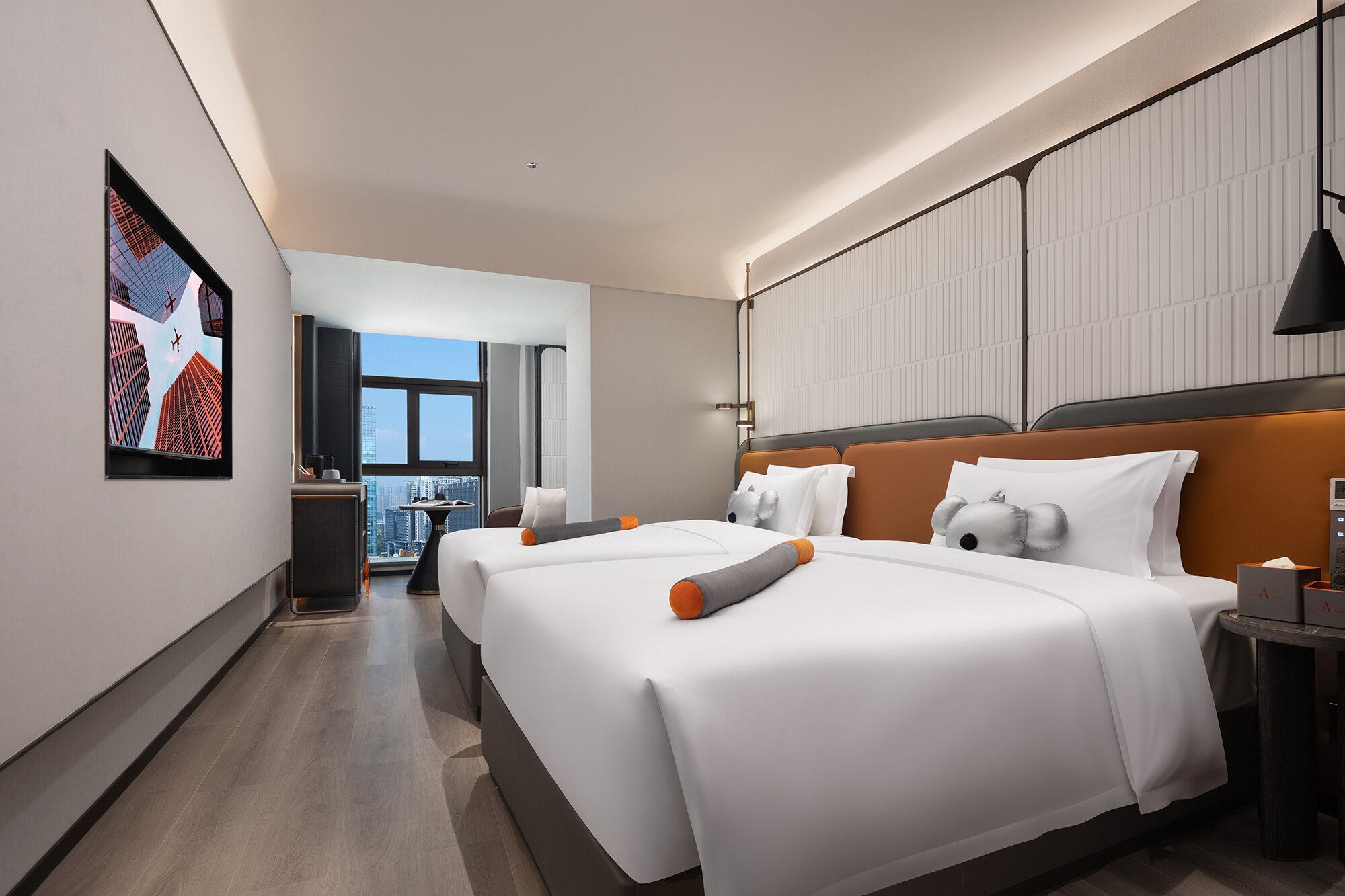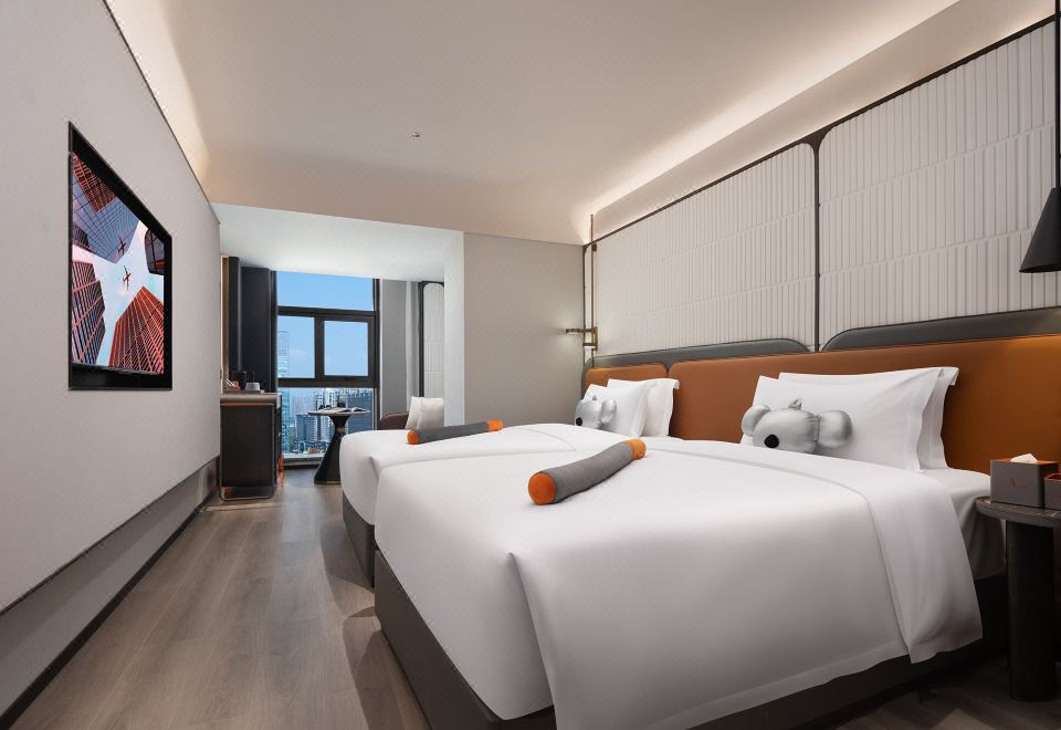 朵拉城景雙床房【高空城景+智能客控+小冰箱】