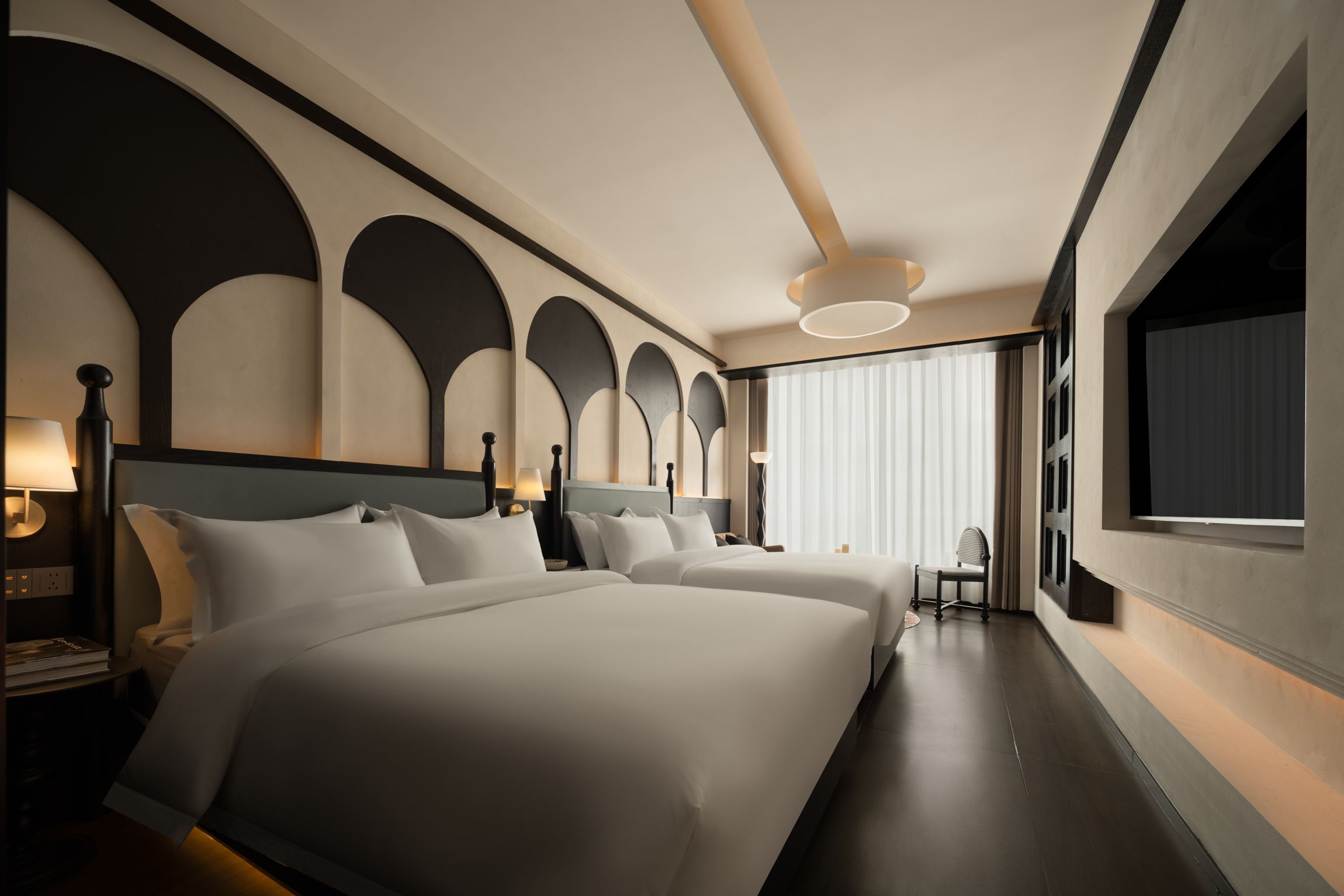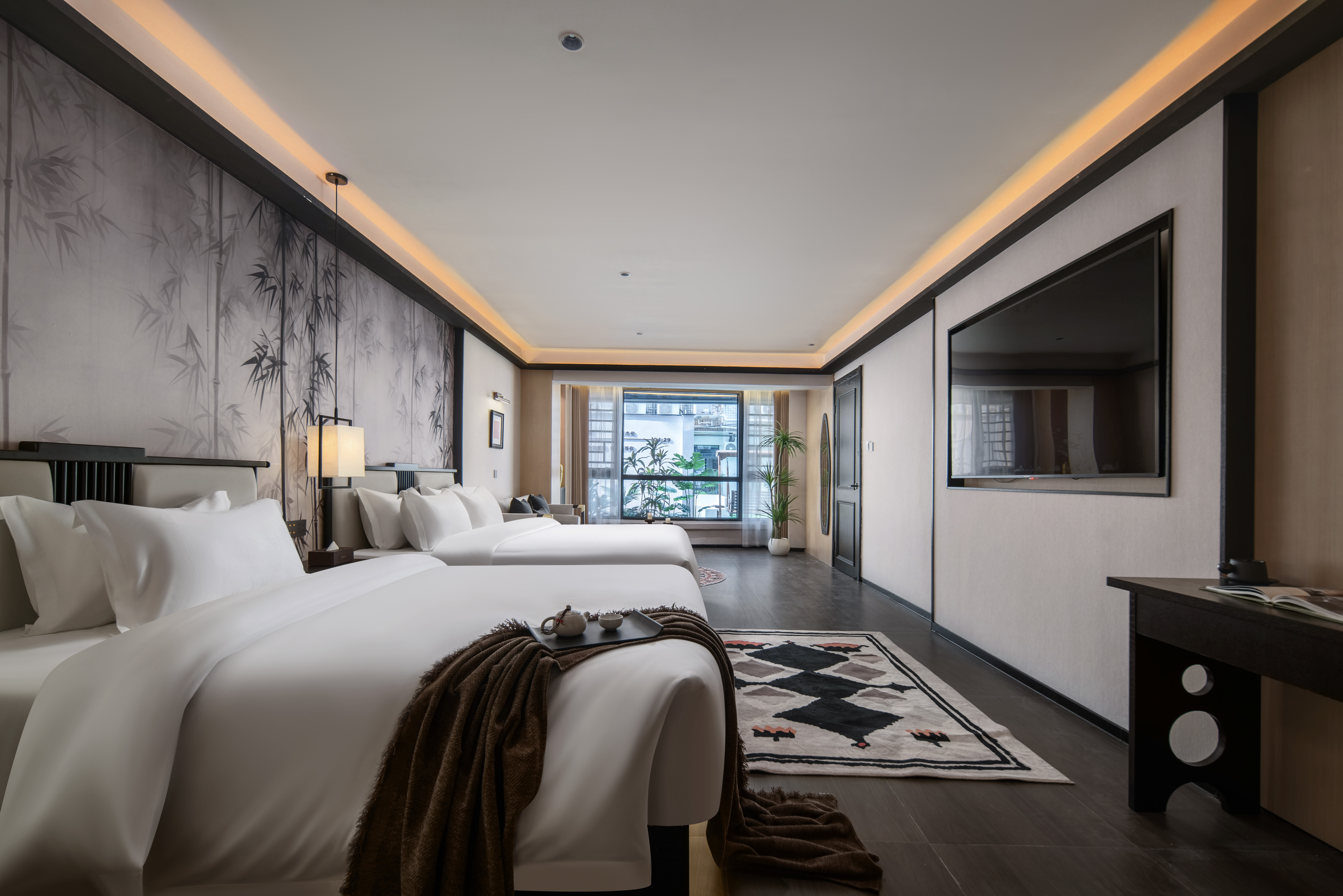 隐.沐辰.宋雅双床四人房【电动窗帘+徕芬吹风机】