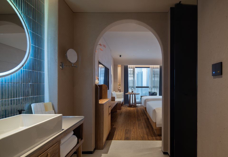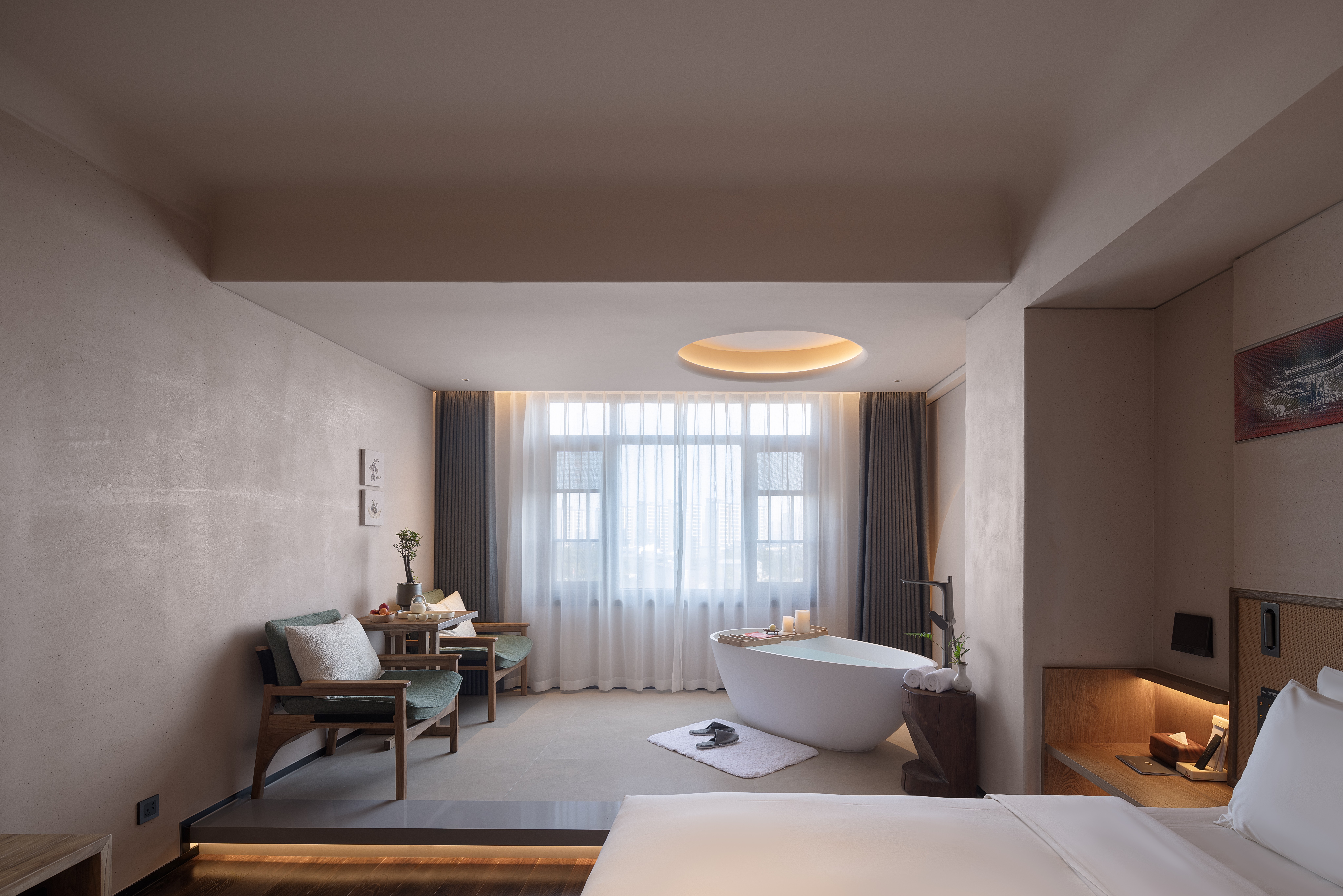 品臻·豪華大床房 丨縵享茶居丨寬廳茗談丨柔絨浴袍