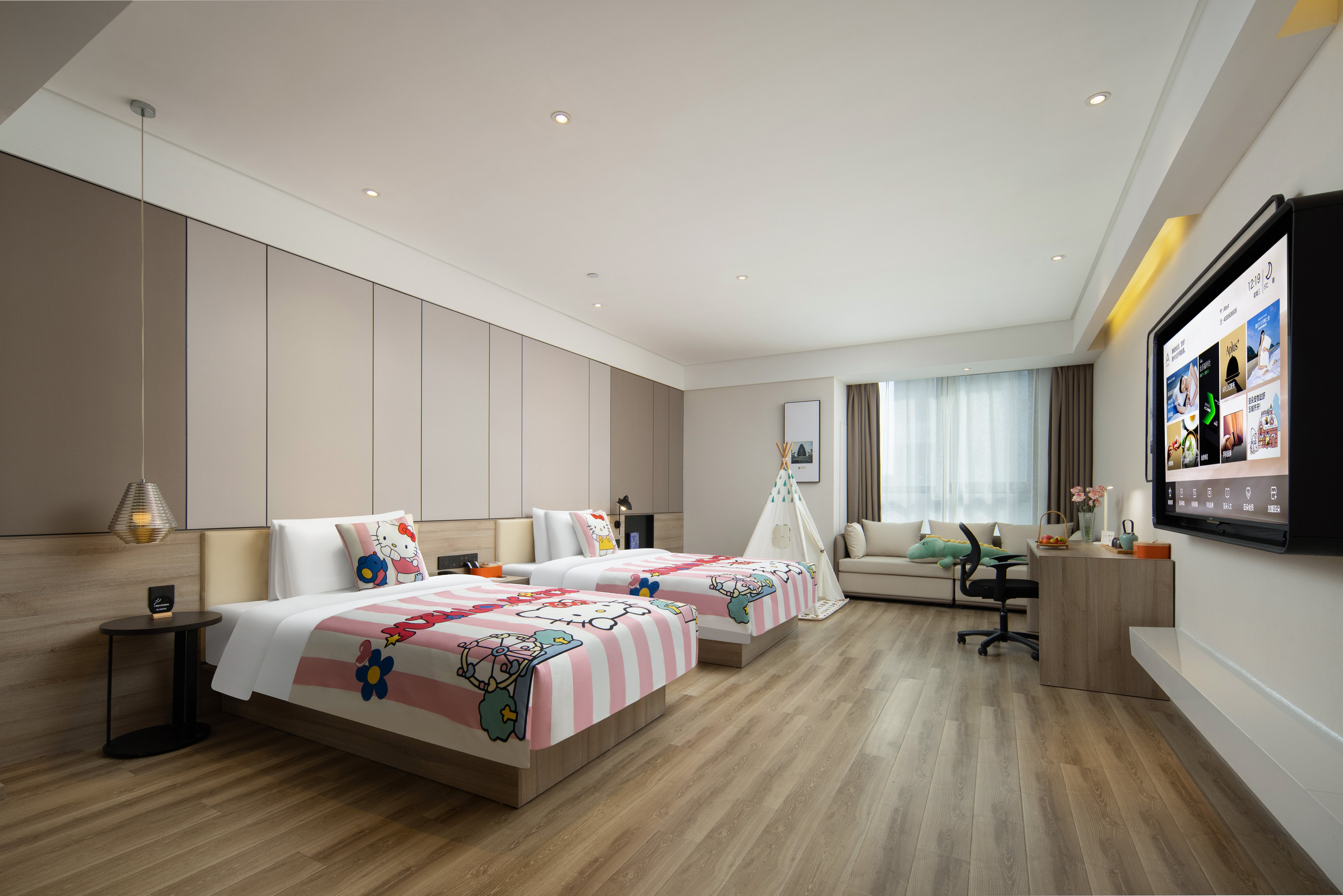 几木亲子双床房(亲子主题+65寸电视+投屏+冰箱茶饮+浴袍)
