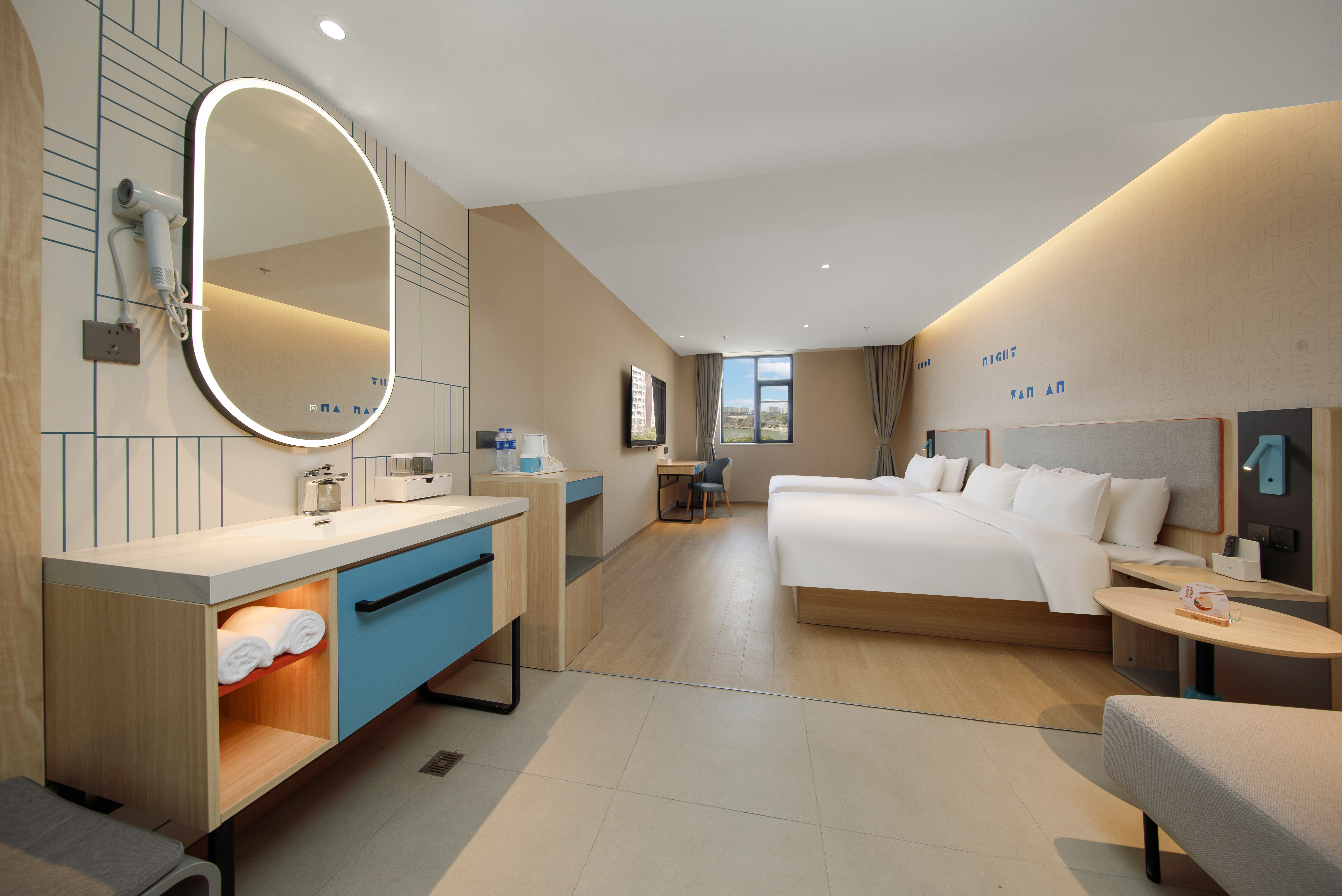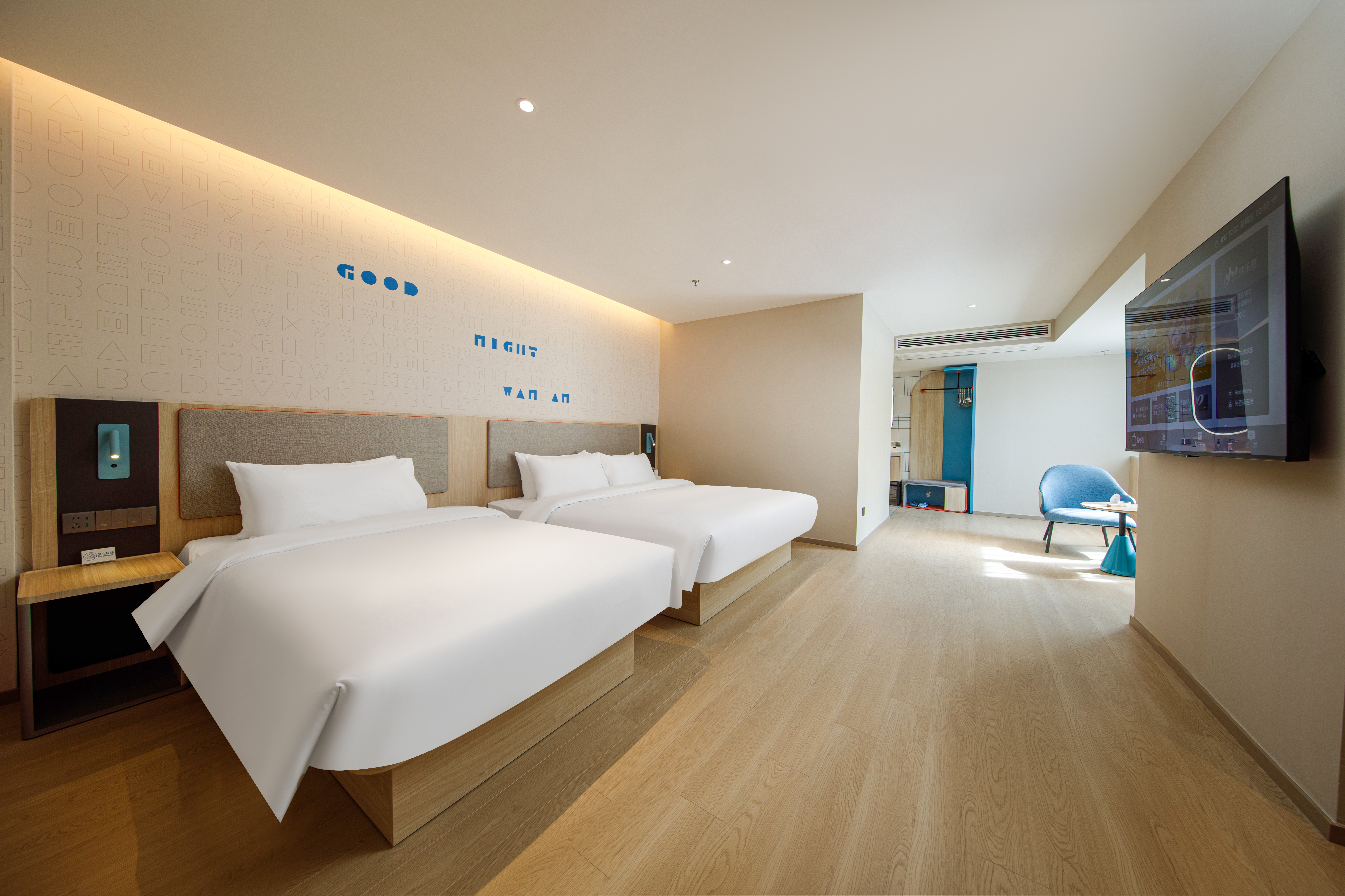 雙床房【0壓床墊+ 65寸可投屏液晶電視+大空間】