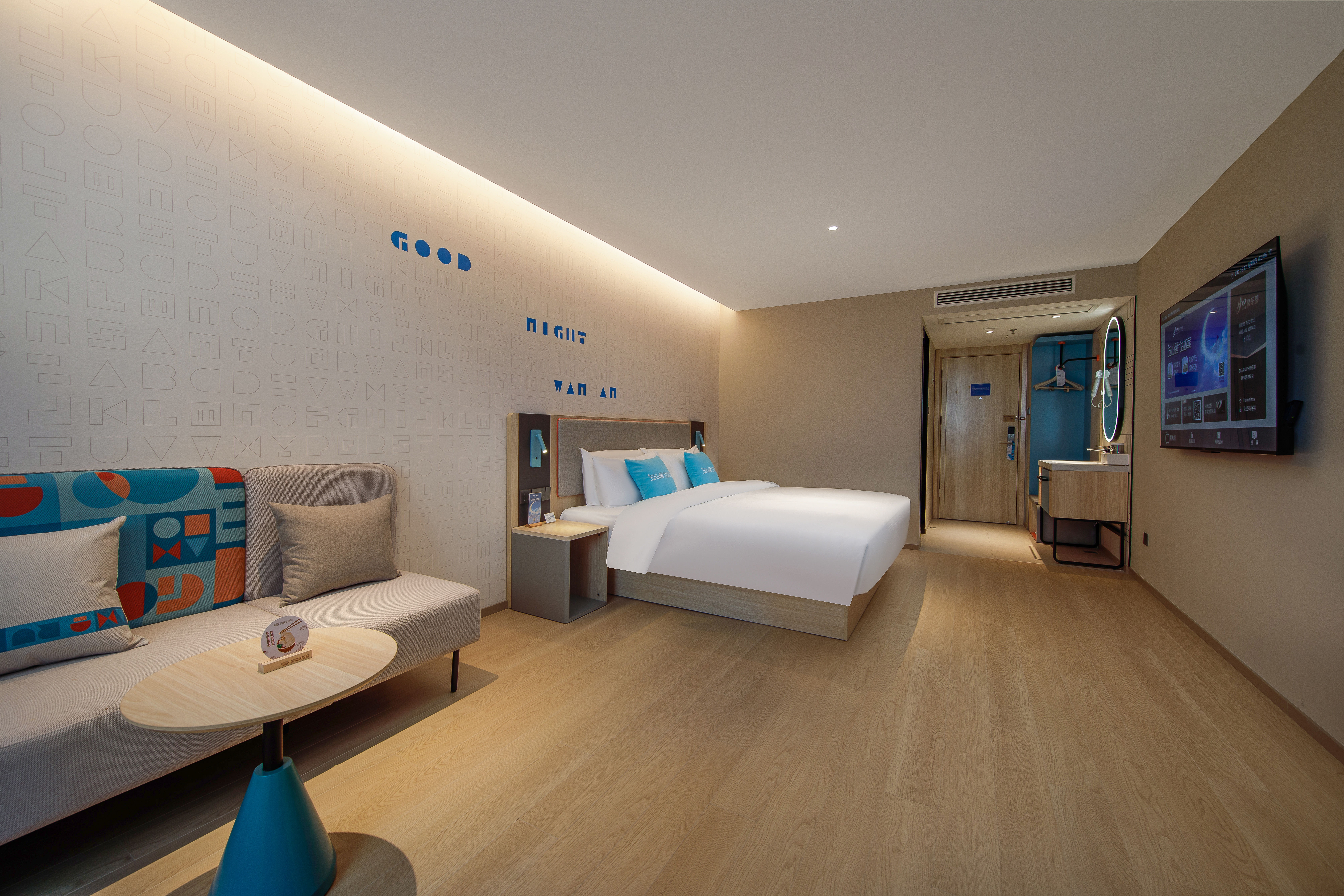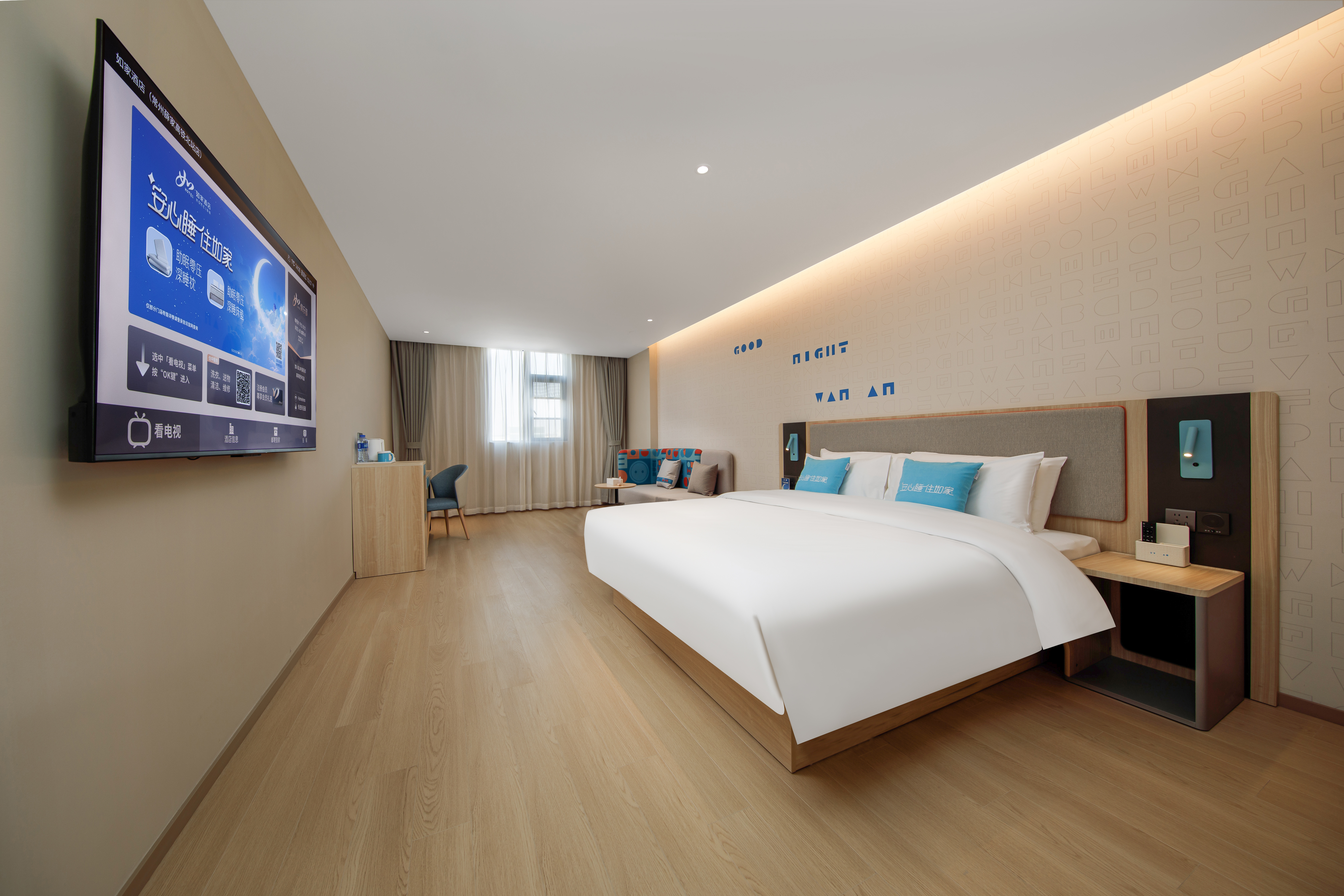 安心睡大床房【石墨烯0壓床墊+0壓枕頭+65寸電視】