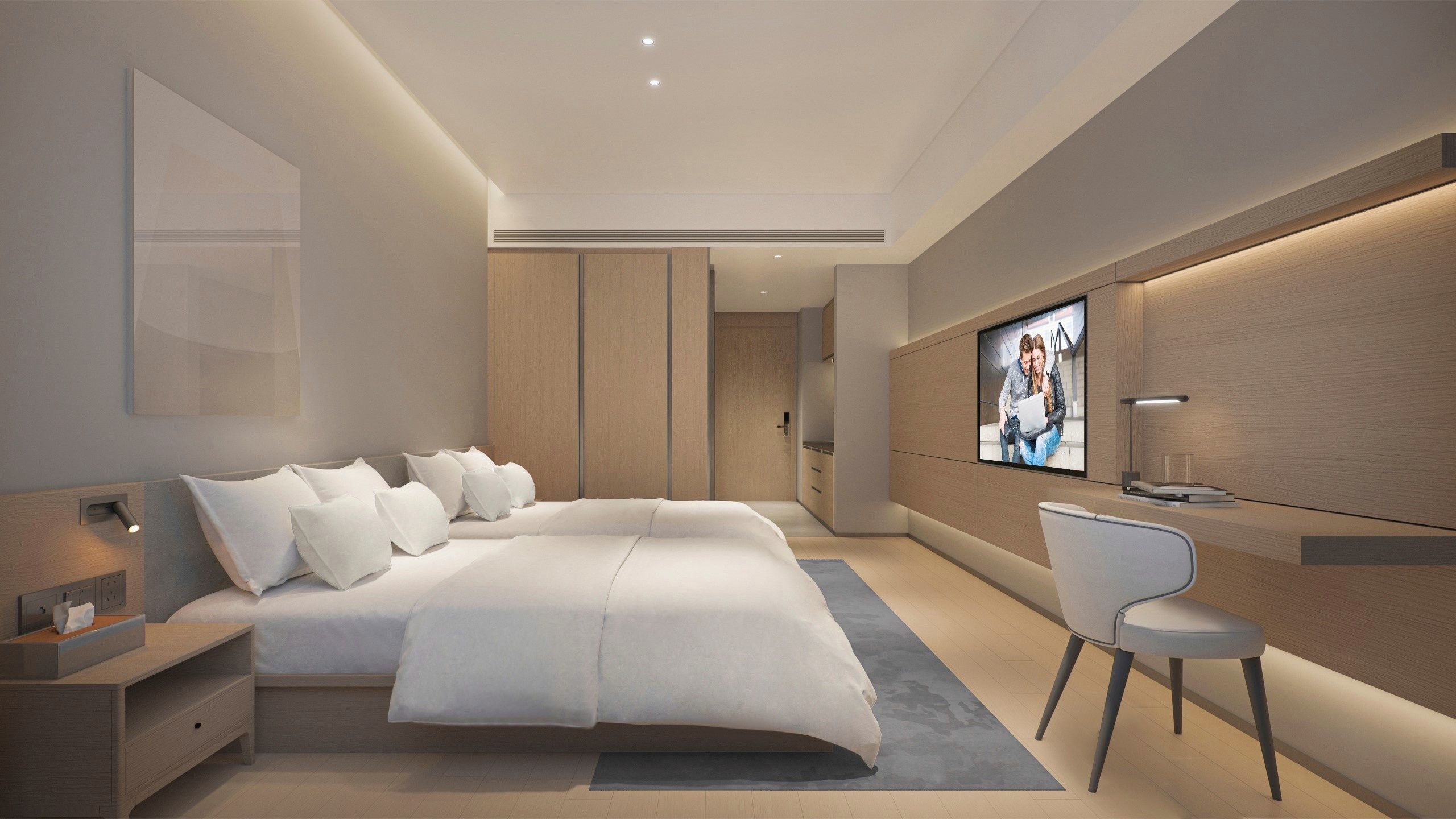一房豪华客房(双床)厨房设备+冰箱+洗烘一体洗衣机