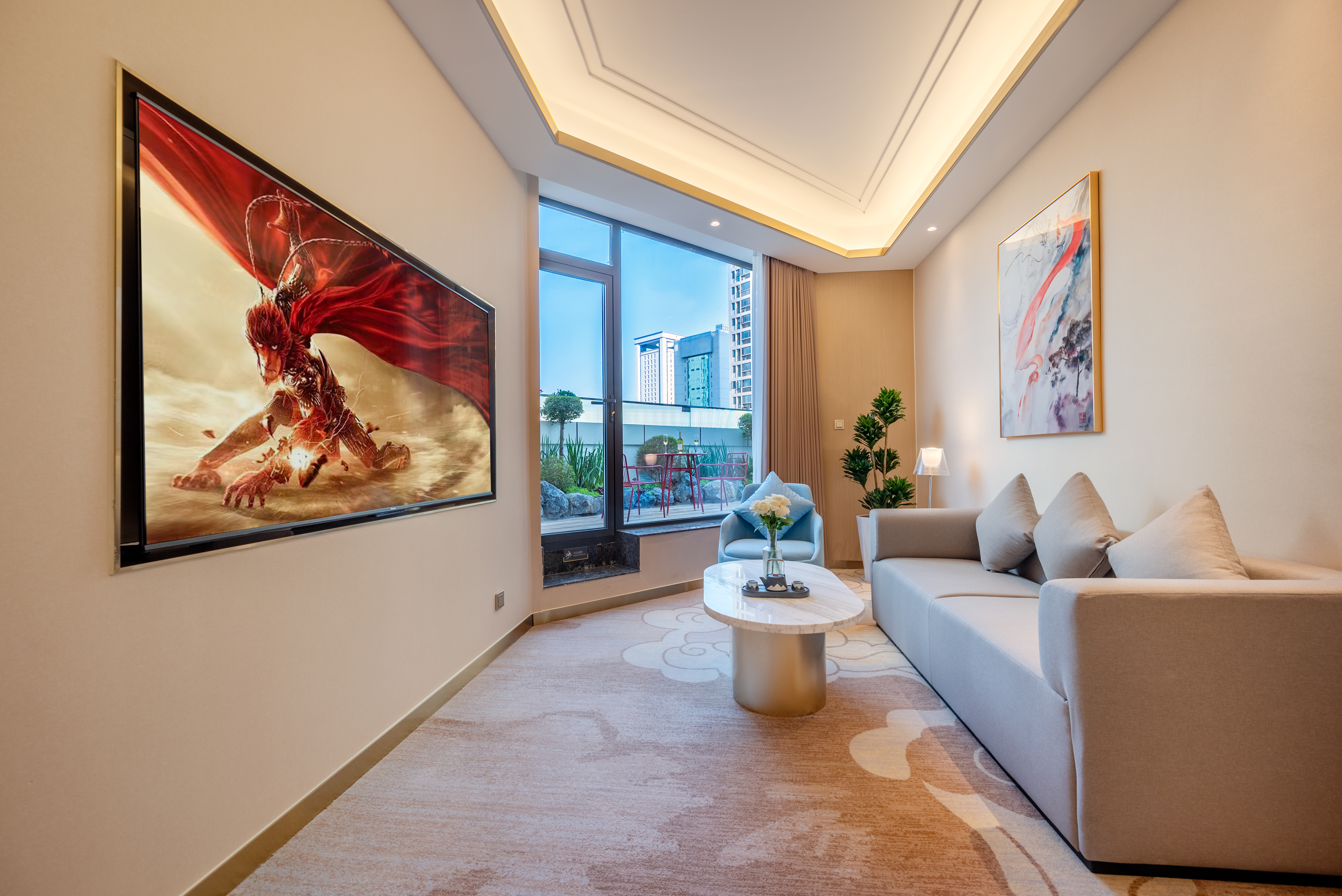 斗战胜佛亲子套房(自带庭院+抑菌加湿器+徕芬吹风机+一室一厅+小冰箱)
