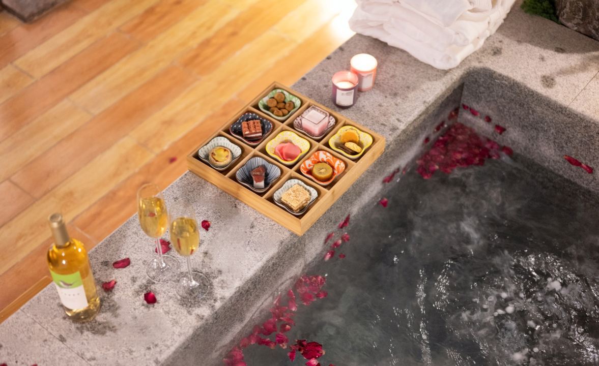 月洒星河私汤亲子房(室外汤池+抑菌加湿器+徕芬吹风机+75寸巨幕电视+小冰箱)