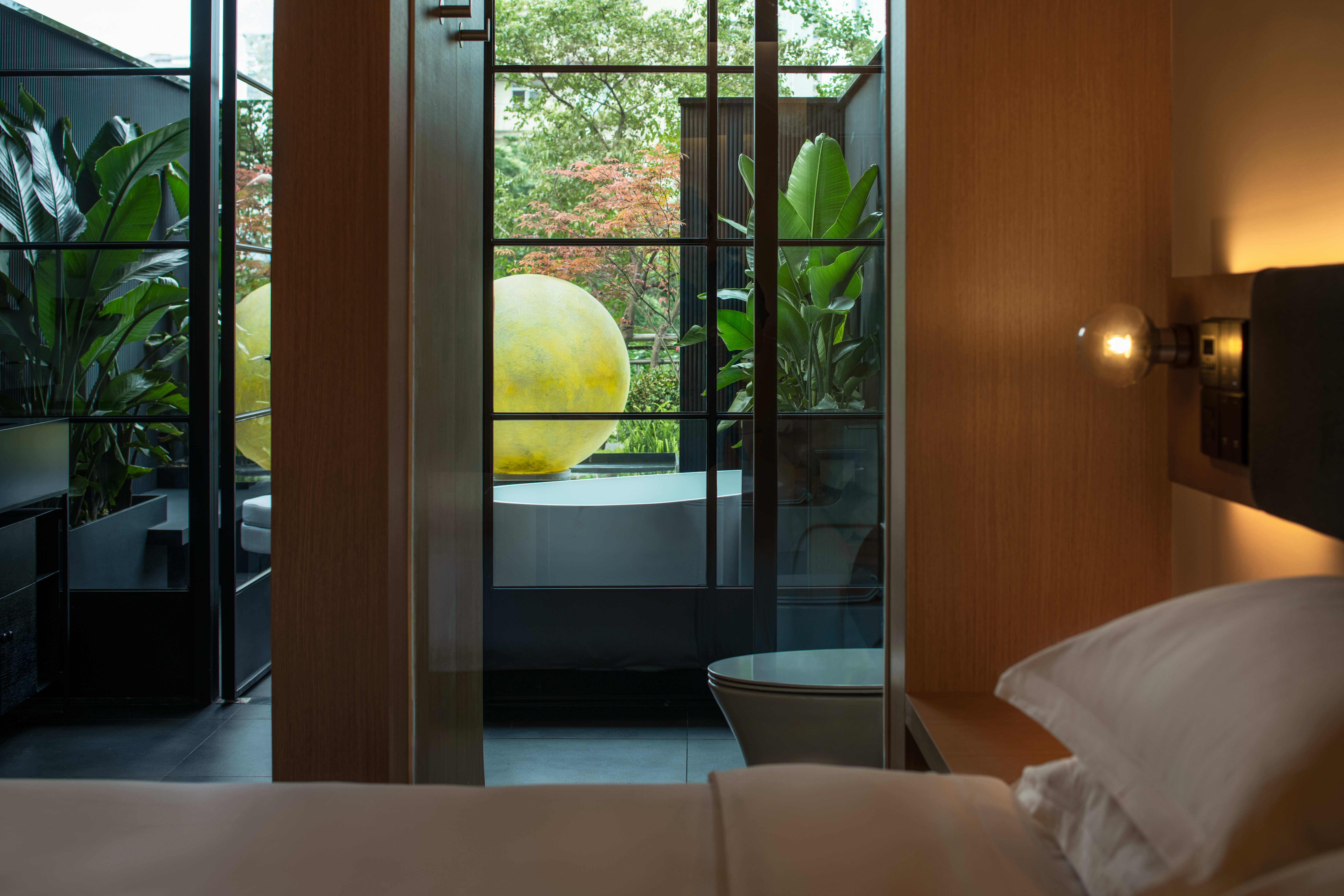 花园浴缸大床房(独立小花园+氛围月亮灯+观339电视塔夜景)