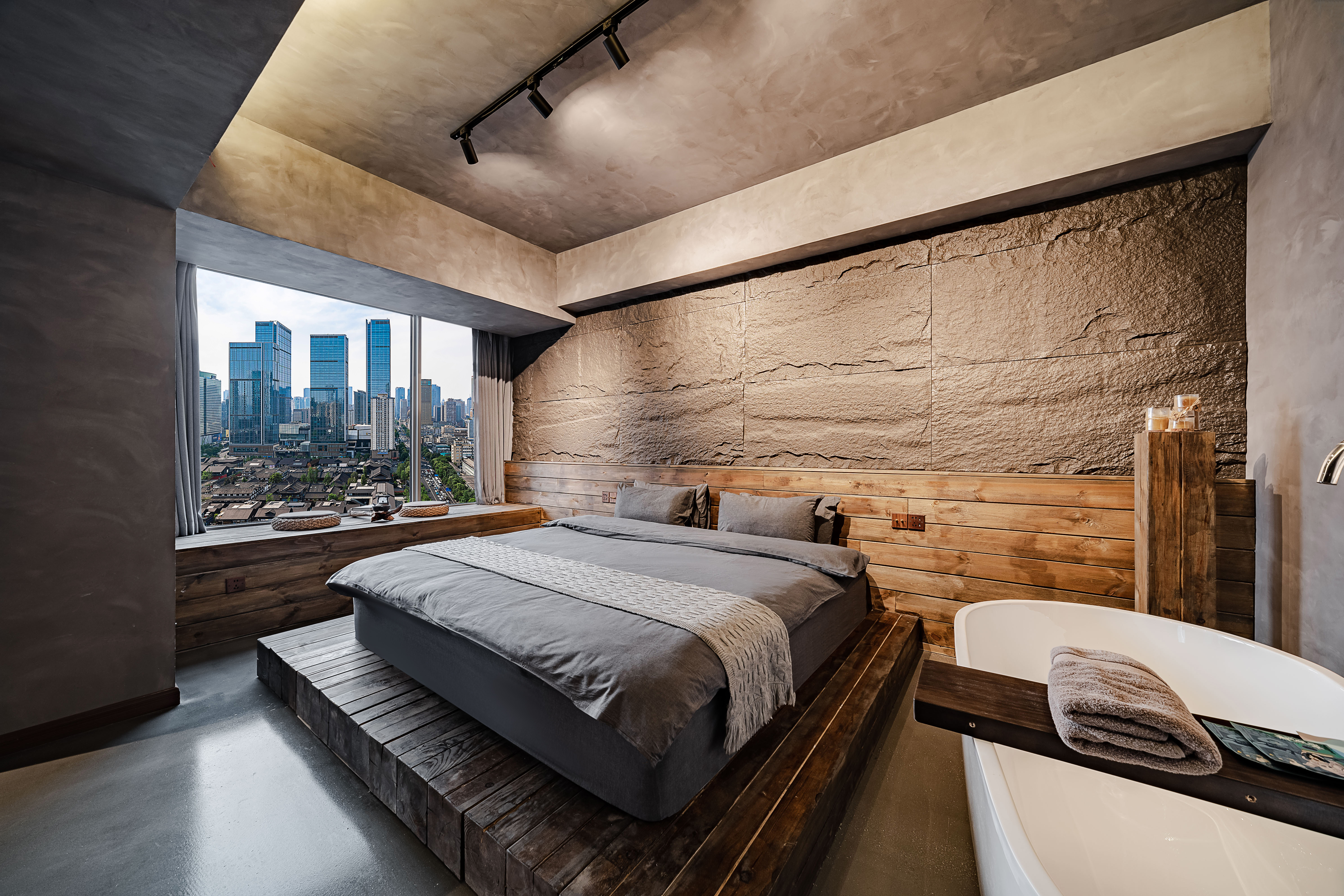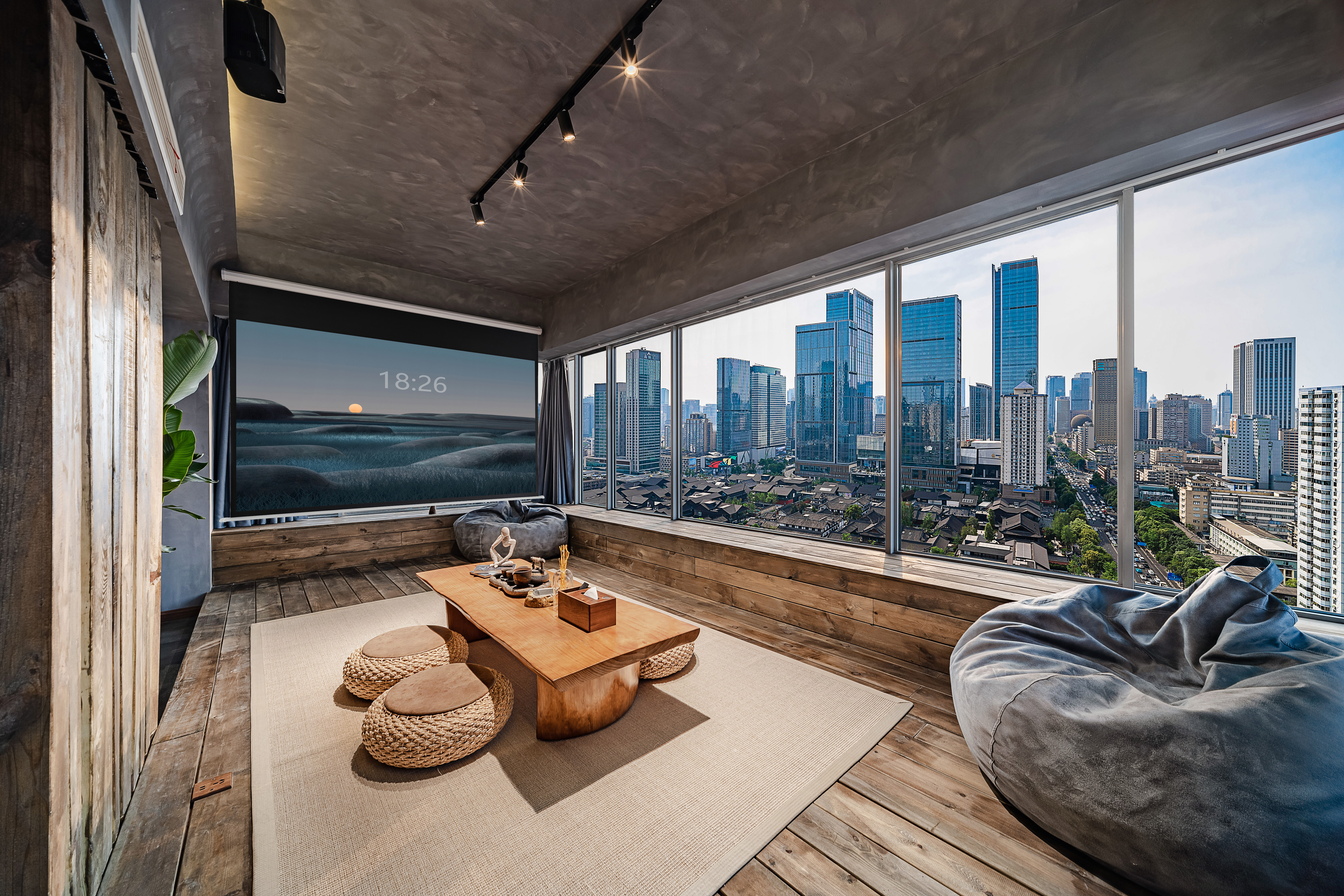 日式幽玄高空城景套房B(巨幕投影+浴缸+270度观景)