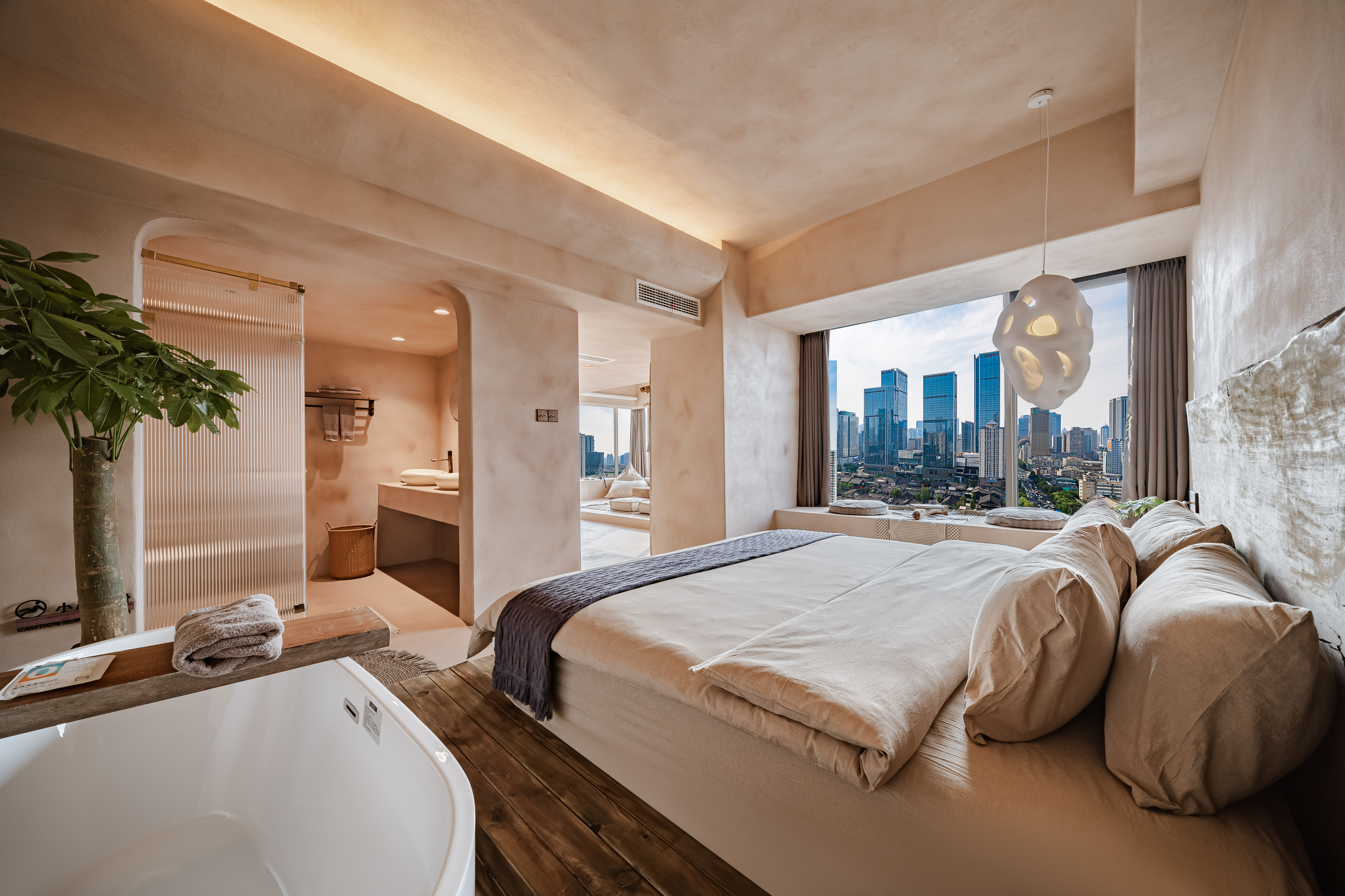 日式幽玄高空城景套房B(巨幕投影+浴缸+270度观景)
