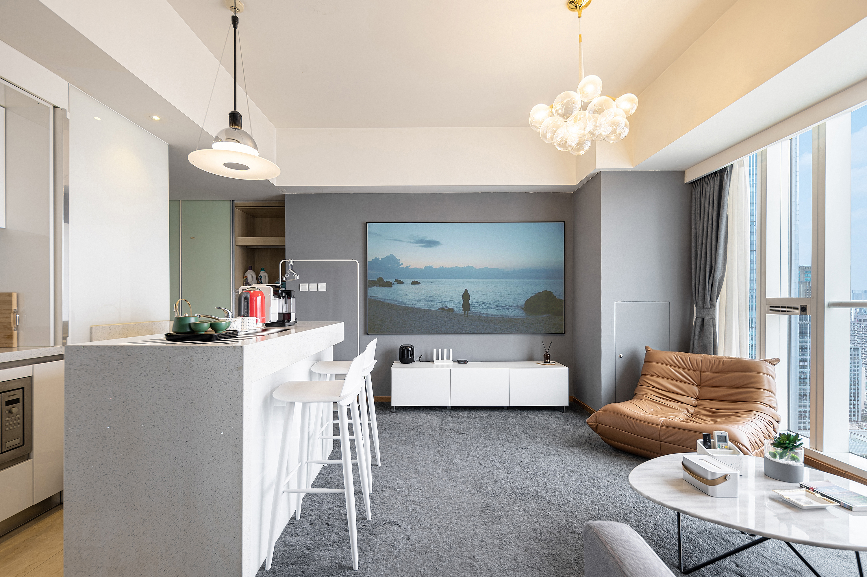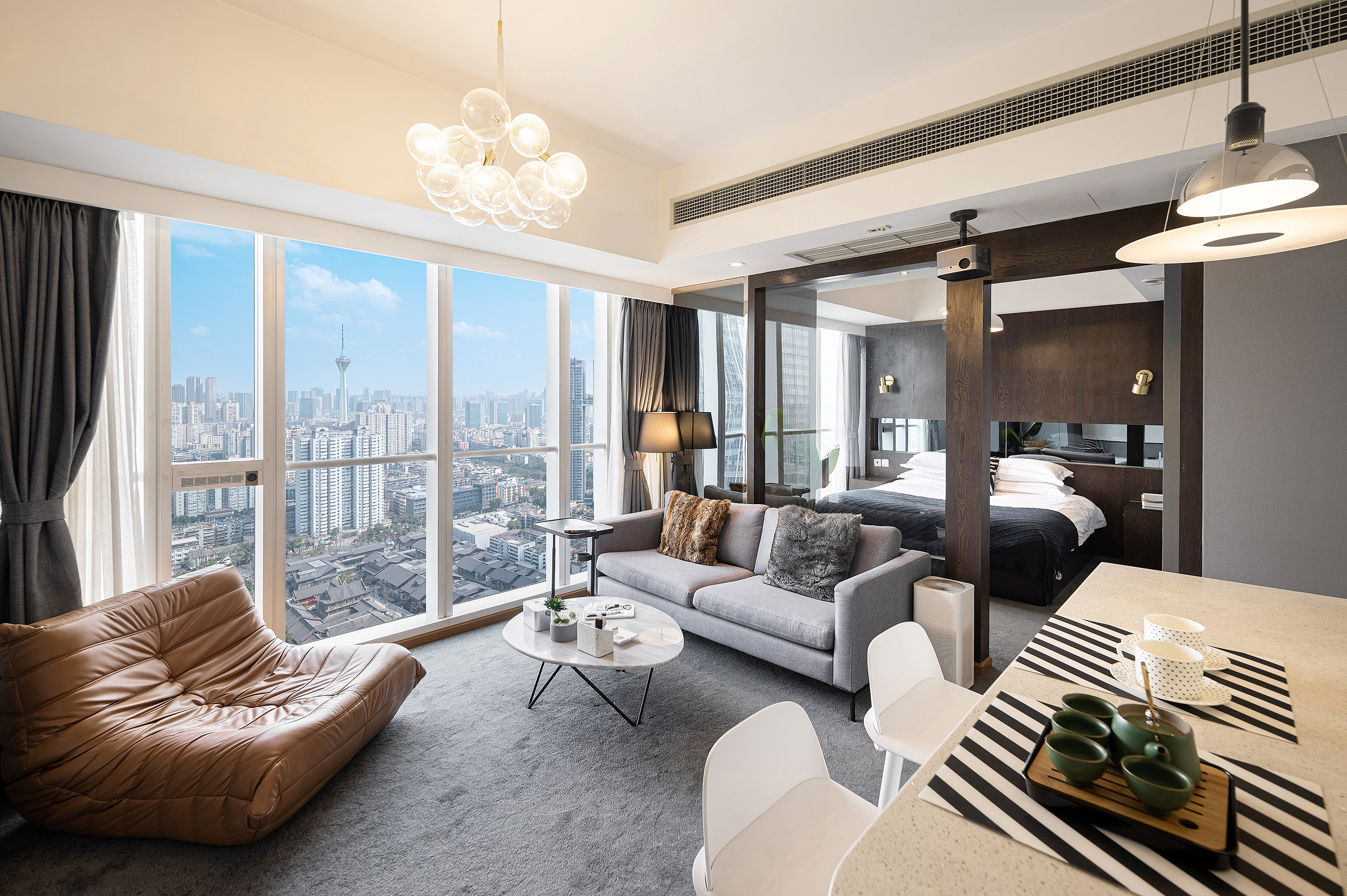 100寸投影太古夜景一室一厅套房(烘乾洗衣机+厨房+3M净水器+蓝牙音响)