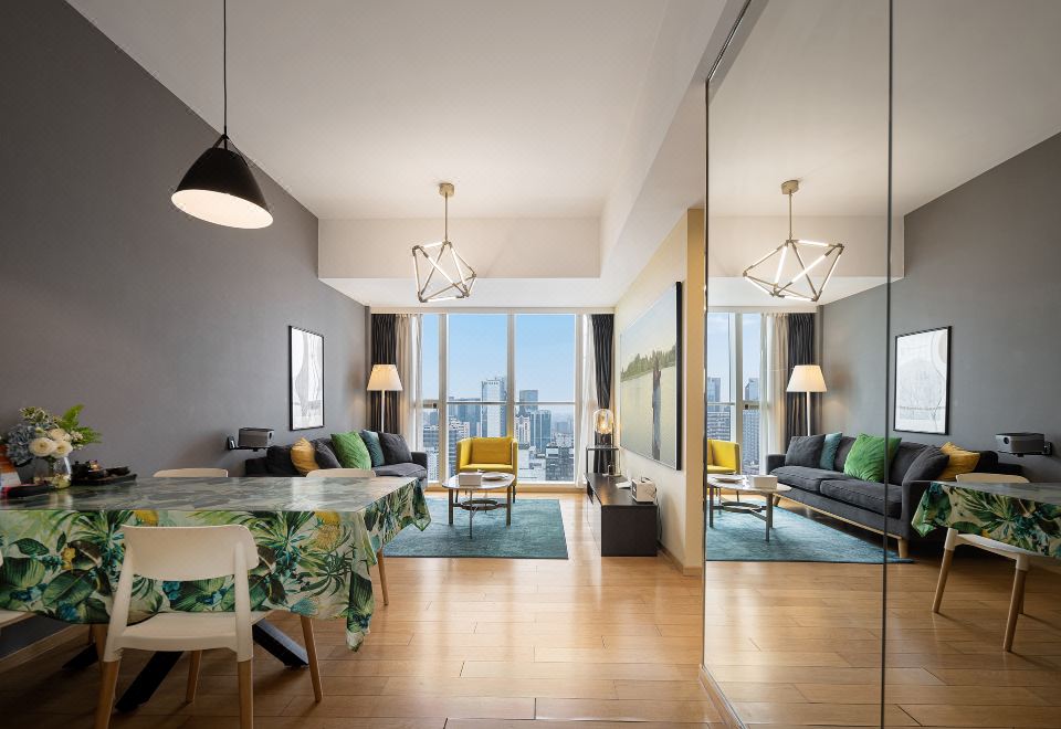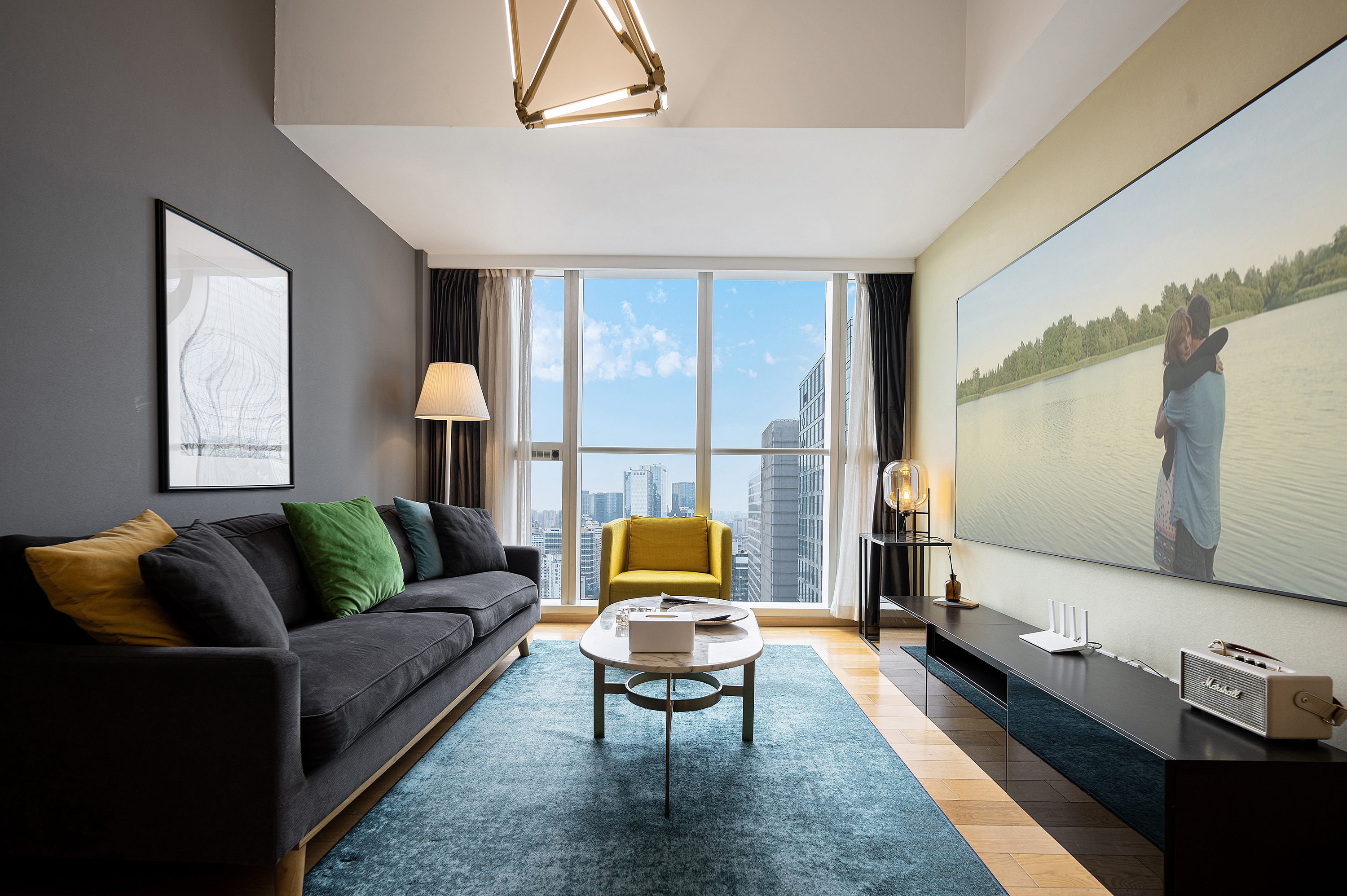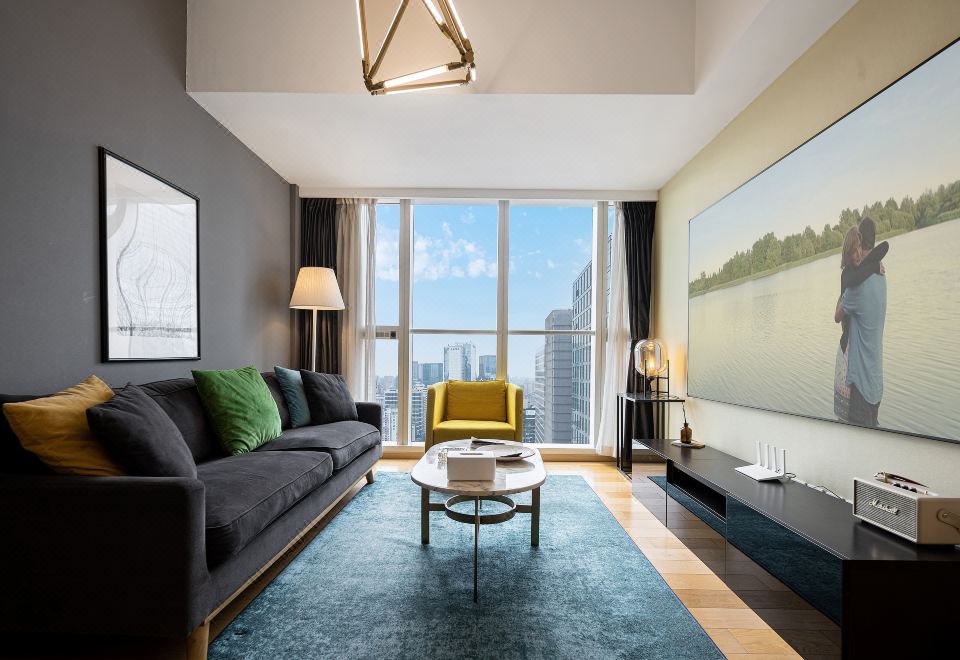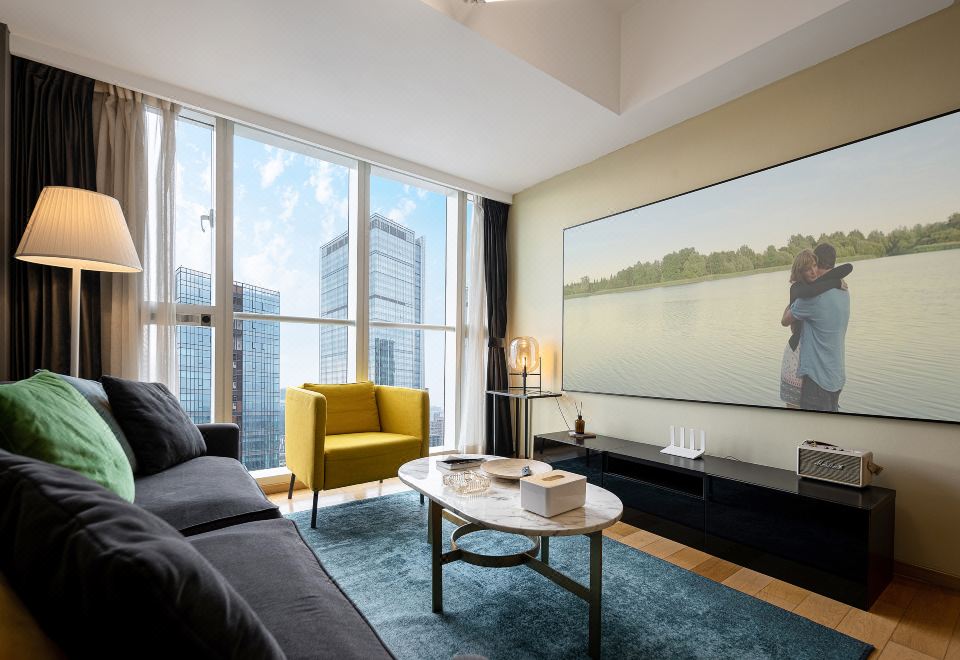 太古里全景超大二室二厅投影套房(烘乾洗衣机+厨房+3M净水器+蓝牙音响)