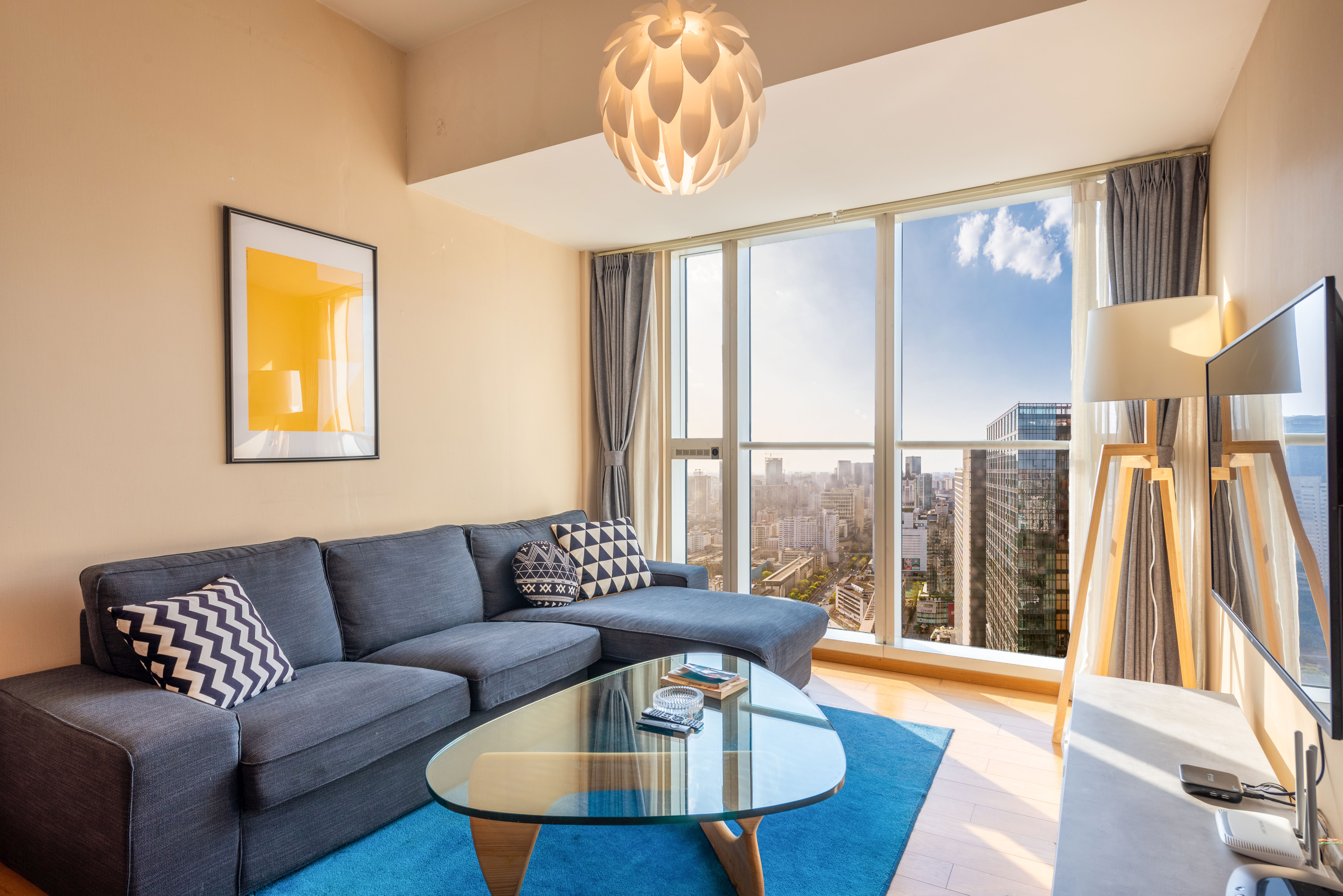 太古里全景超大二室二厅投影套房(烘乾洗衣机+厨房+3M净水器+蓝牙音响)