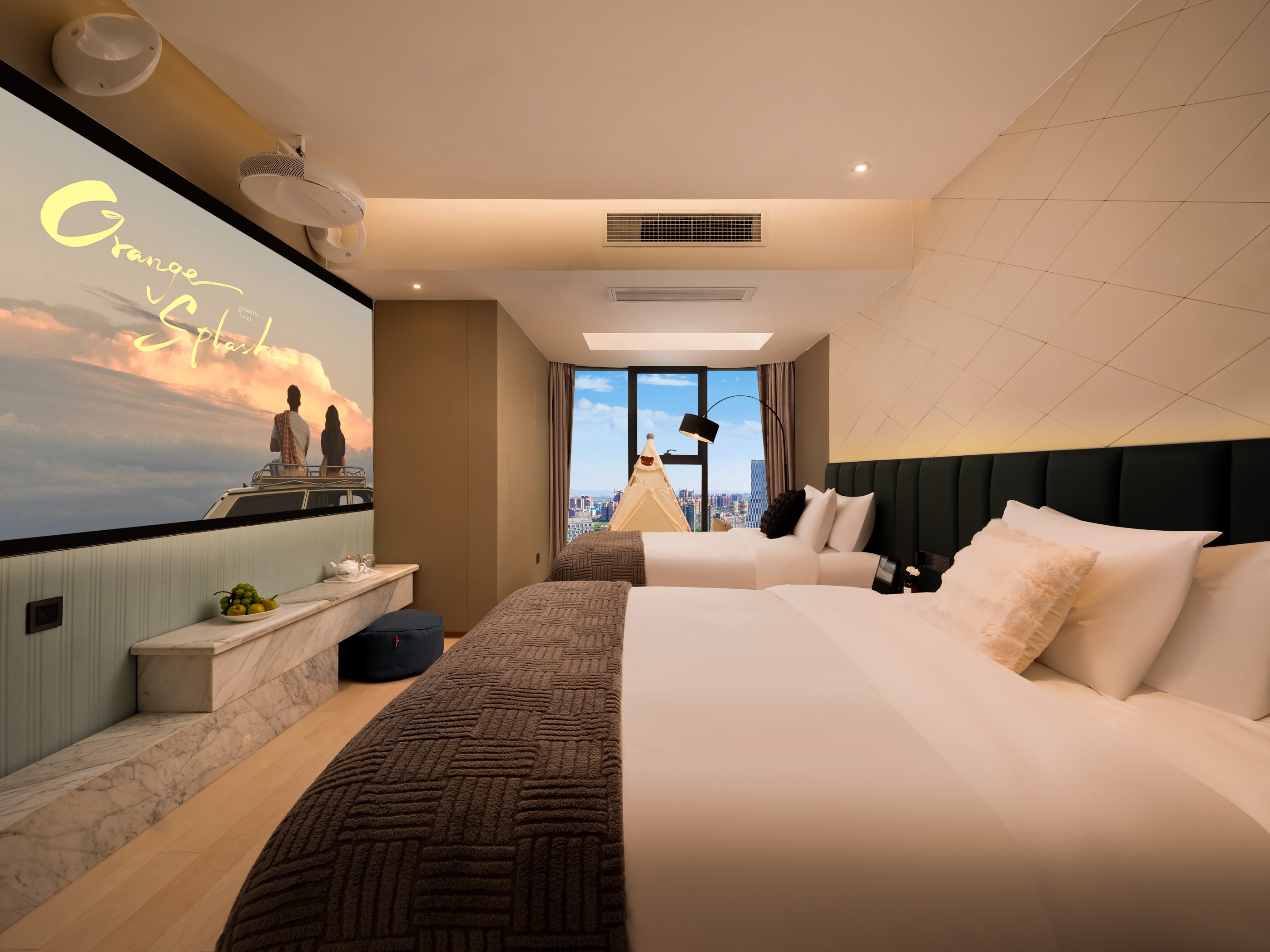 电影全景大小双床房(激光投影)