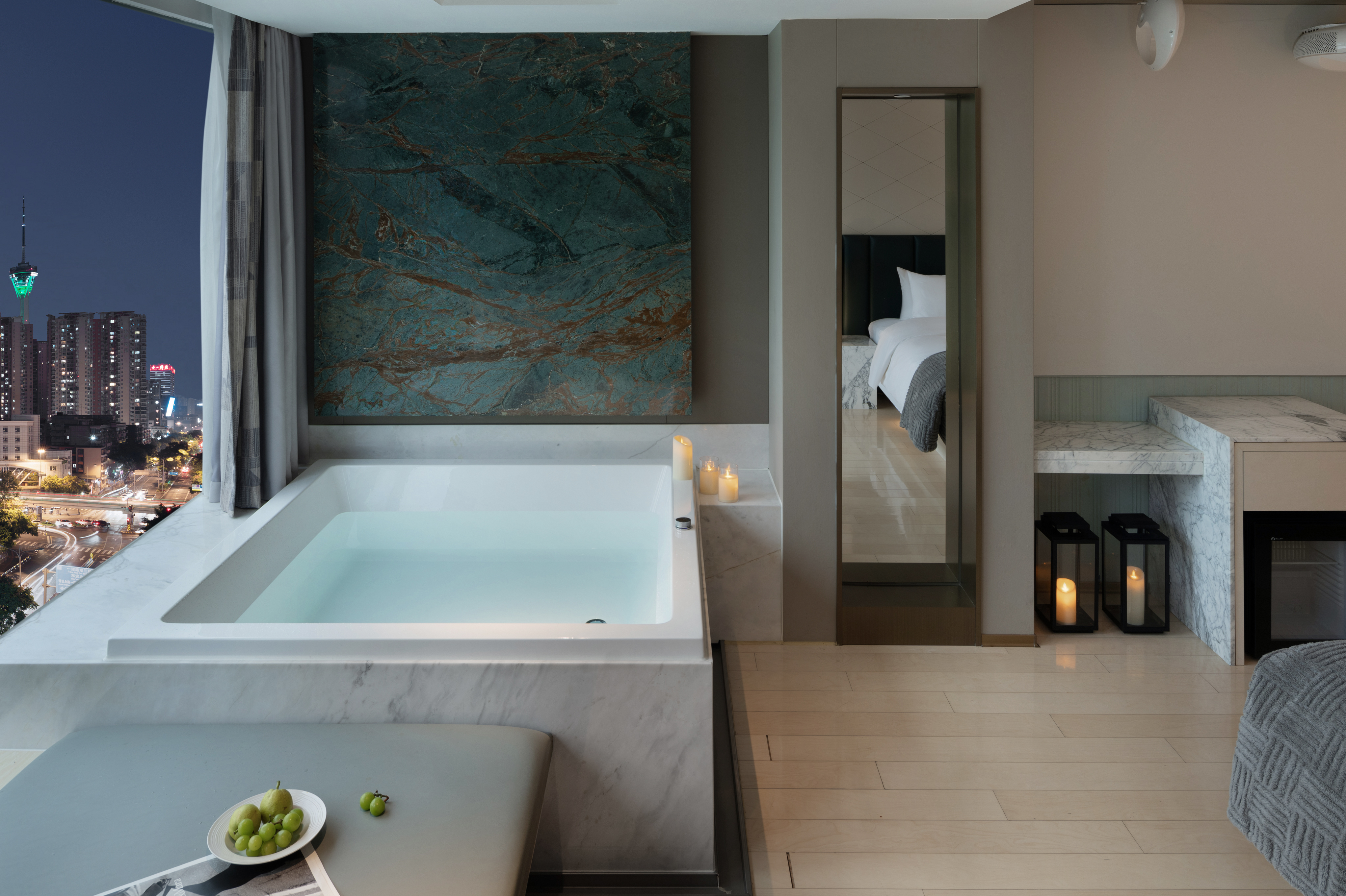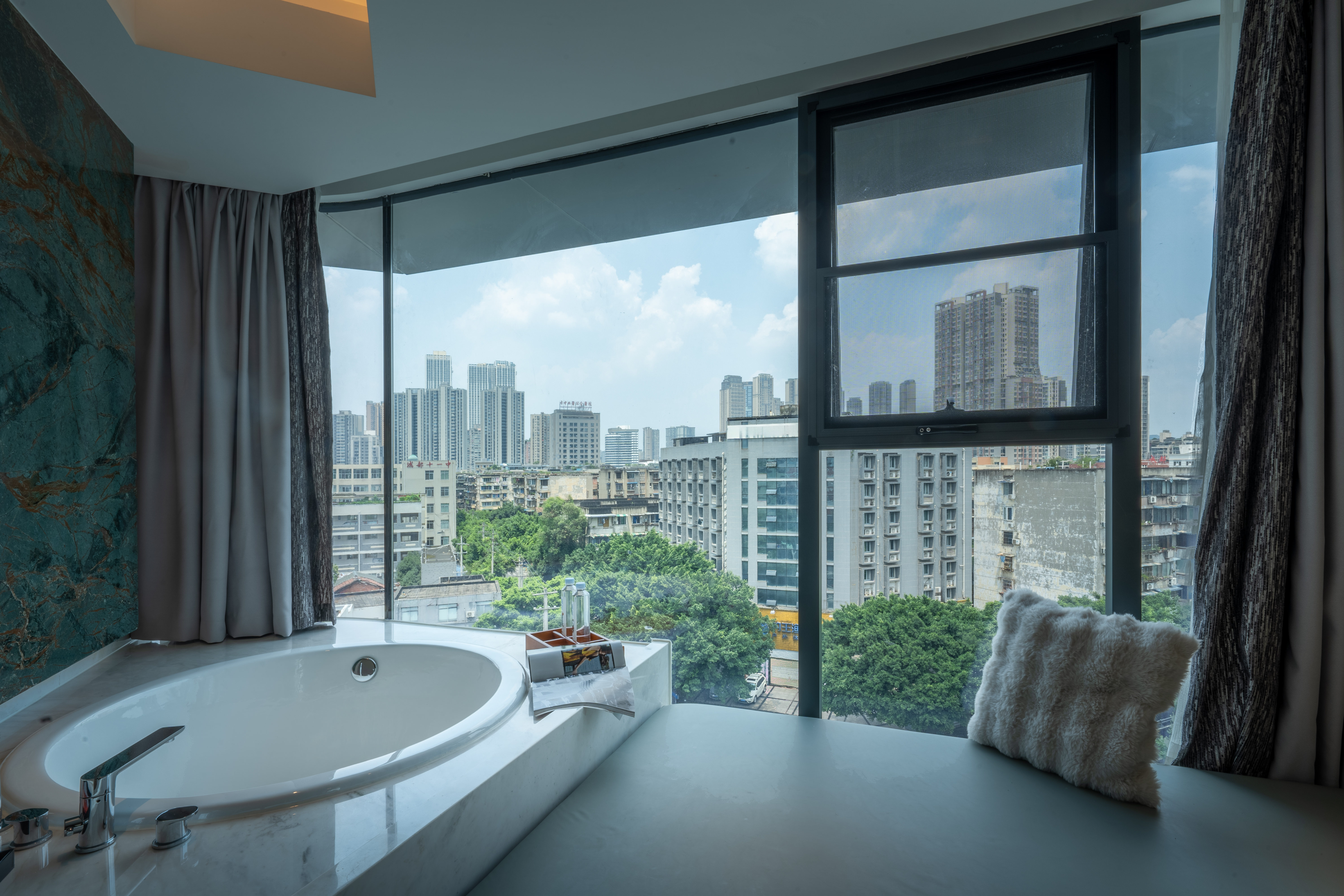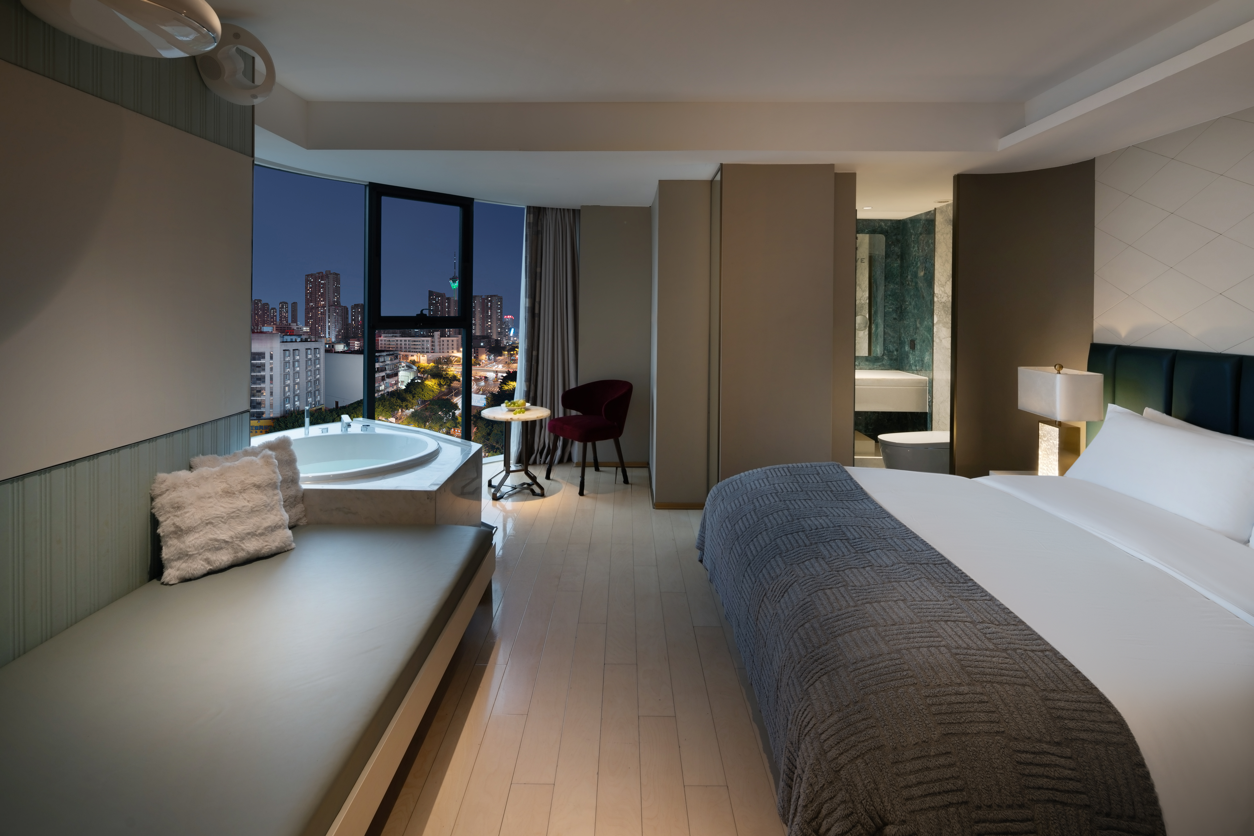 电影地台全景汤池家庭房(激光投影+地台+泡池)
