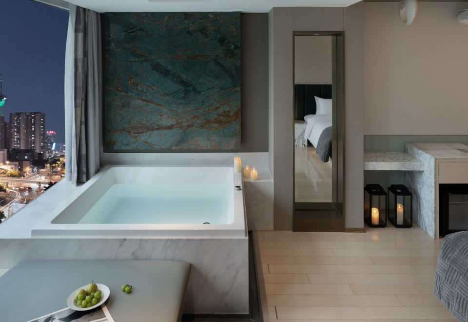 电影地台超大汤池冲浪家庭房(激光投影+地台+泡池)