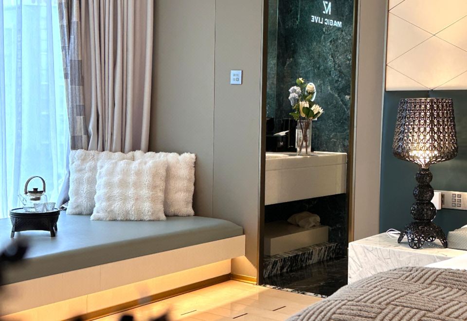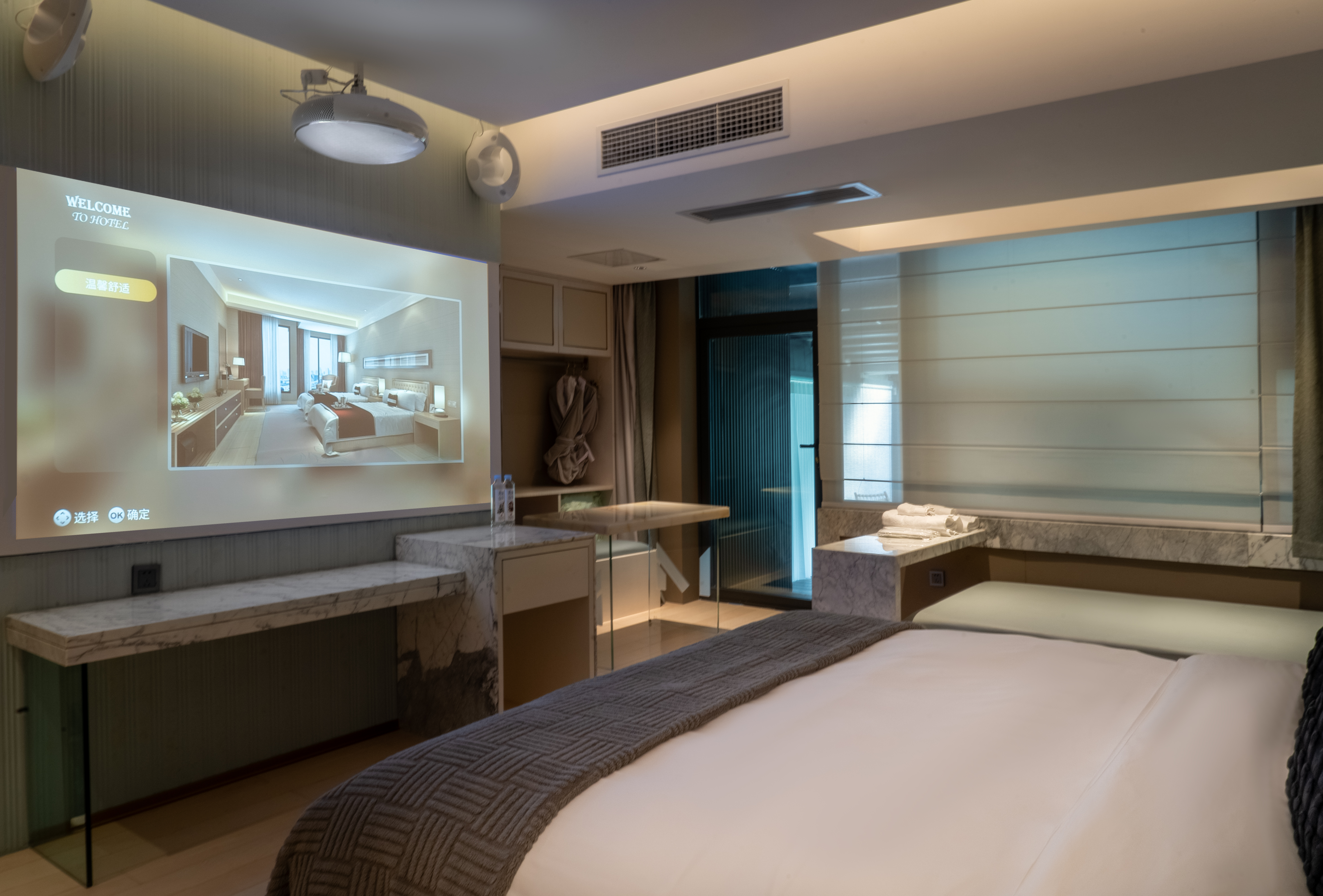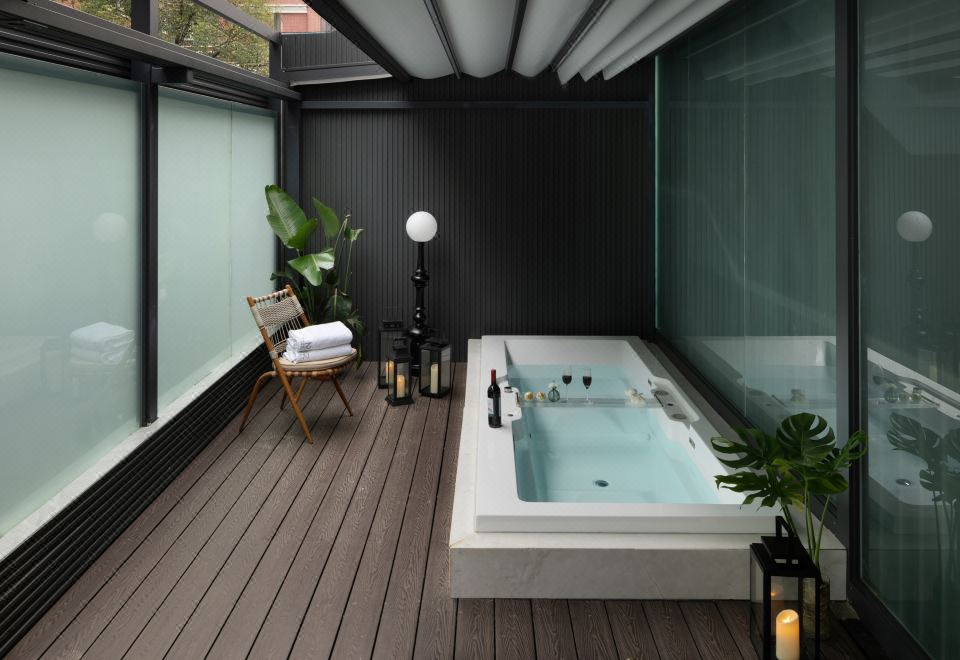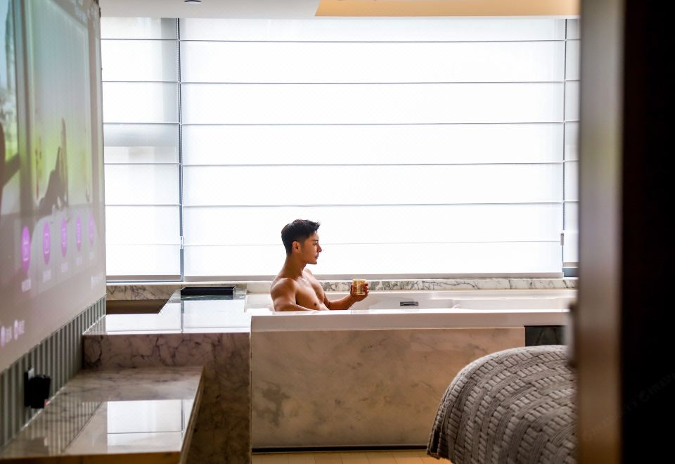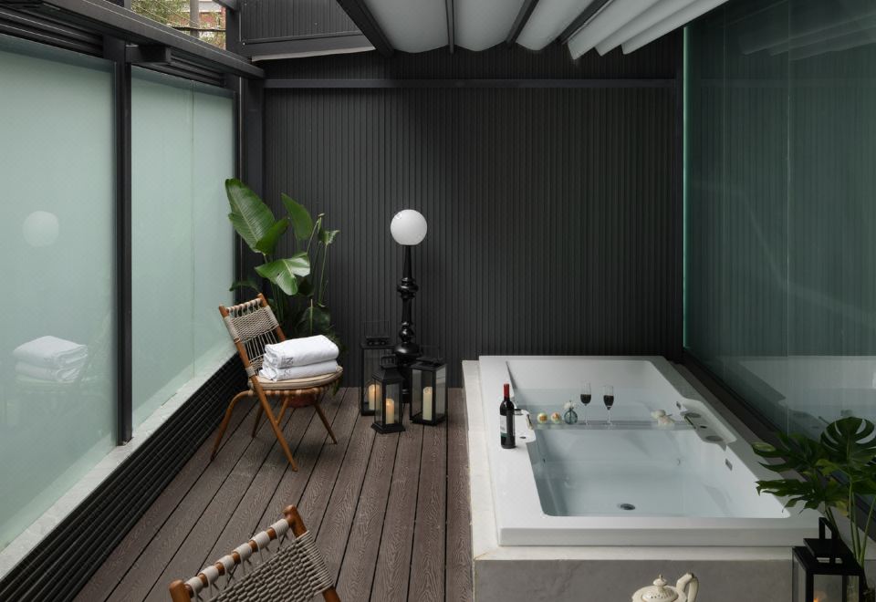 电影地台超大花园汤池家庭房(激光投影+超大浴缸)