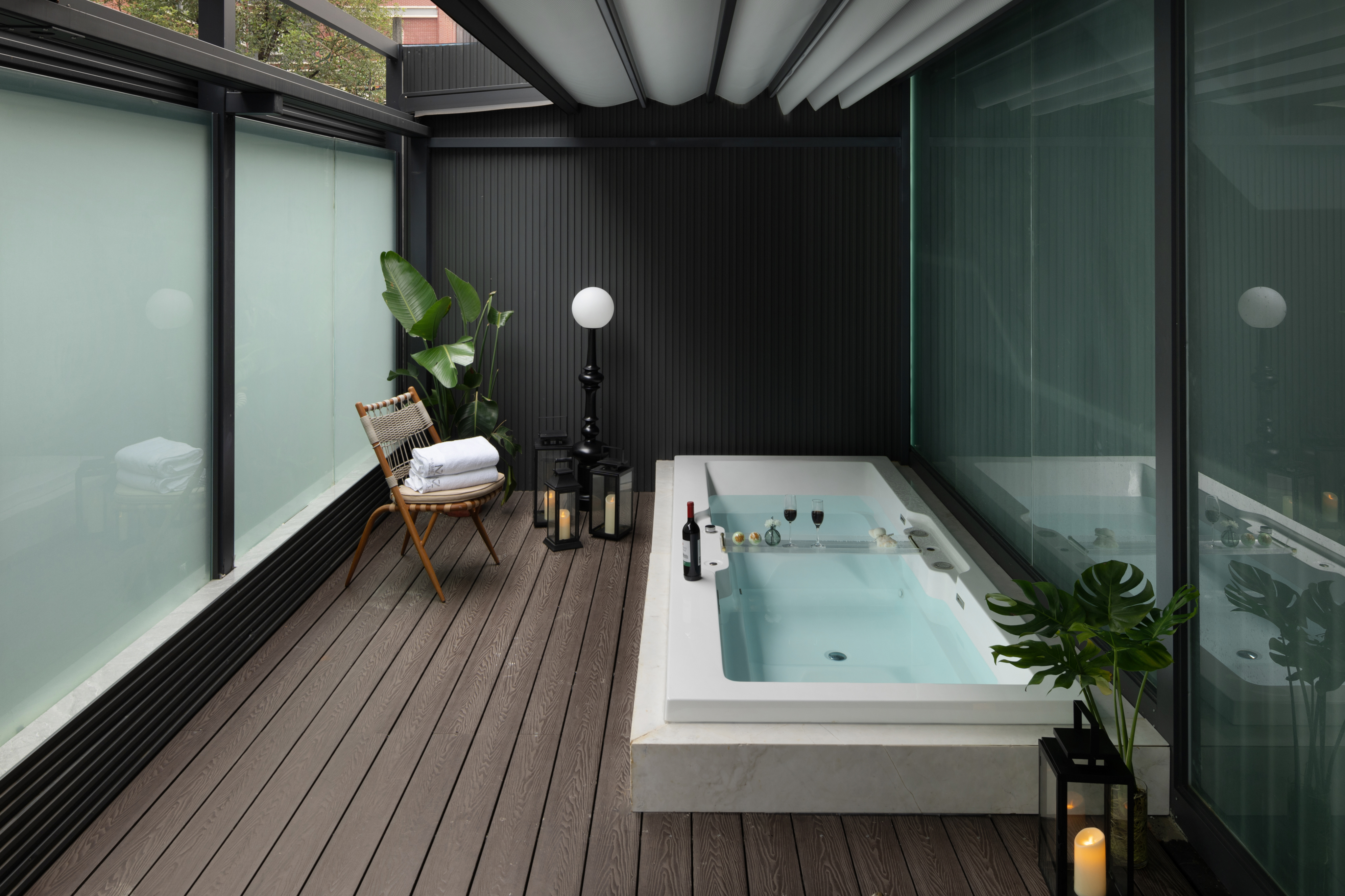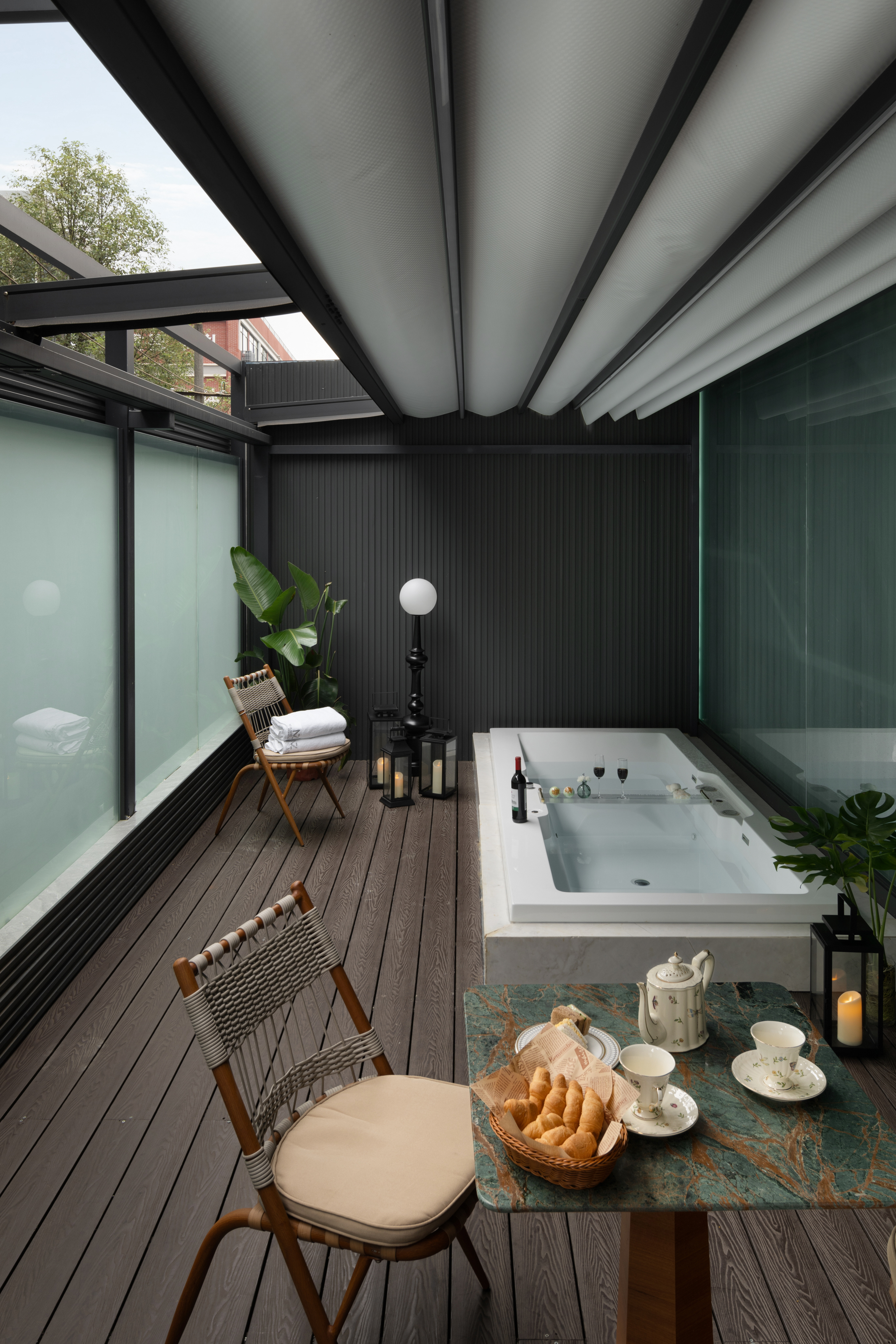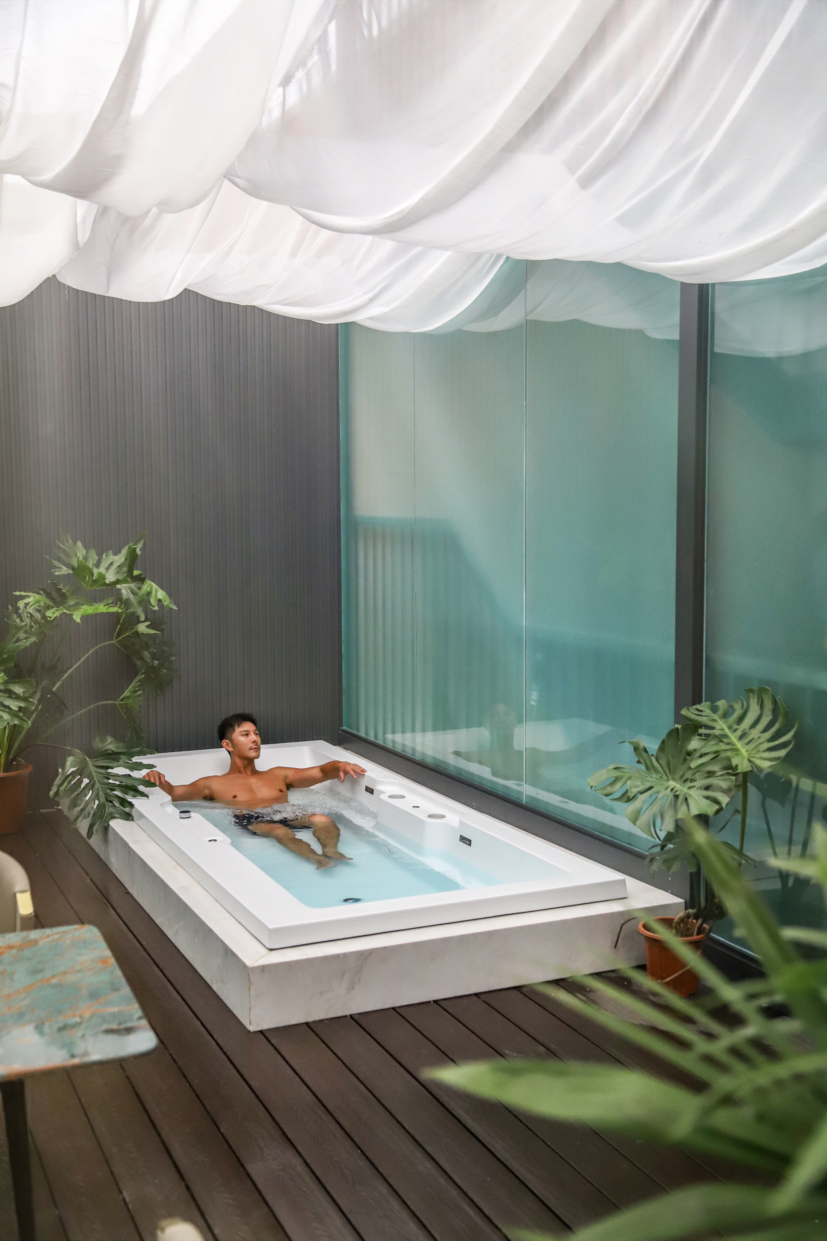 电影地台超大花园汤池家庭房(激光投影+超大浴缸)