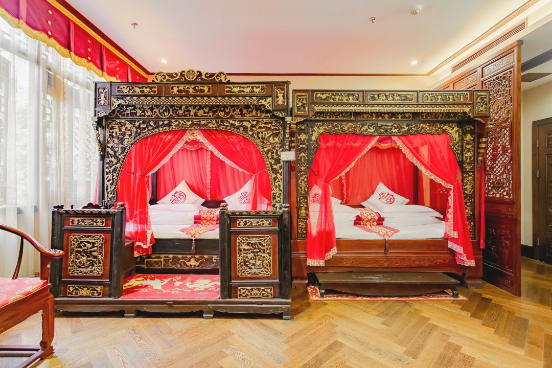 如梦令.宽居双床(千工拔步床+乳胶床垫+空气净化机)