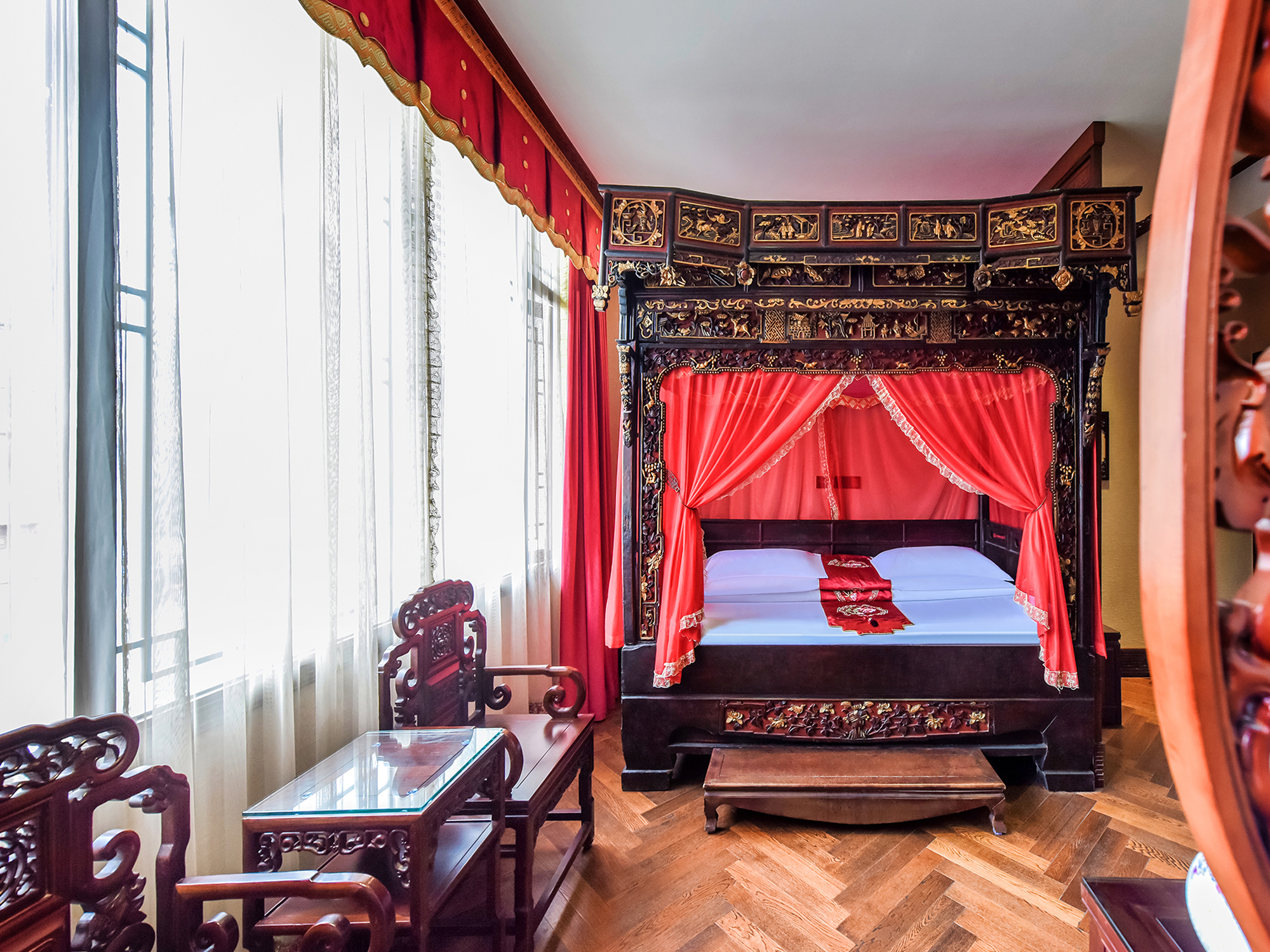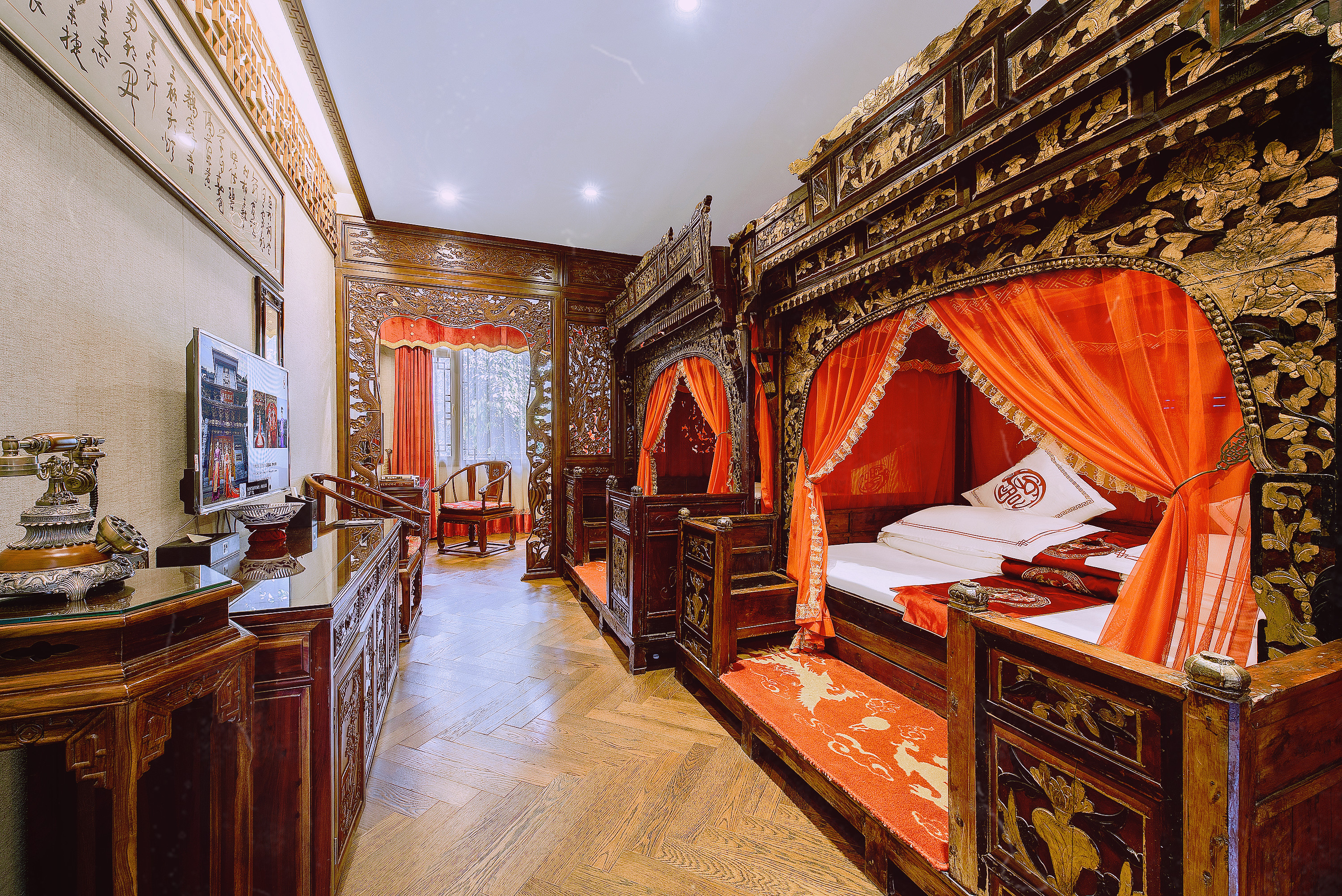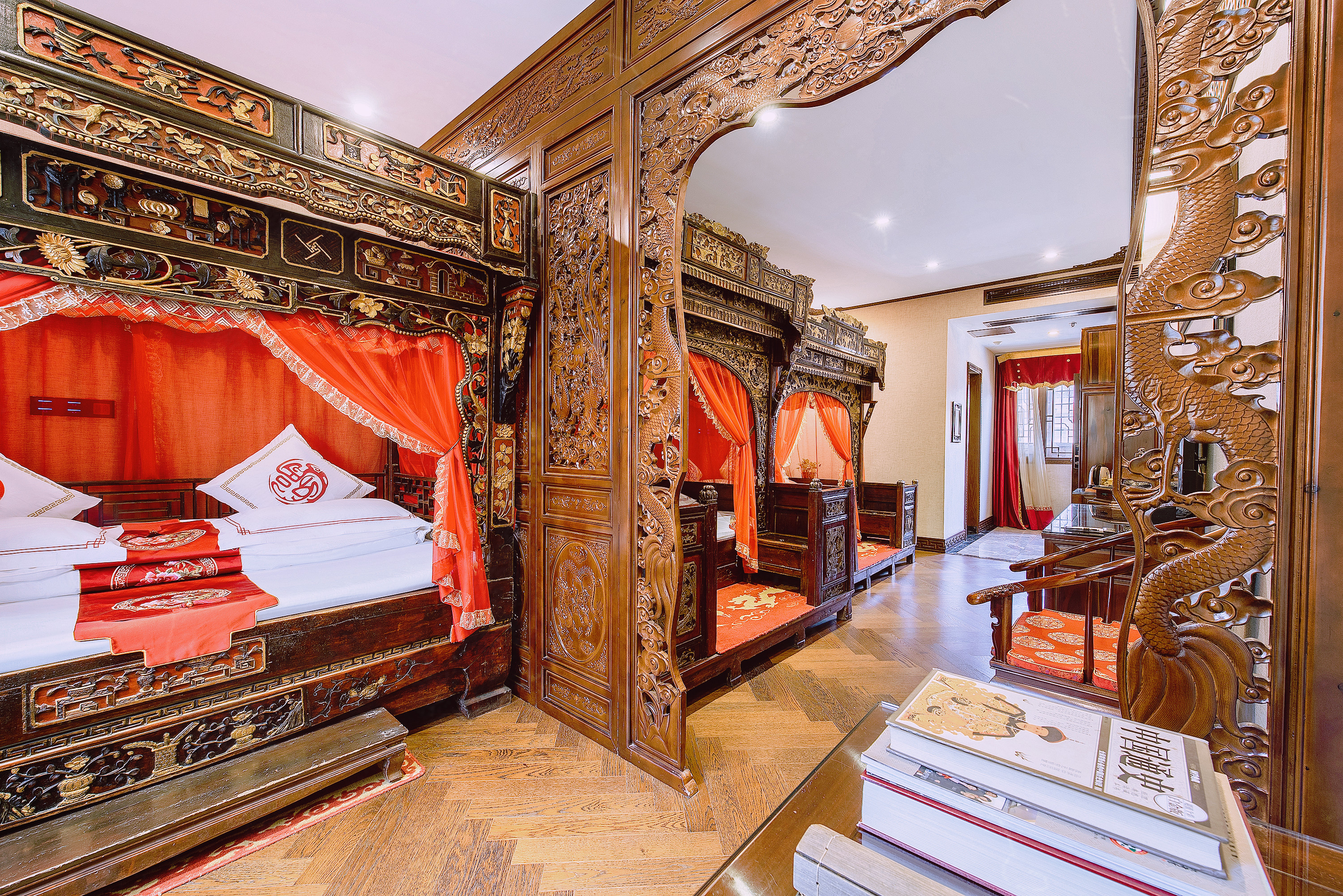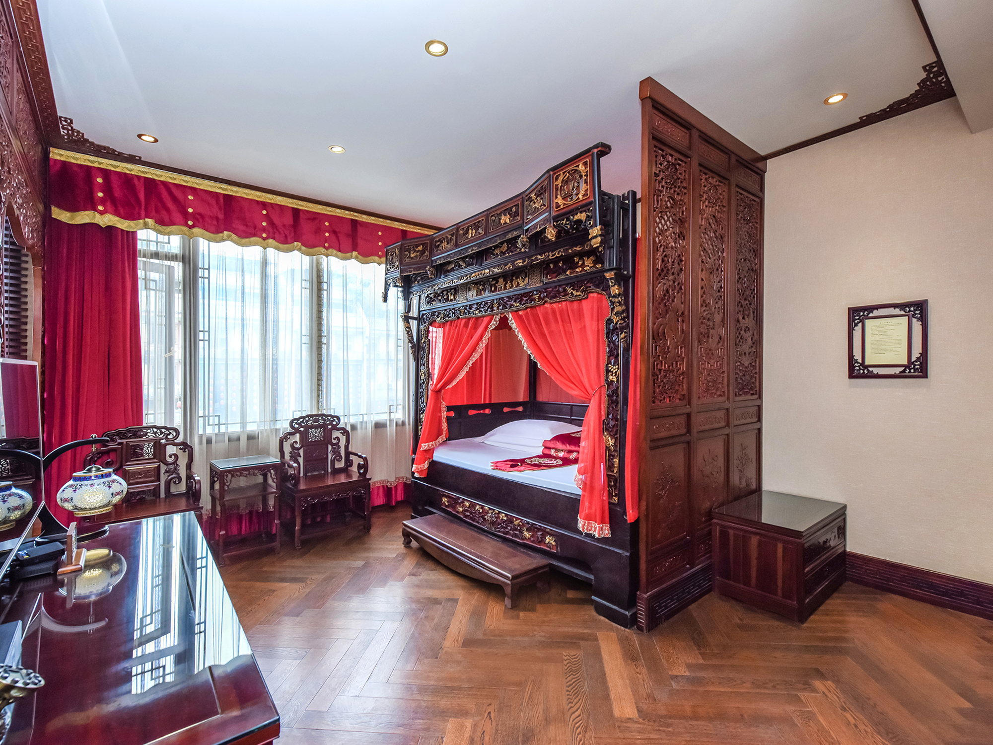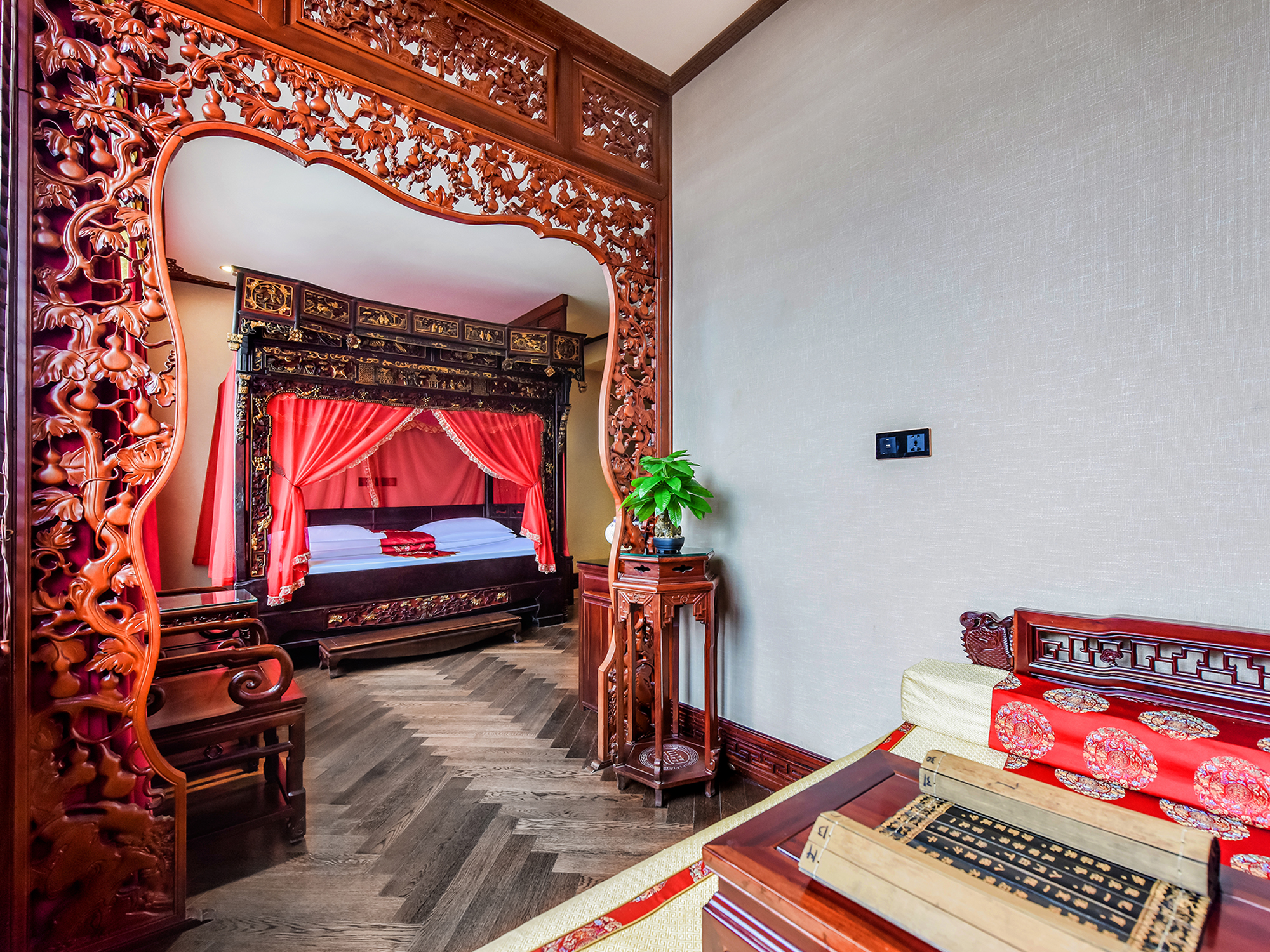 南歌子.雅奢双卧三床(拔步大床+乳胶床垫+空气净化机)
