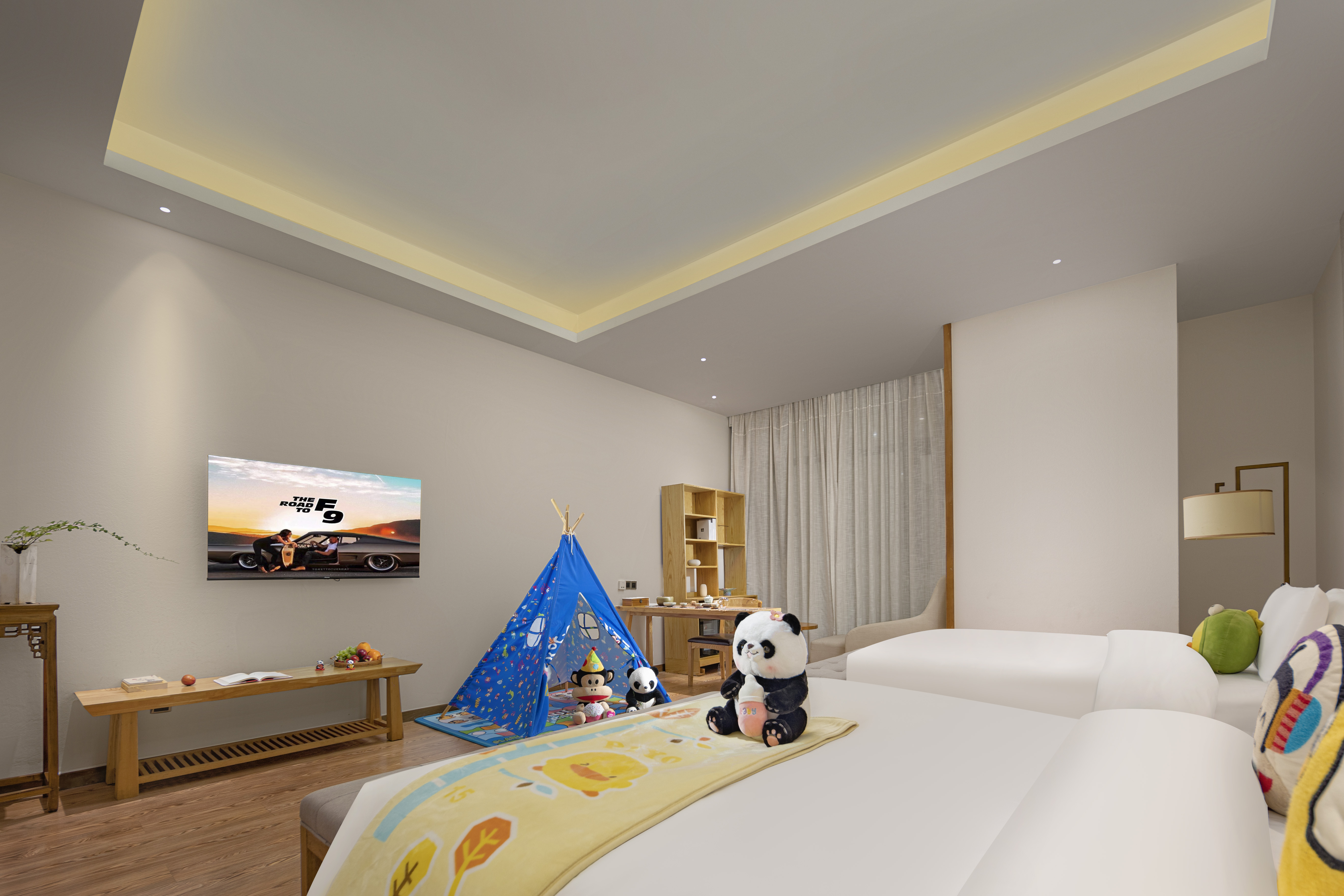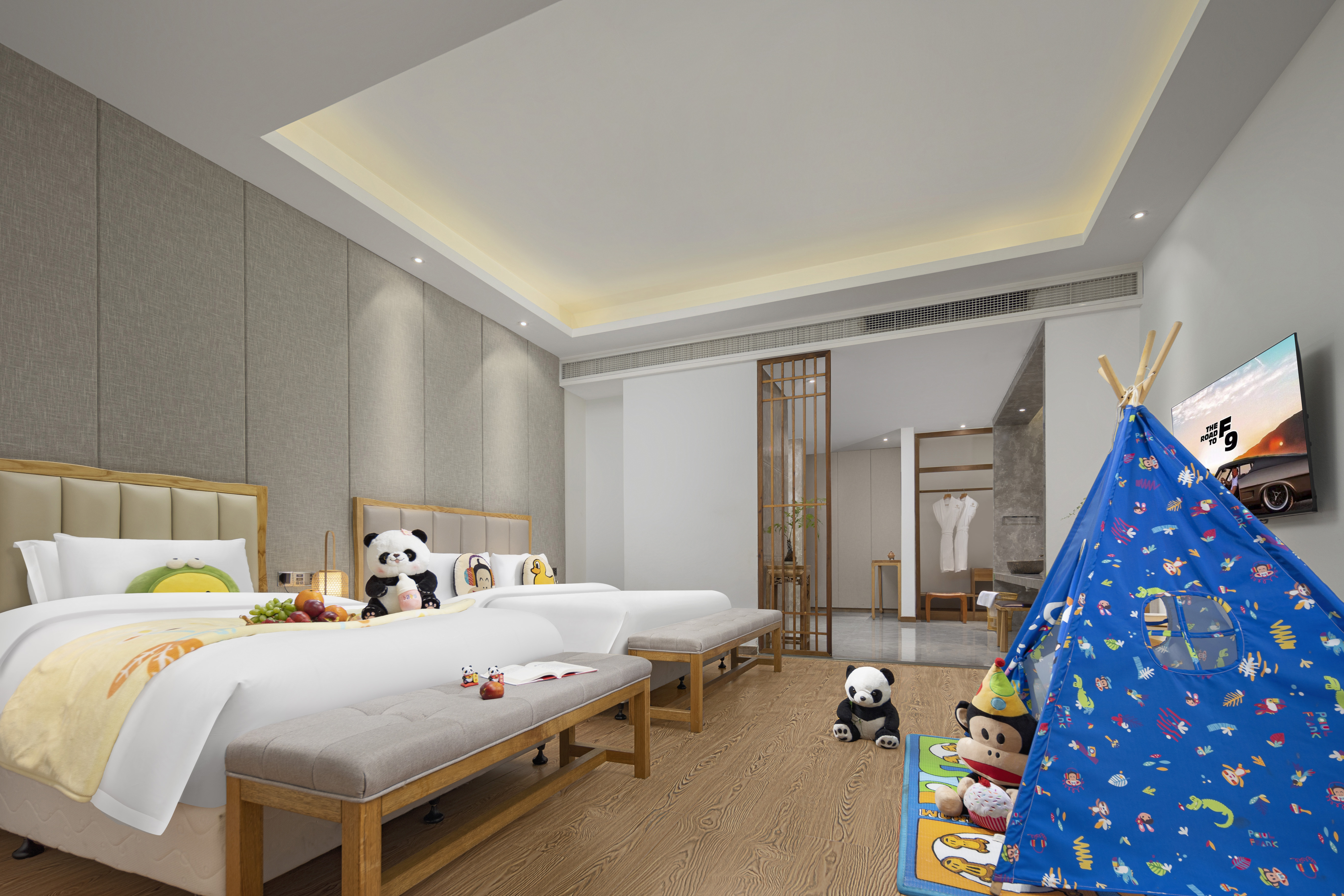 乐享主题亲子房(金可儿床垫+雨淋顶喷+小童帐篷、玩偶+茶空间畅享)