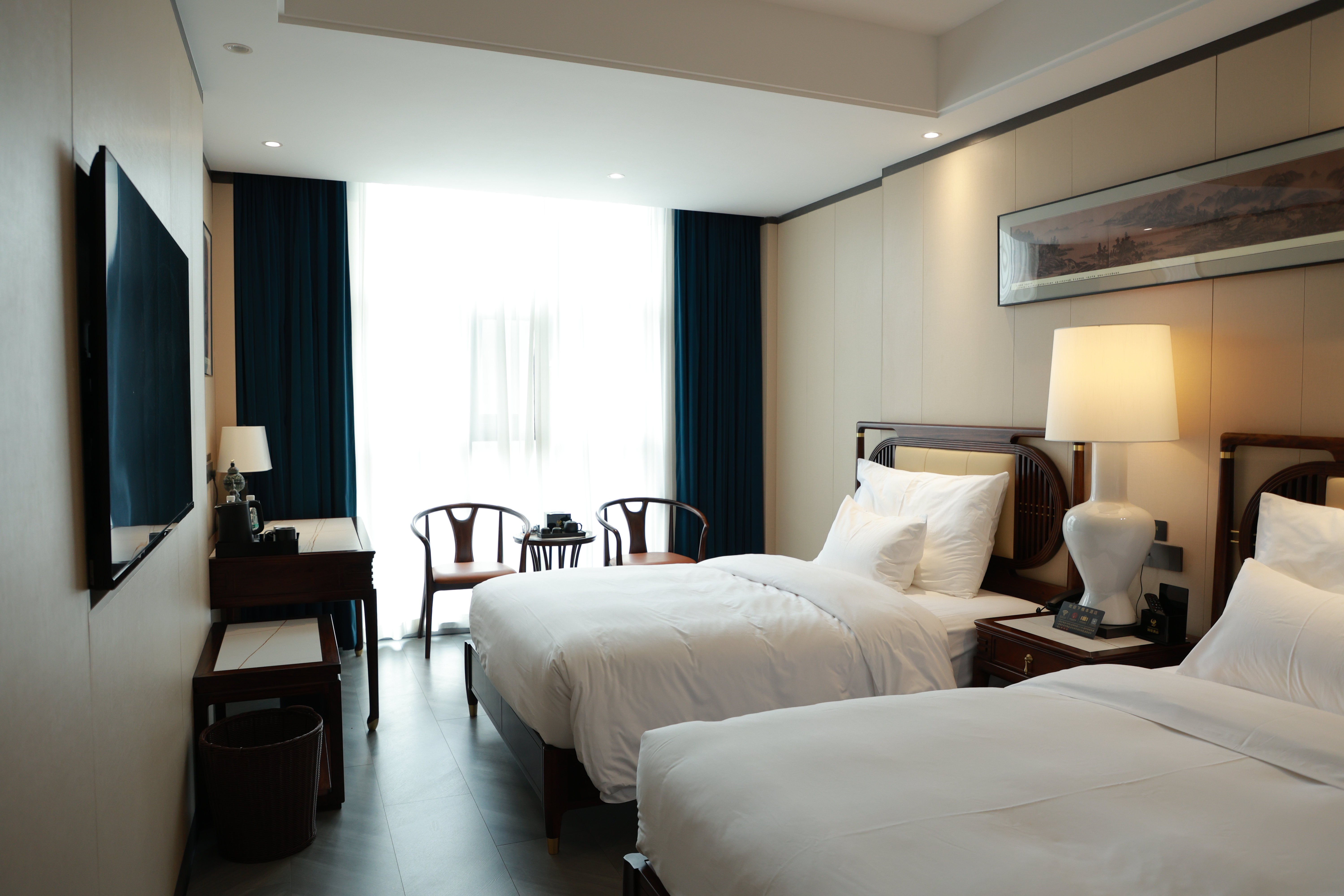 Shi Jin Li Twin Room (Natural Wood Aesthetics + Chinese Study Four Treasures + Disposable Cleansing Towel)