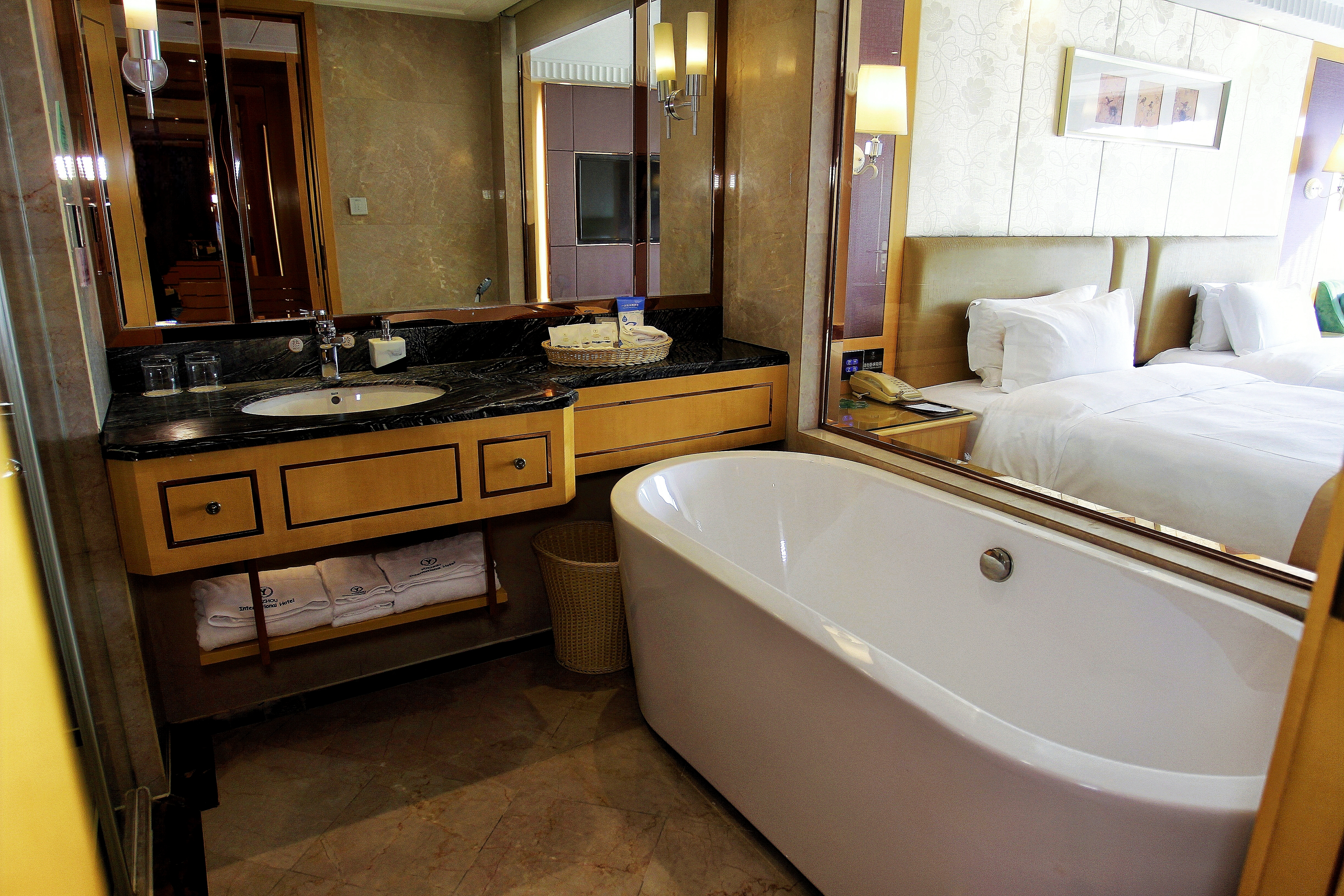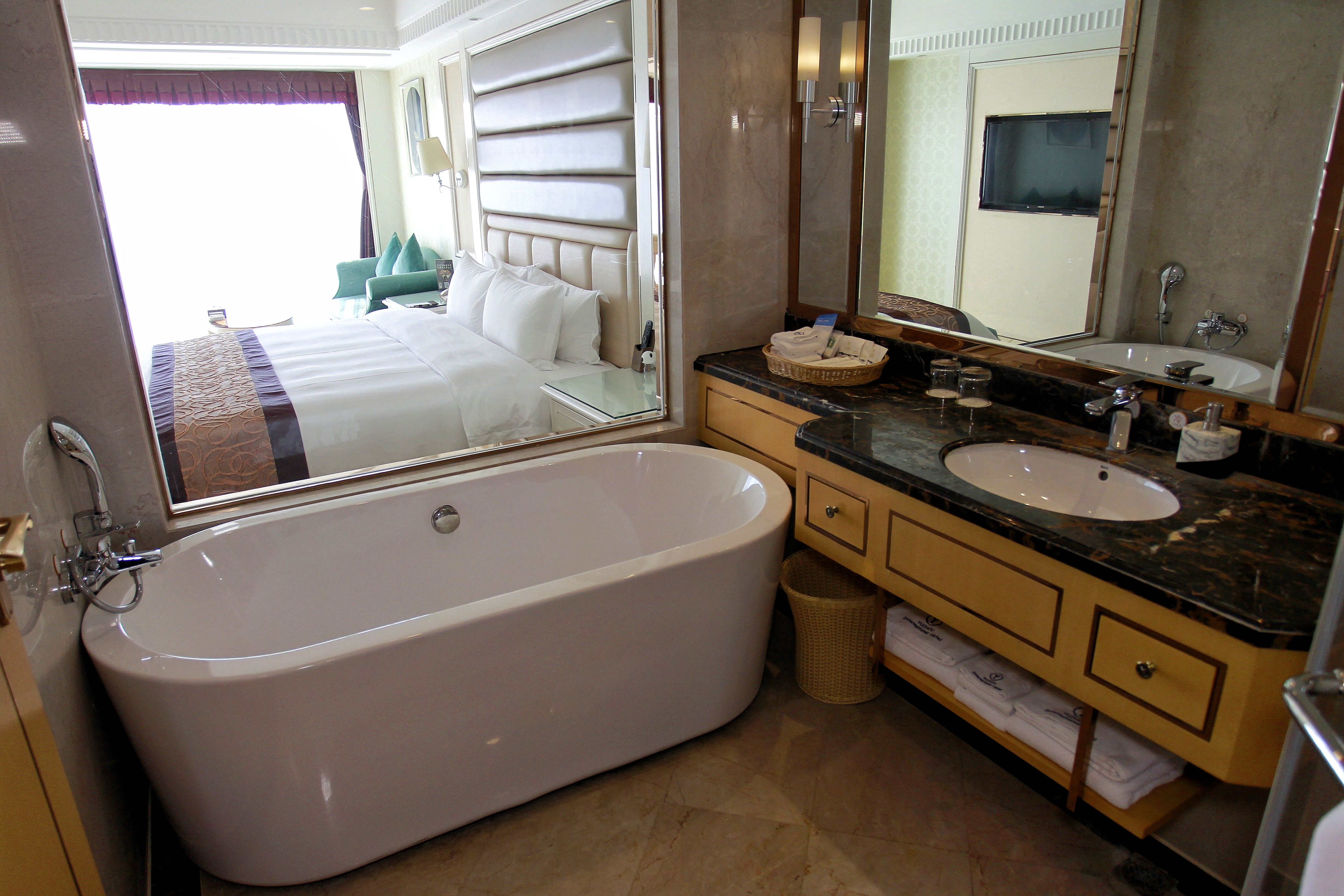 高级双床房【鹅绒被+全景落地窗+浴缸】