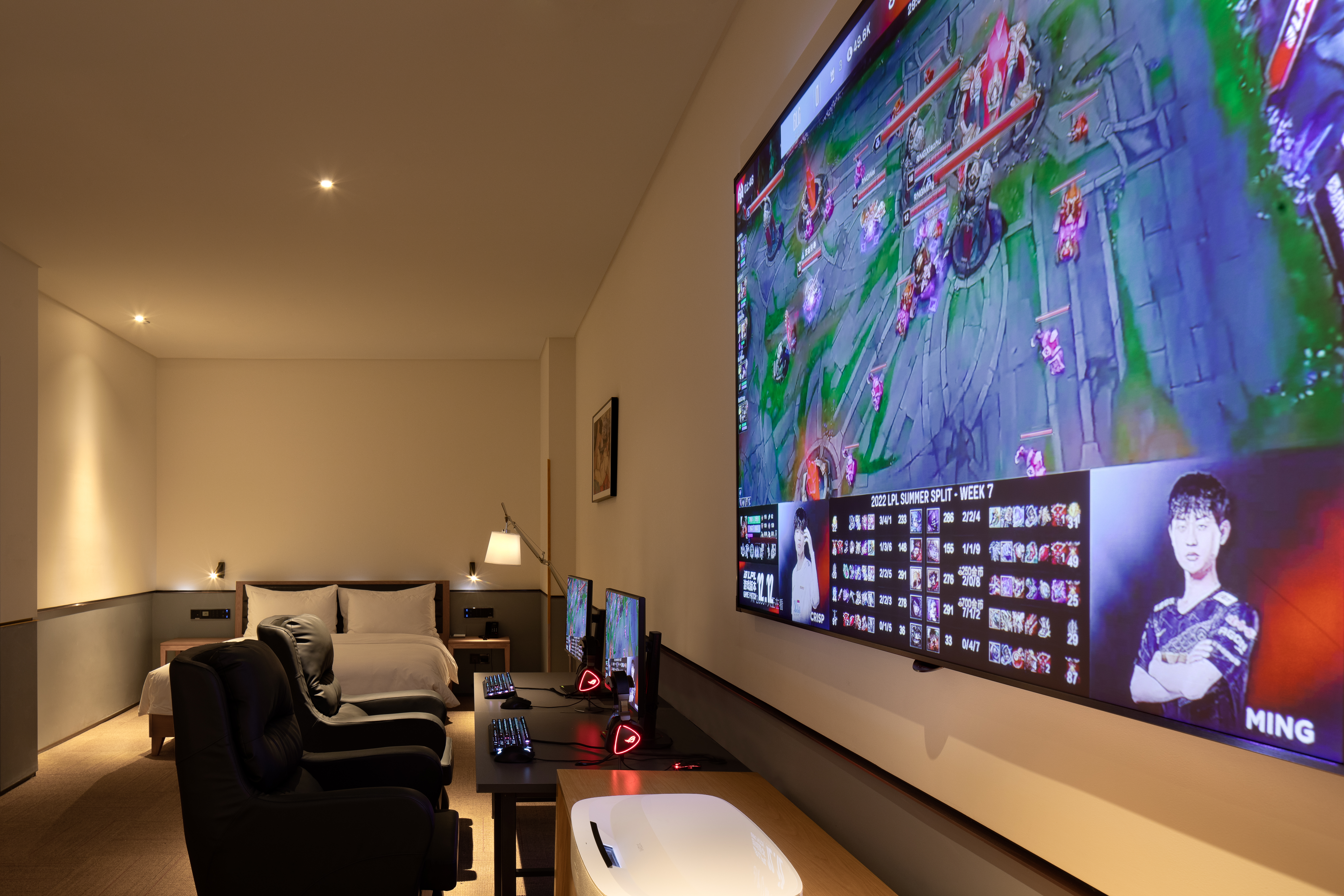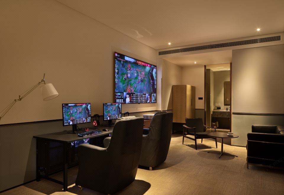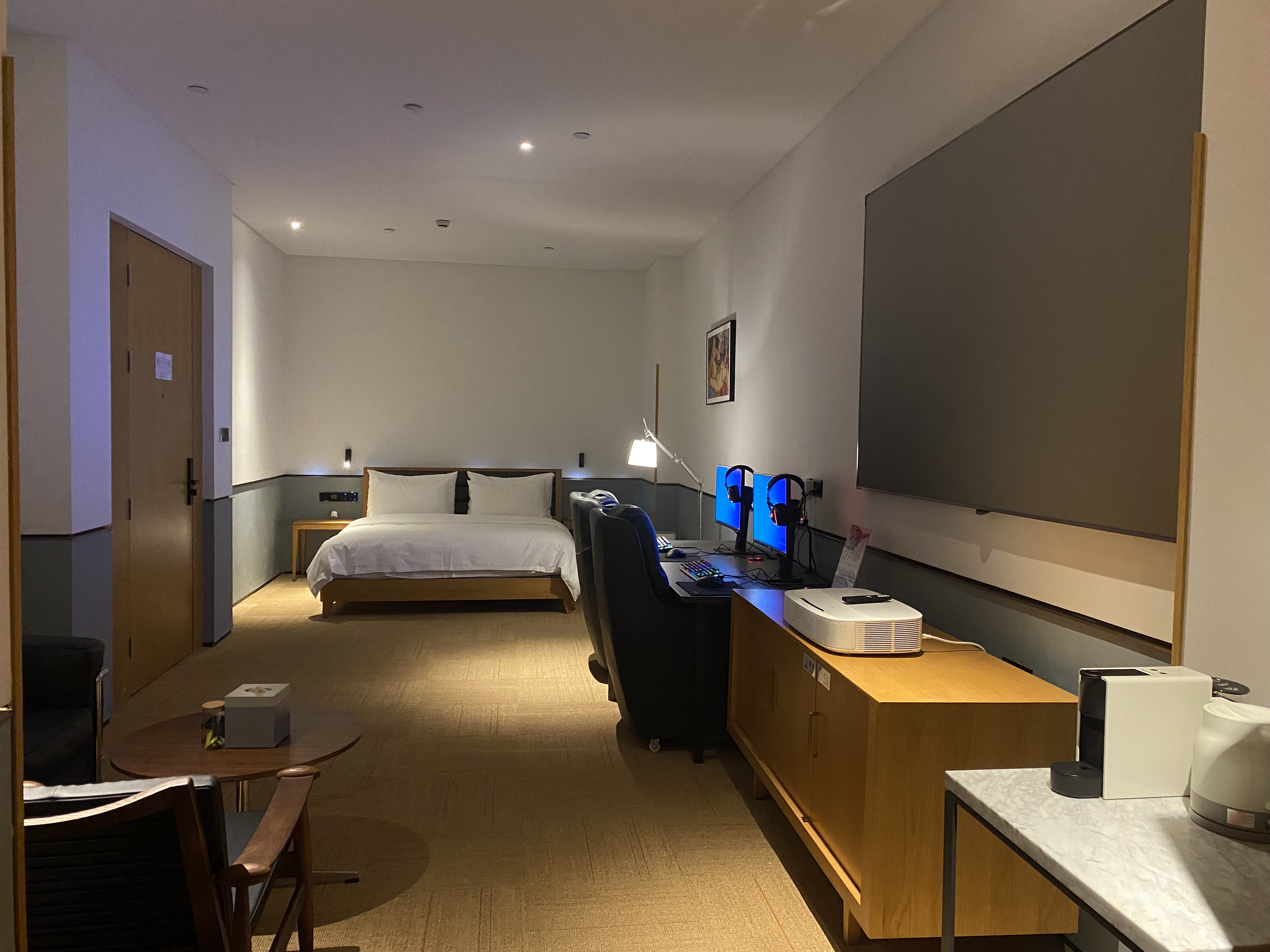 影音大床房[带双人电竞电脑]-极米巨幕投影+金可儿床垫+全屋智能客控+松下智能马桶+胶囊咖啡机