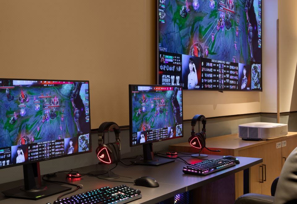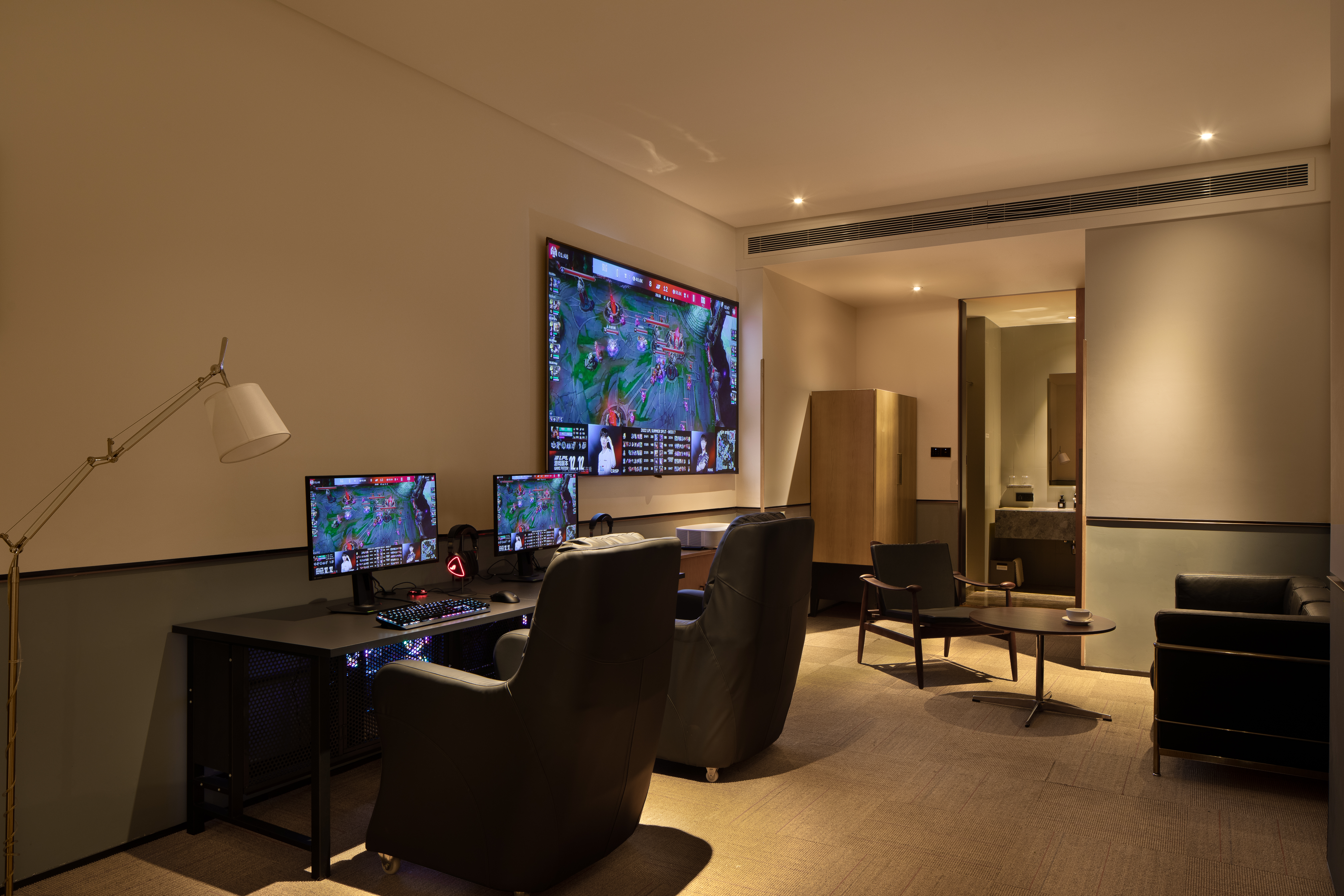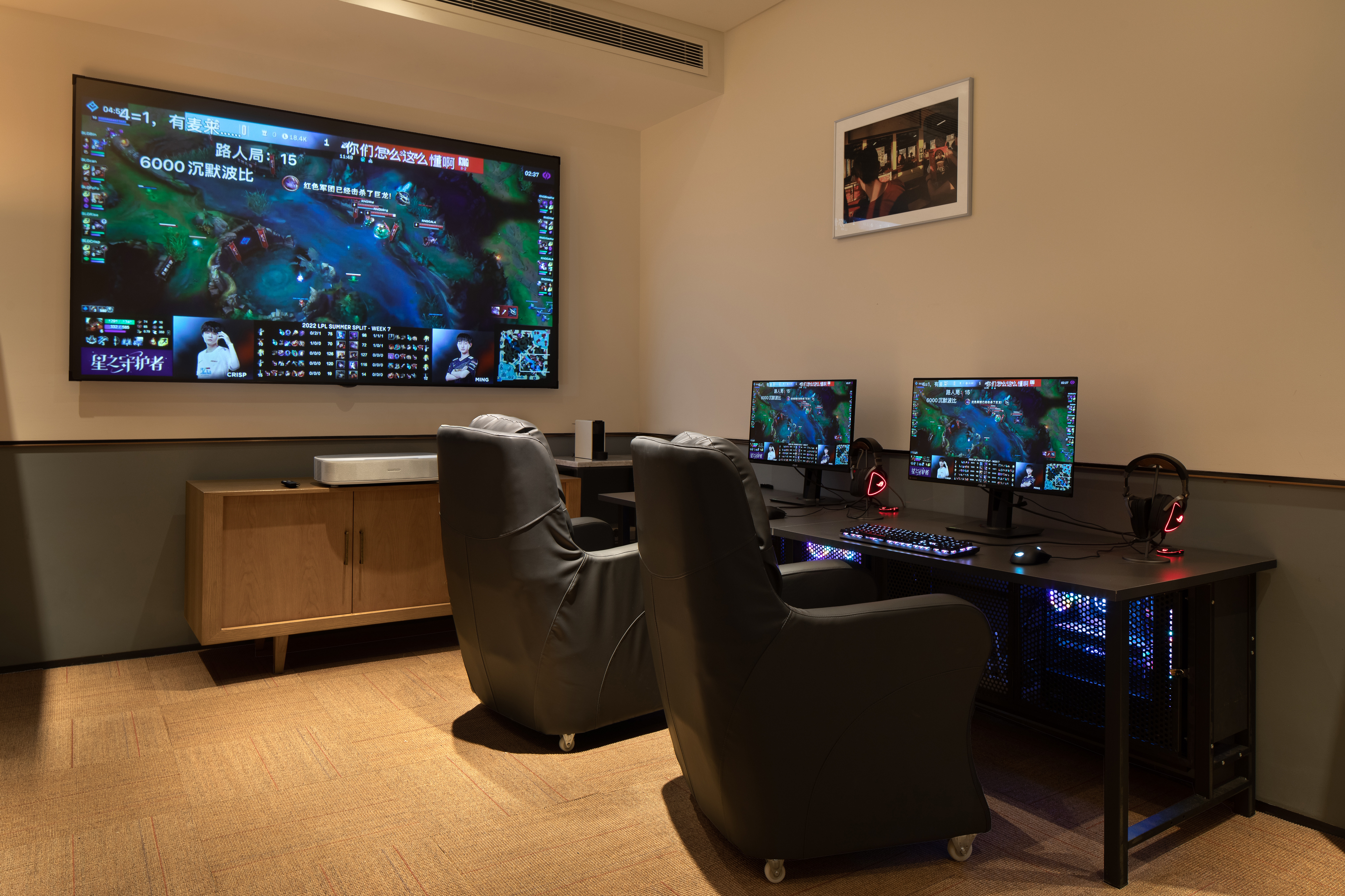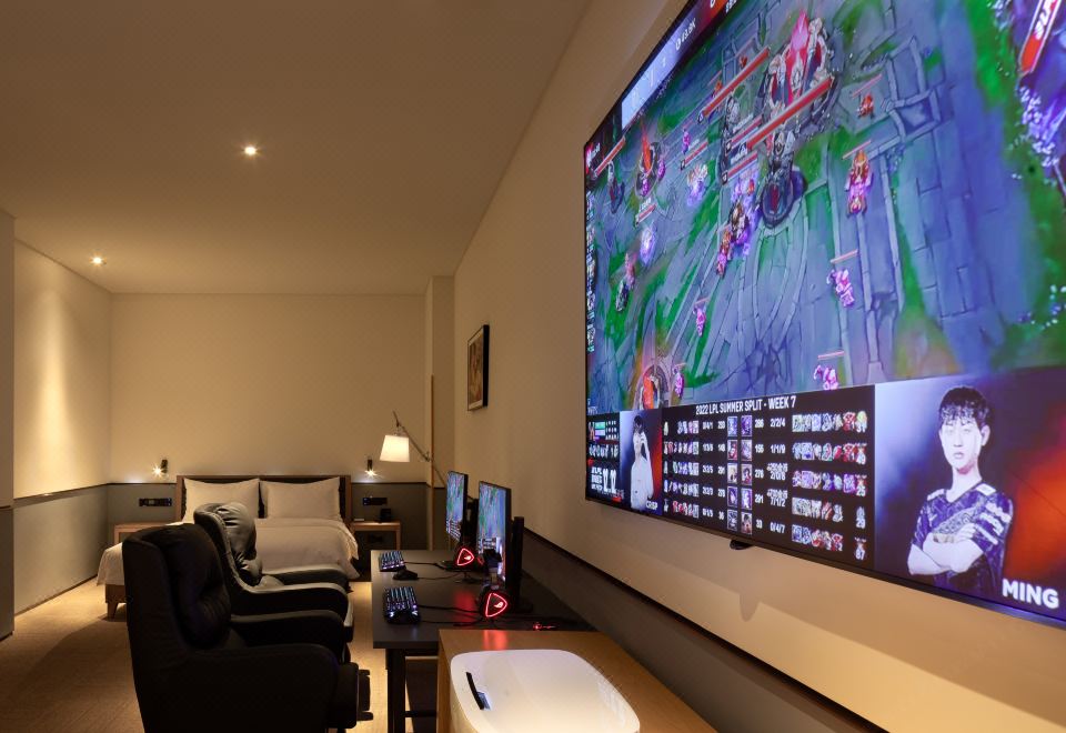 影音大床房[带双人电竞电脑]-极米巨幕投影+金可儿床垫+全屋智能客控+松下智能马桶+胶囊咖啡机