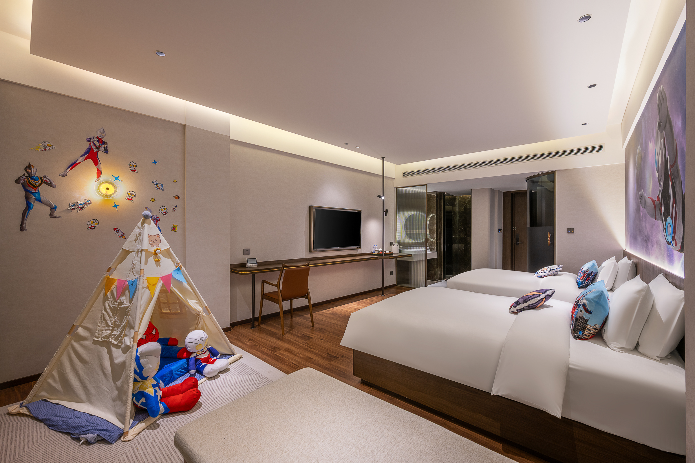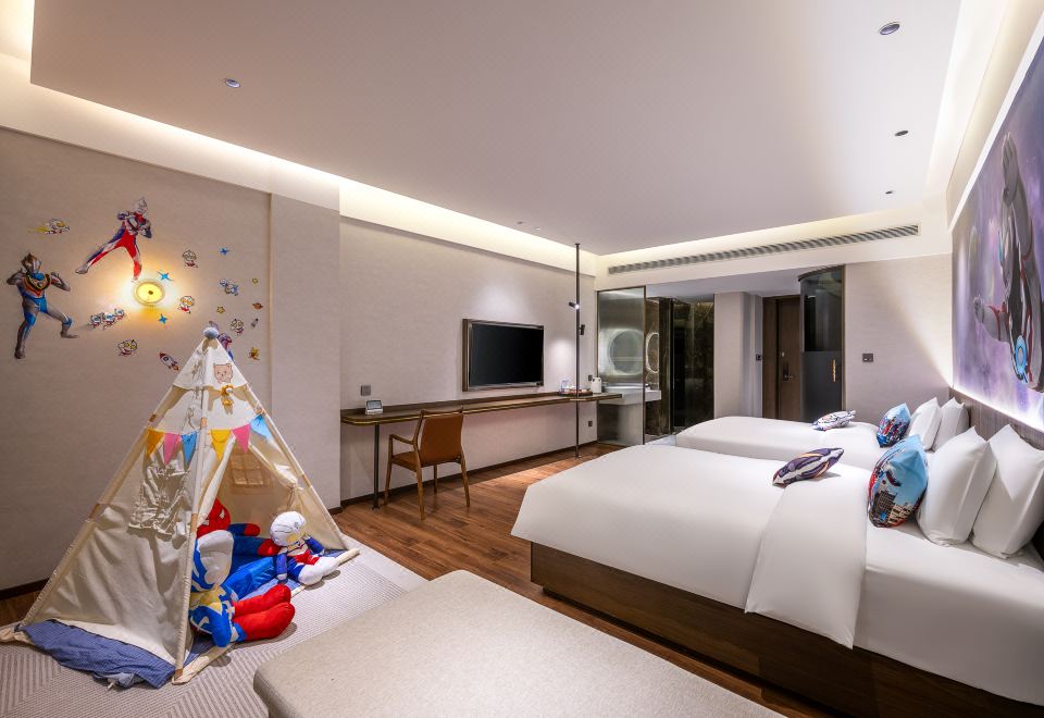 花园亲子房【主题霸王龙丶艾莎公主丶奥特曼+书吧】