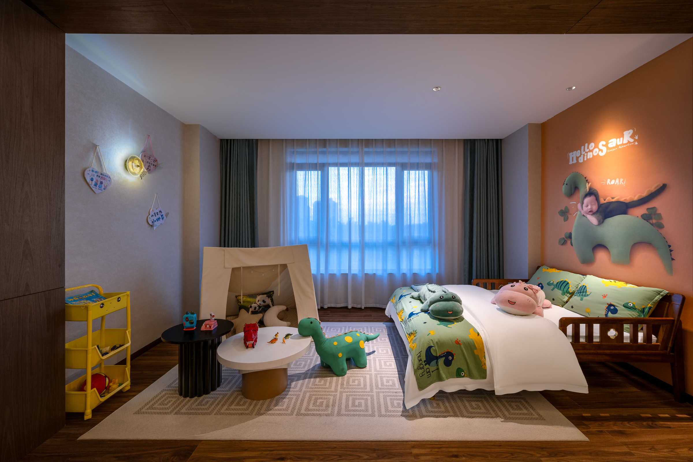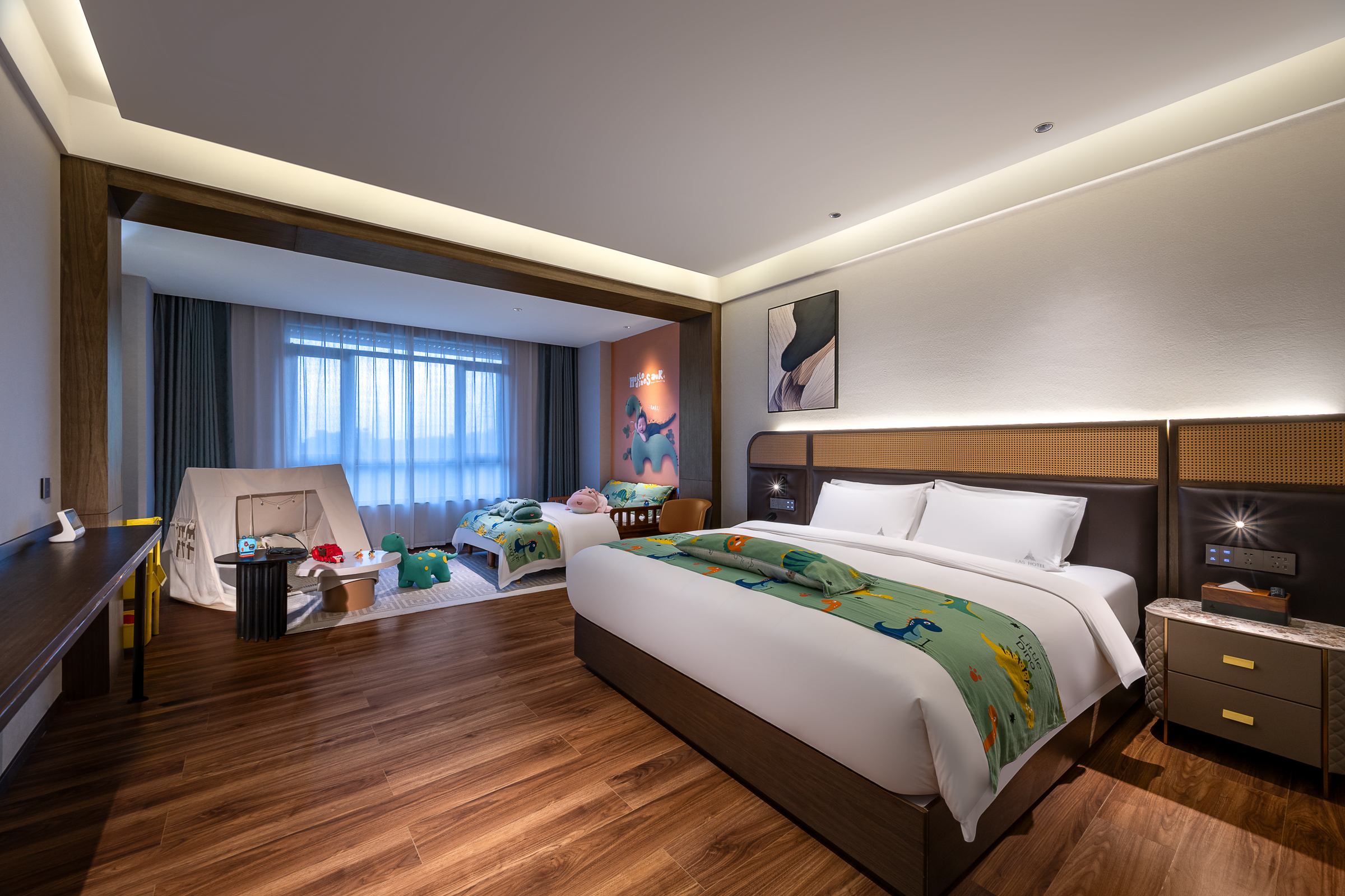 霸王龙亲子房【全屋智能+多维护腰床垫+含95%进口羽绒被+小童书吧+玩具】