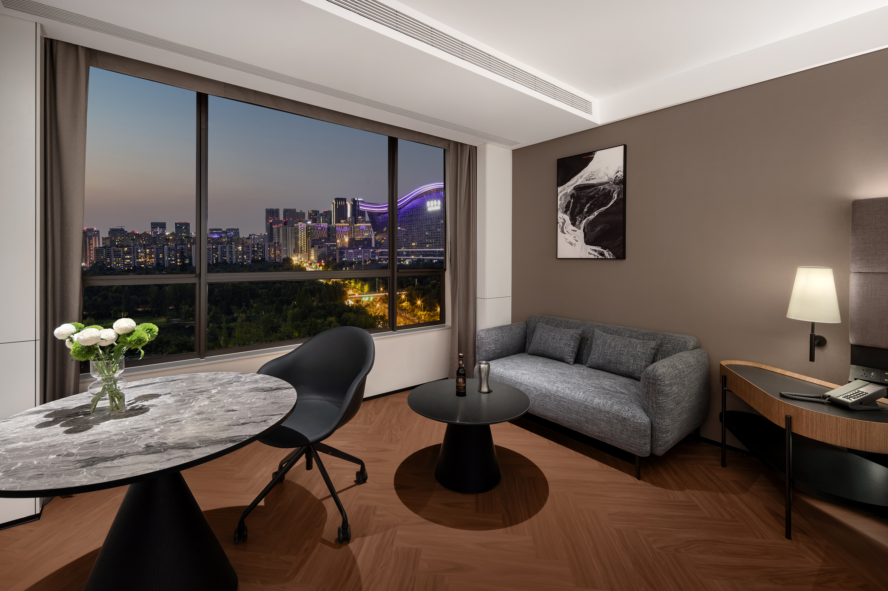 城际豪华景观房-大床(丝涟床垫+智能马桶+环球夜景)