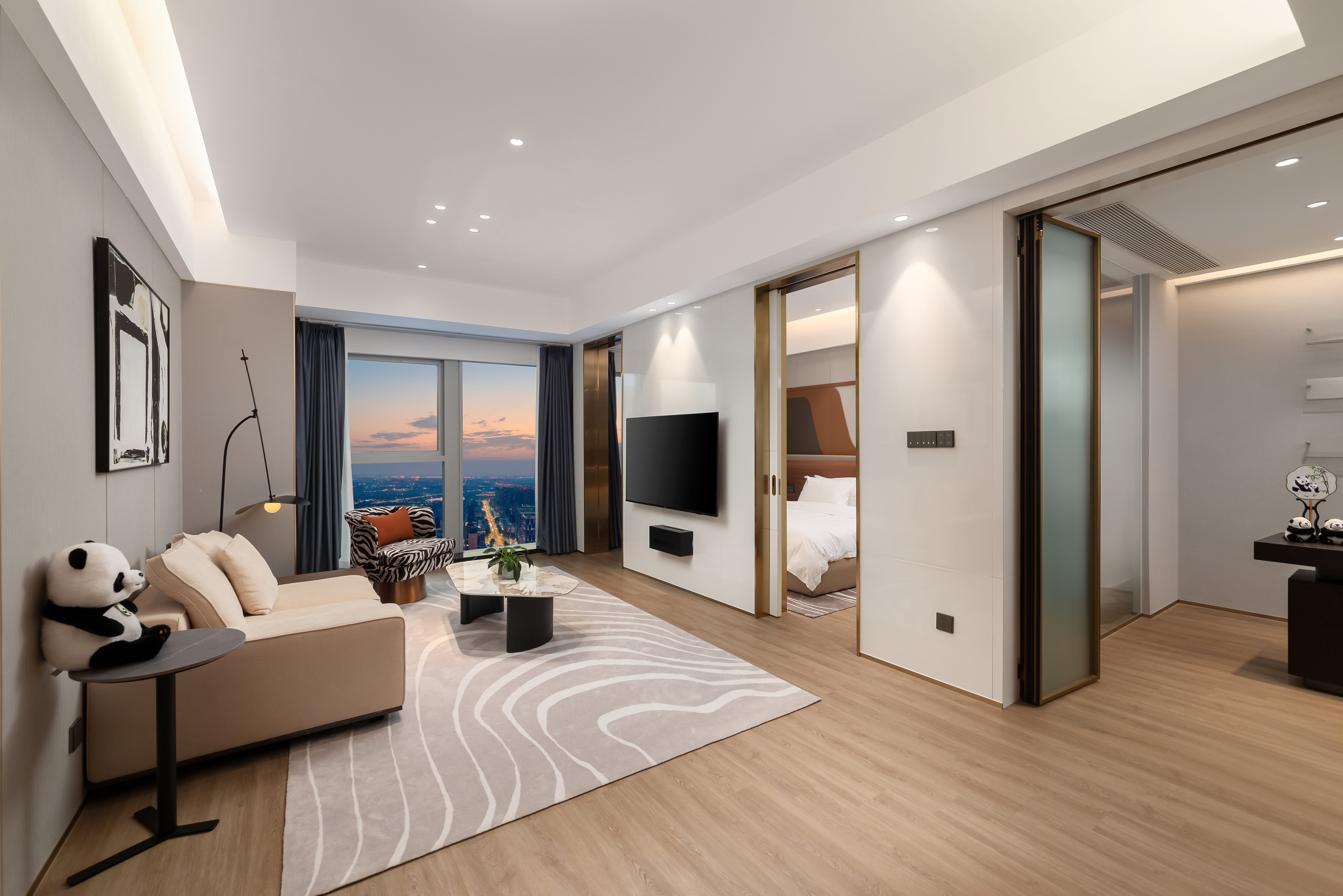 270°观景双子塔双卧套房(270°环绕天际线+270°高空夜景)