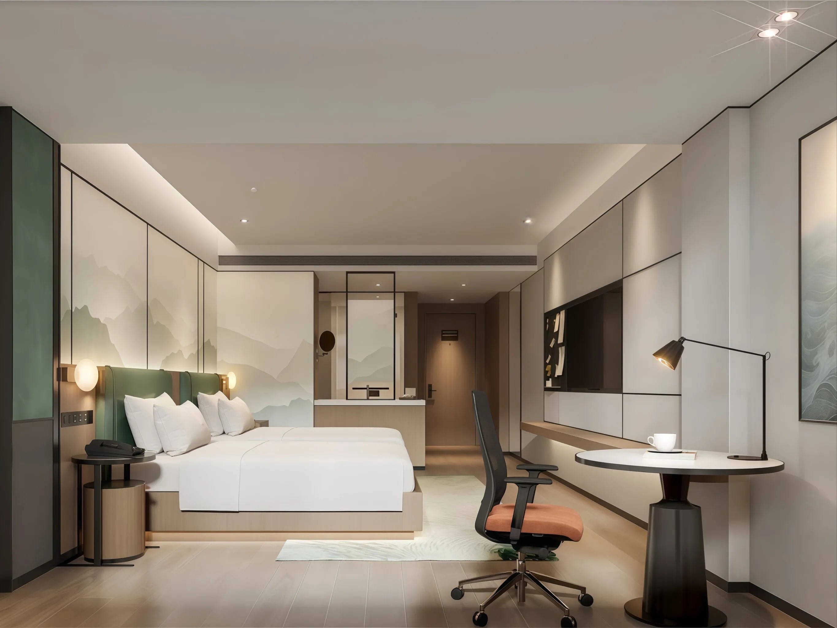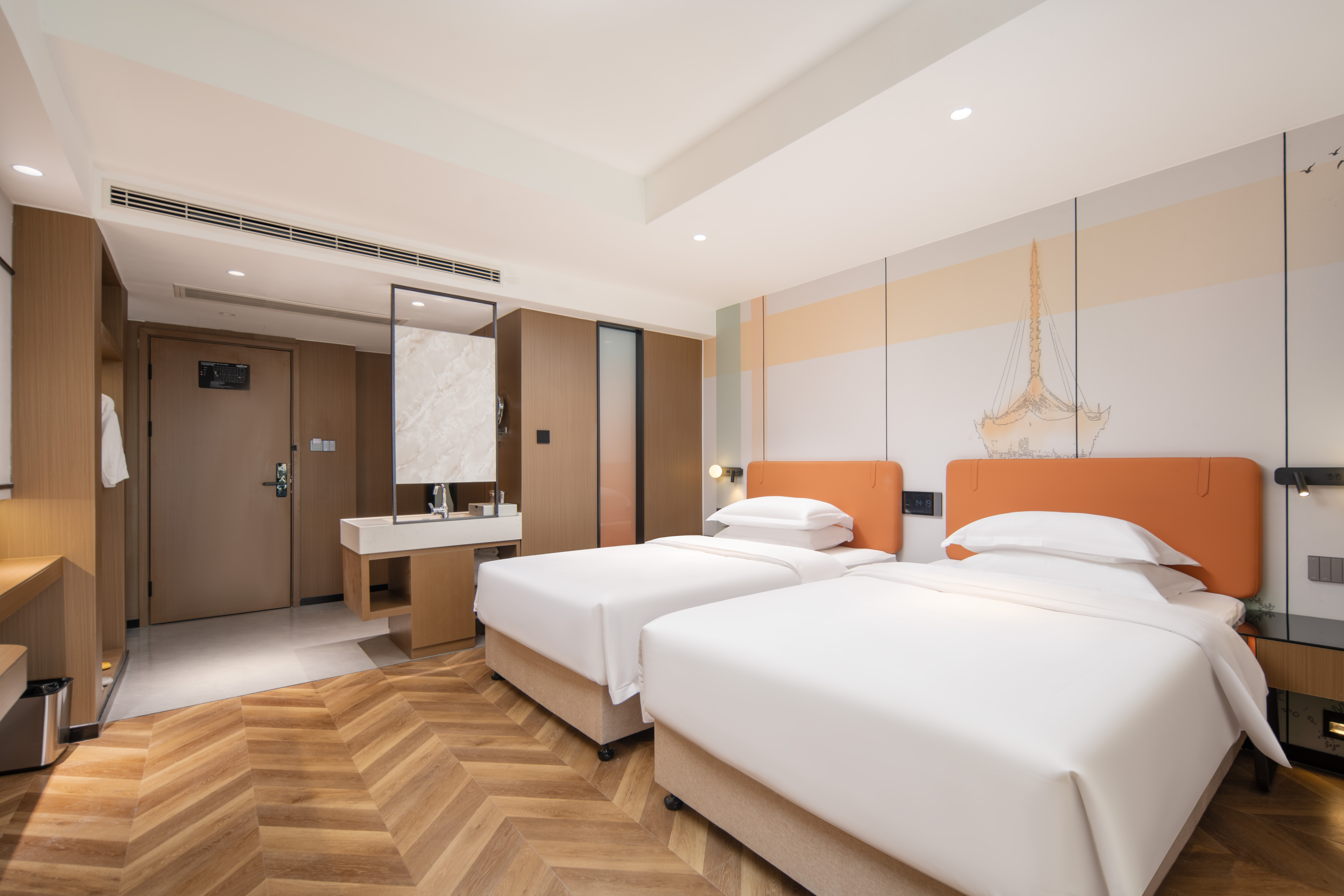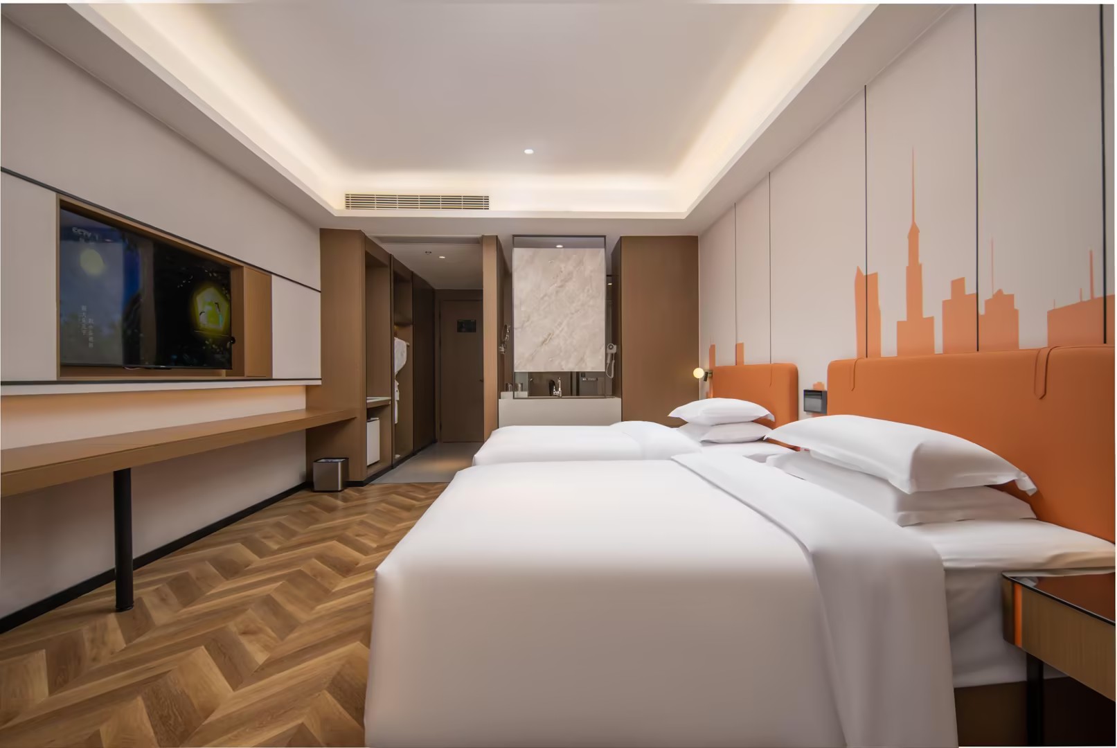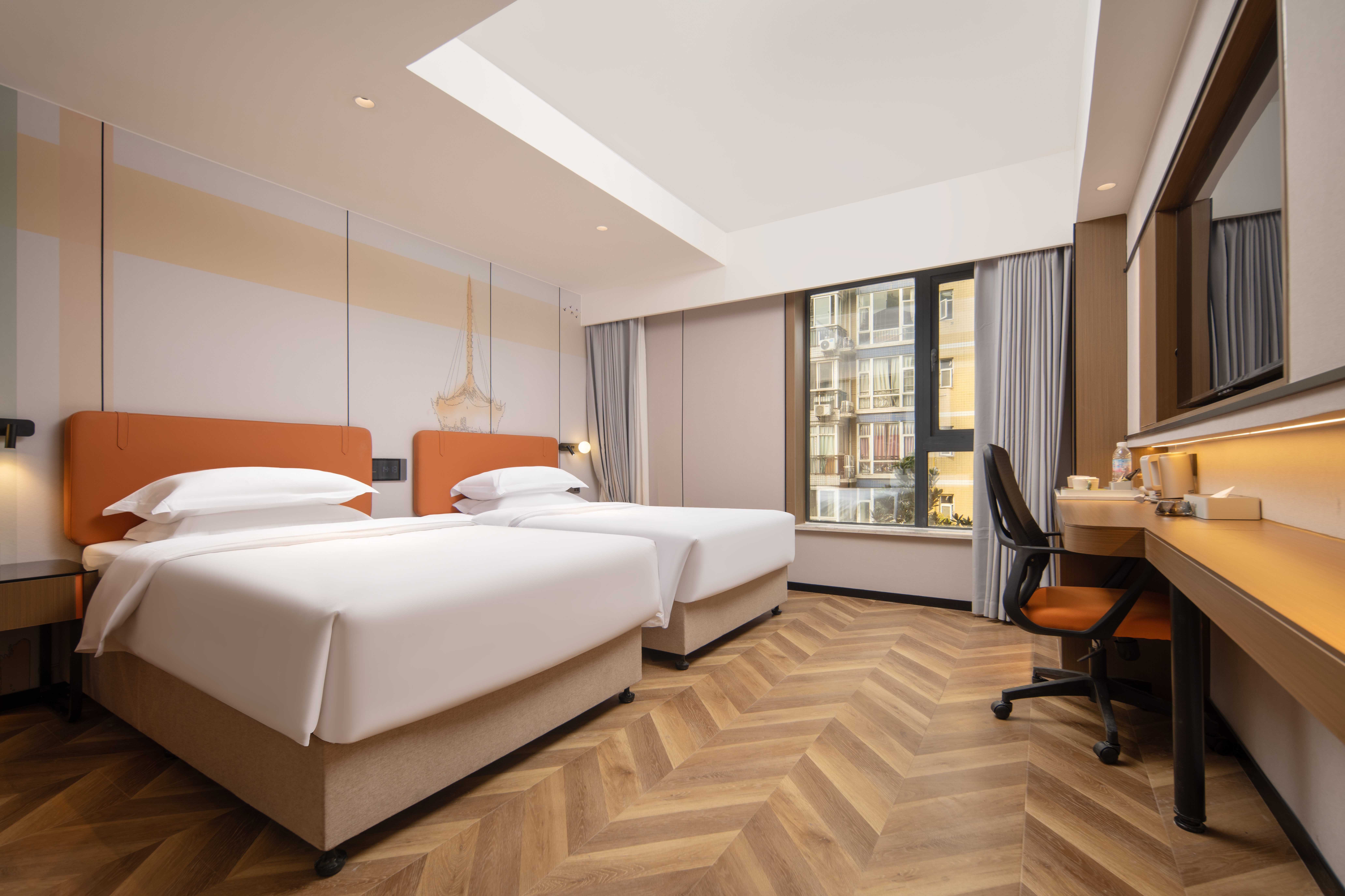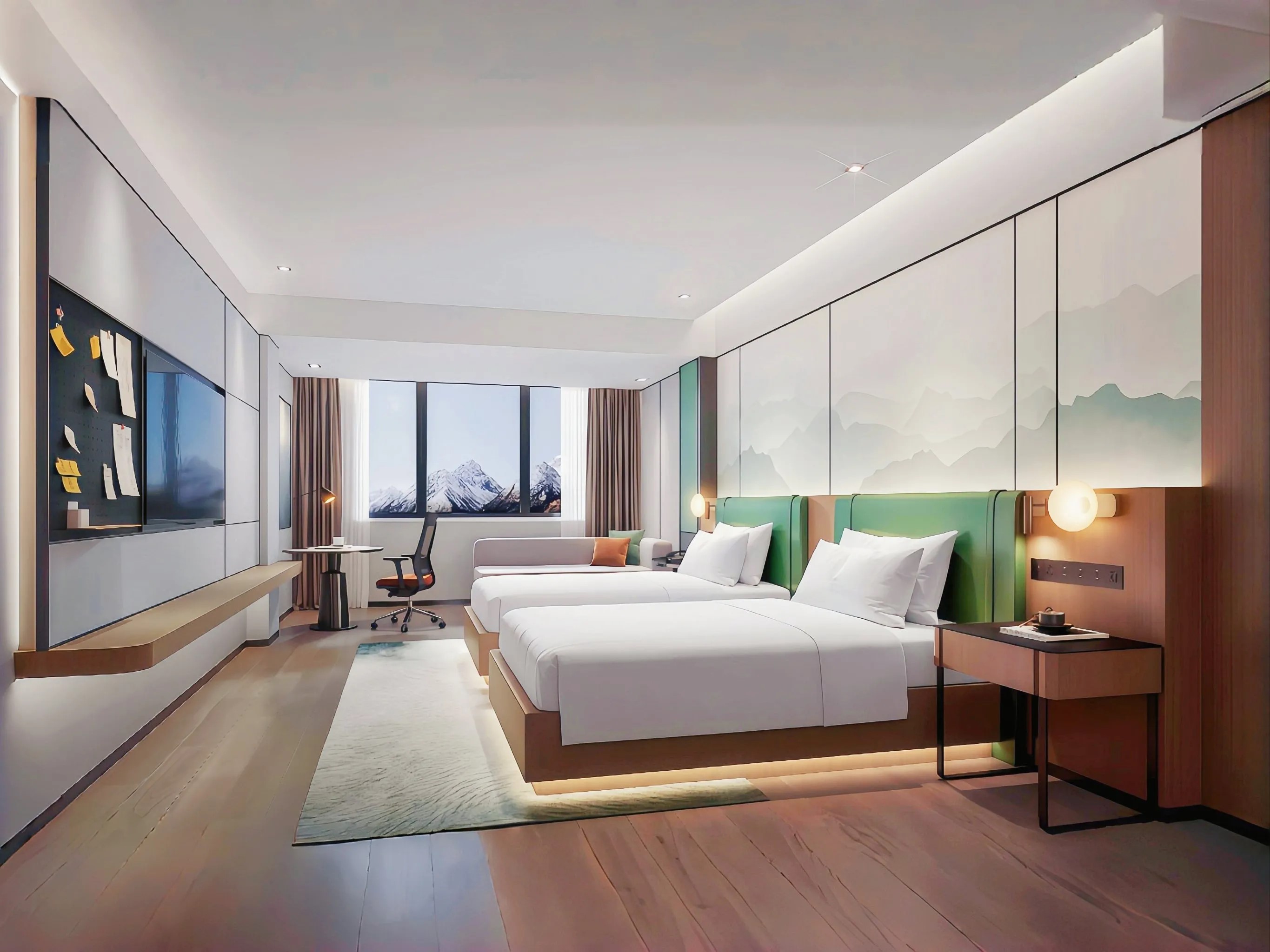 惠享-环球舒适双床房(全屋小度语音智能+空气净化器丨中央空调+办公桌椅)