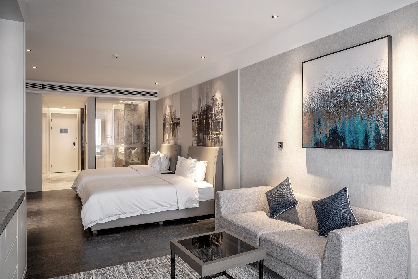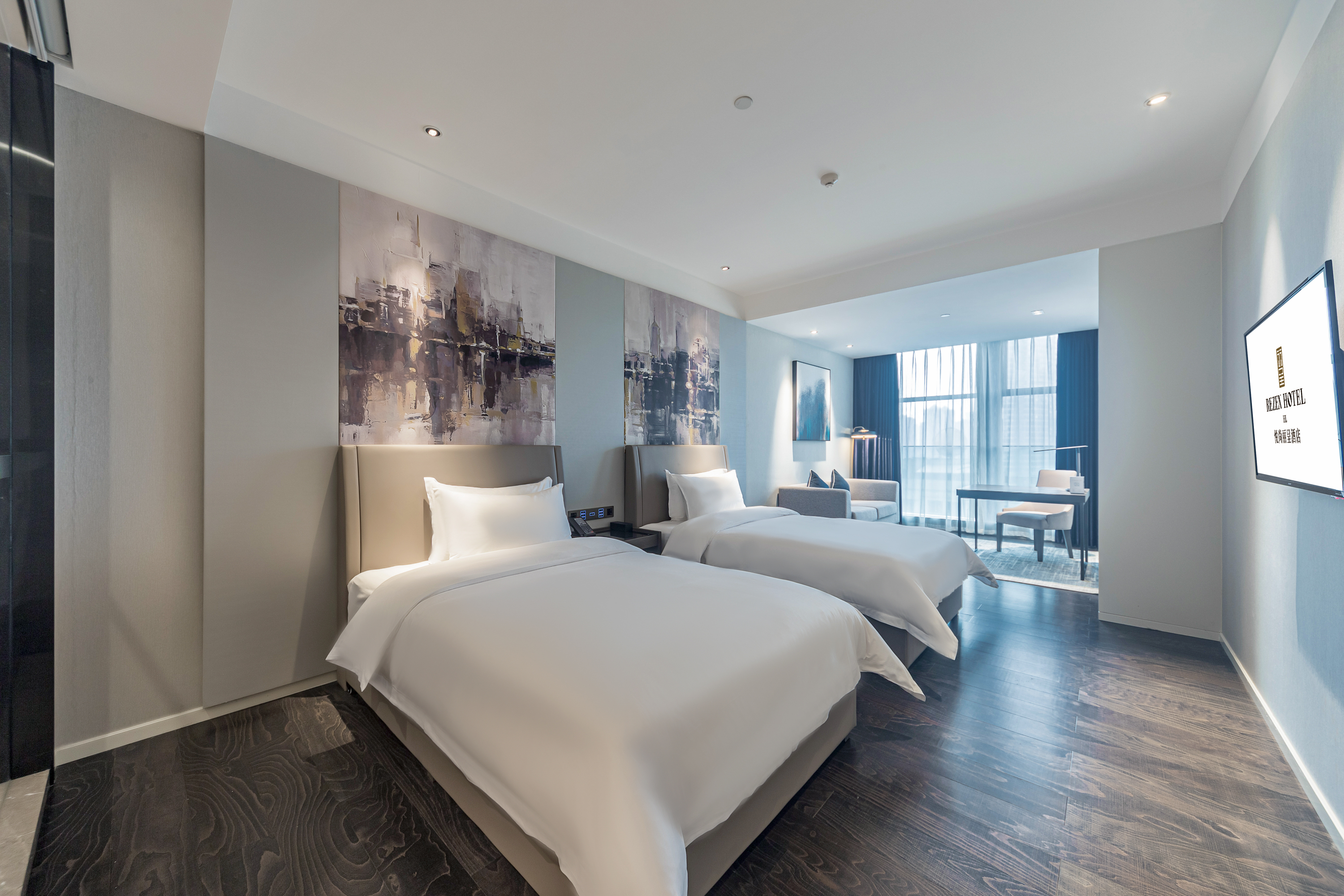 豪华双床房(智能马桶+城景落地窗+双人沙发)