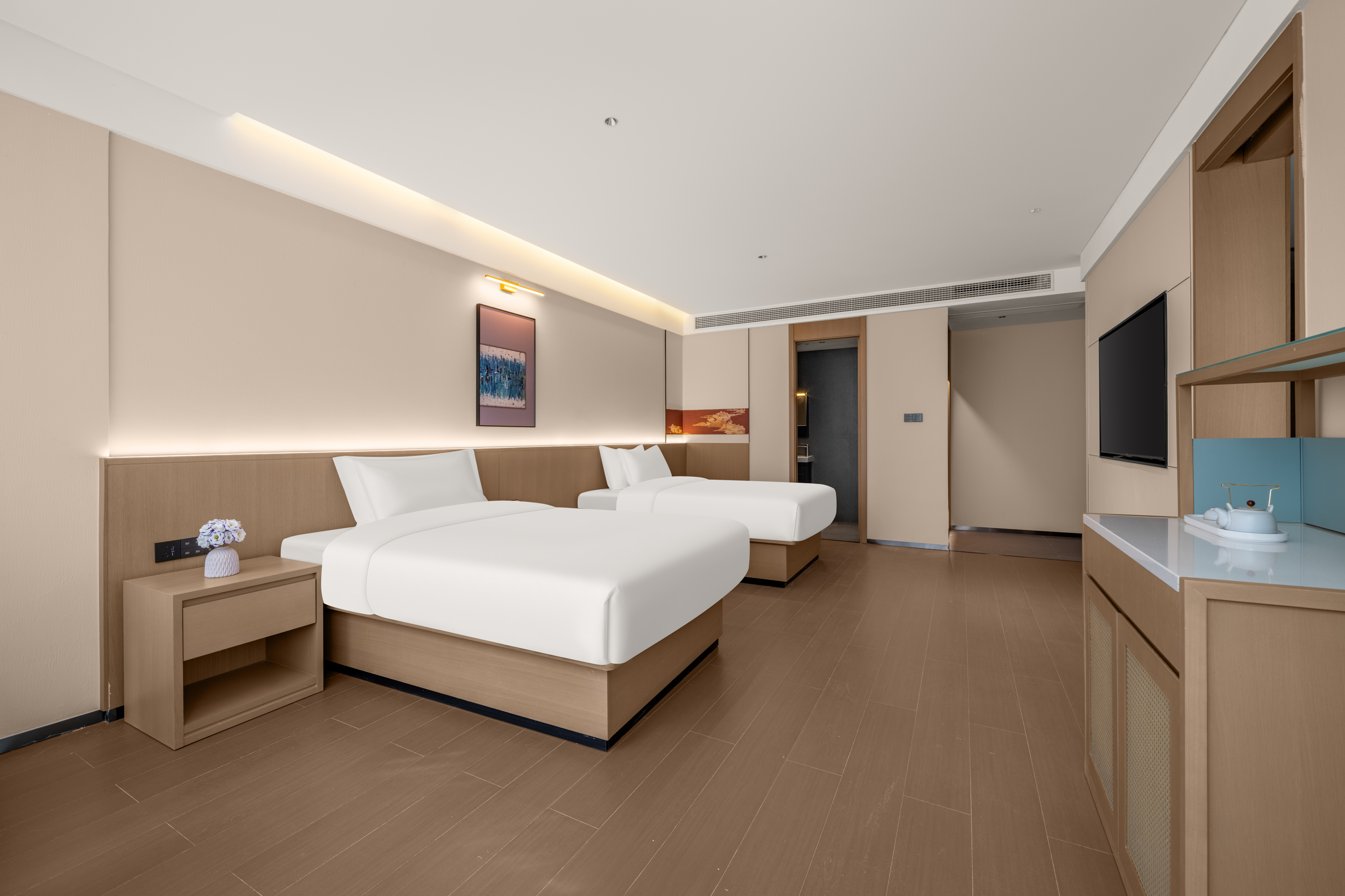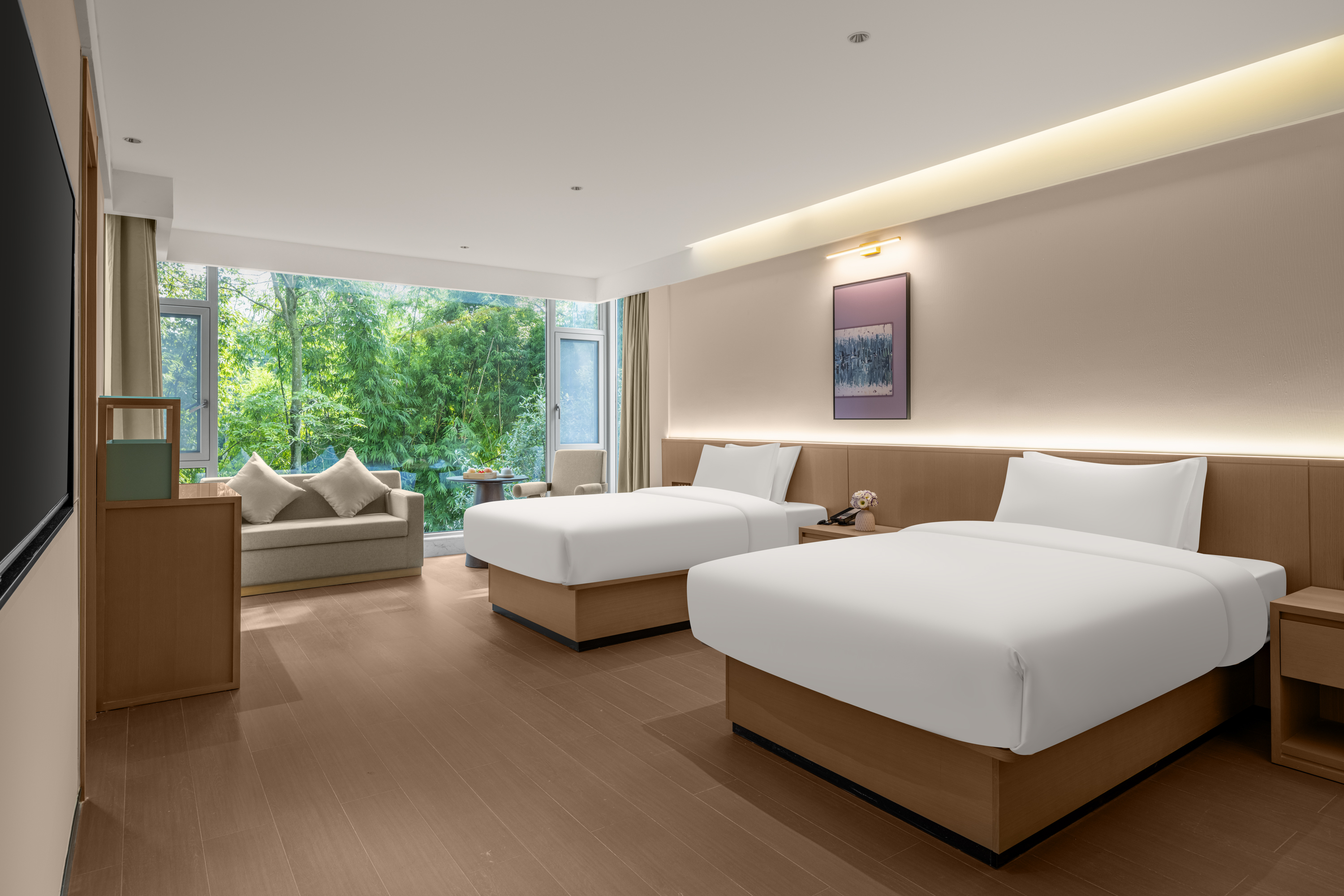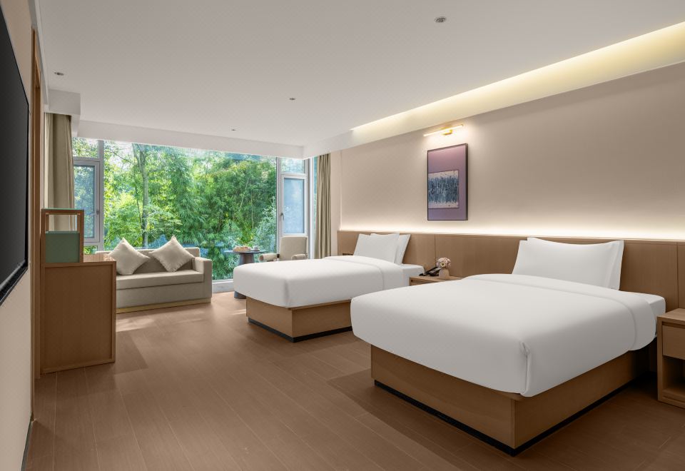 堰水轩双床房(依河而筑+智能客控+落地窗)