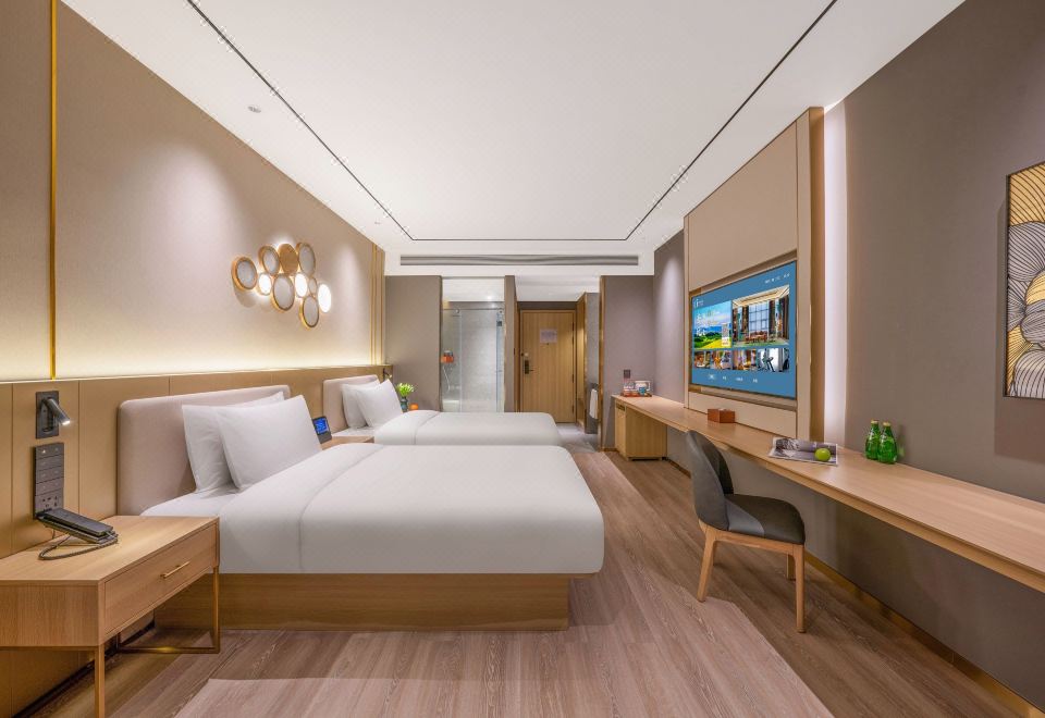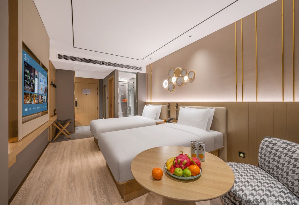 月若流金双床房(雨淋顶喷+语音客控+小冰箱)
