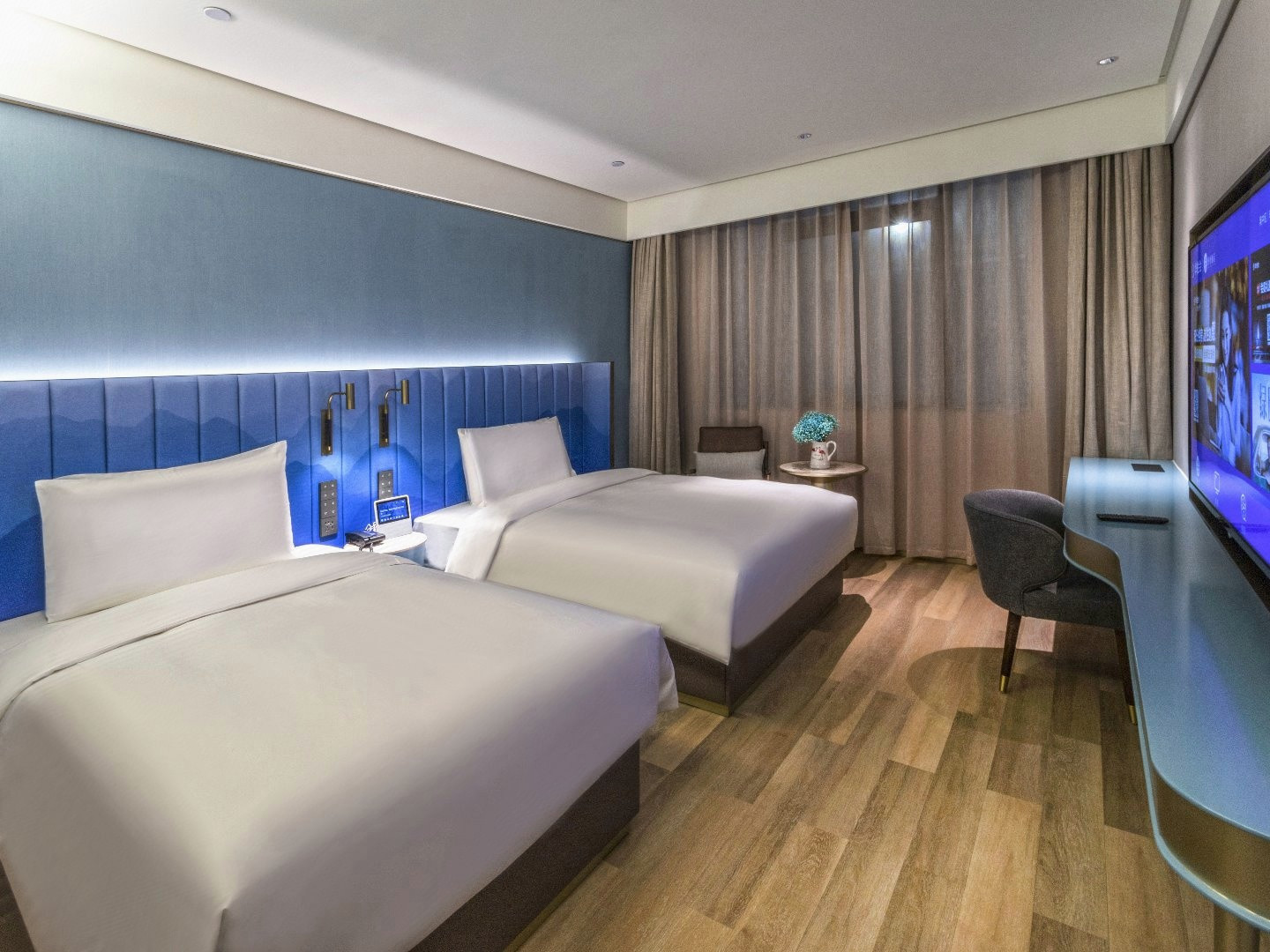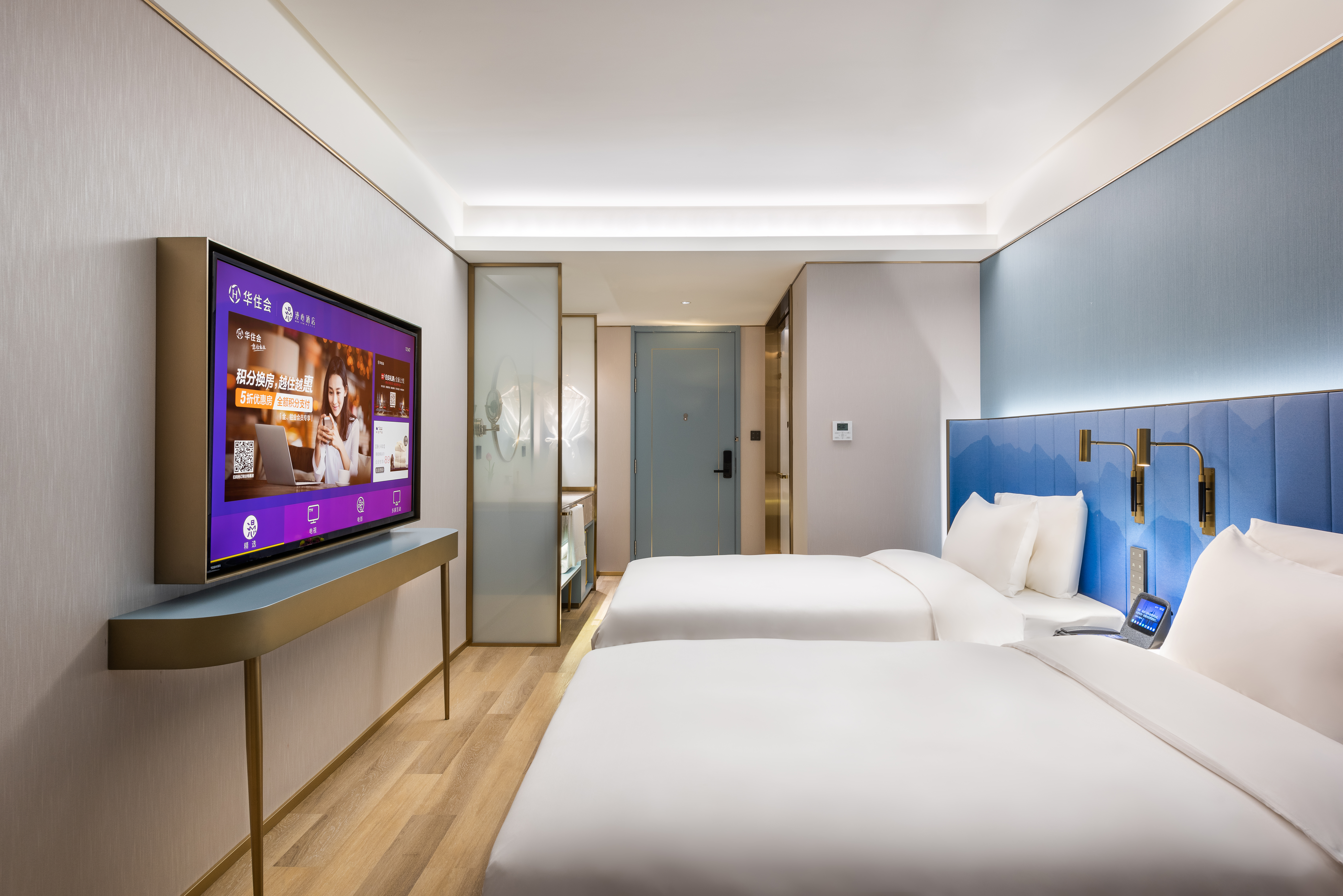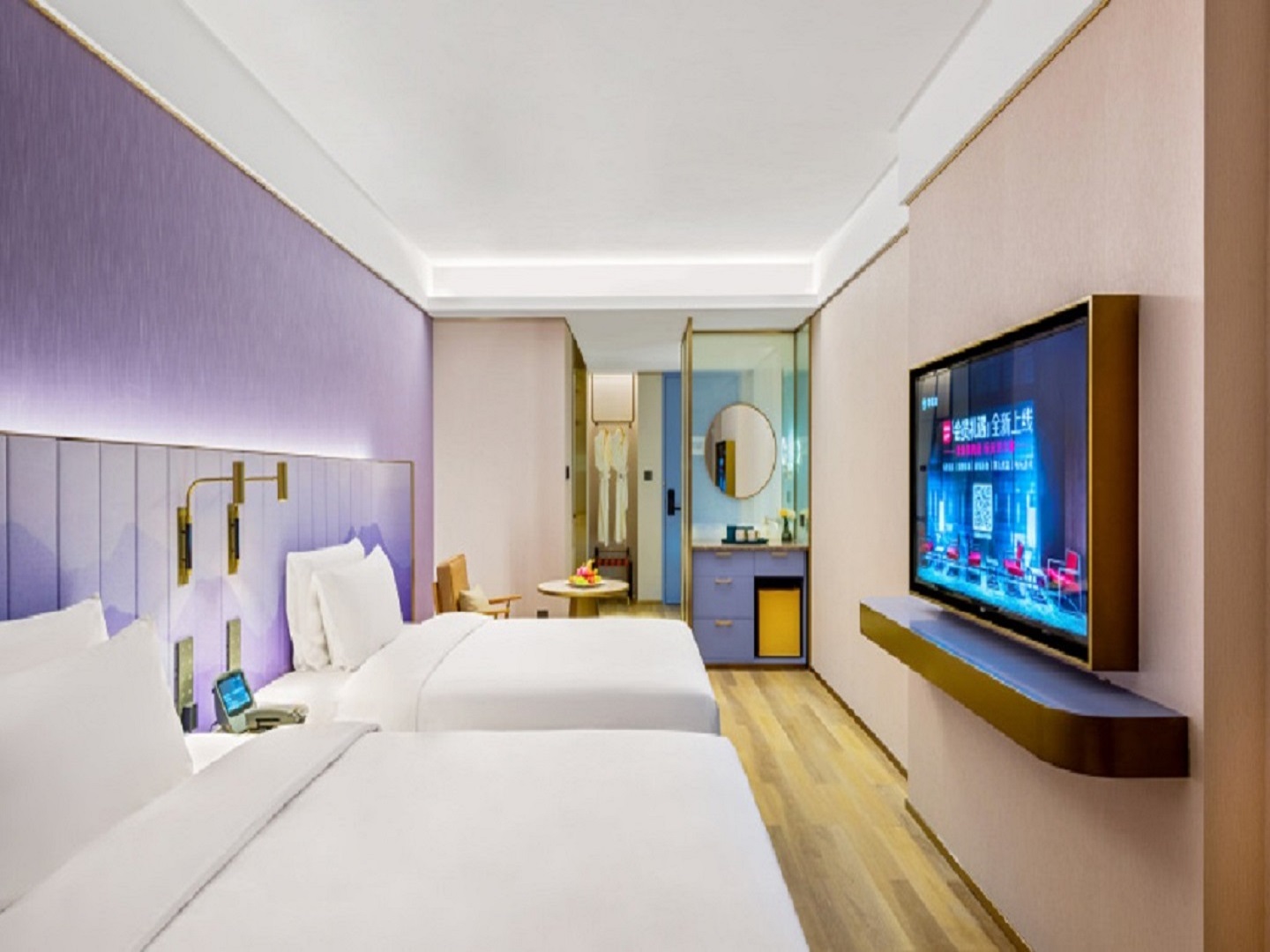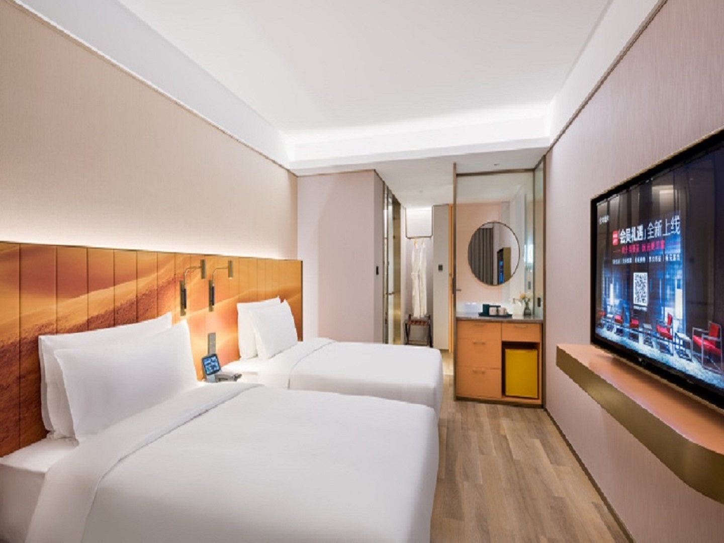 心悦高级双床房(圆桌+65寸电视投屏)
