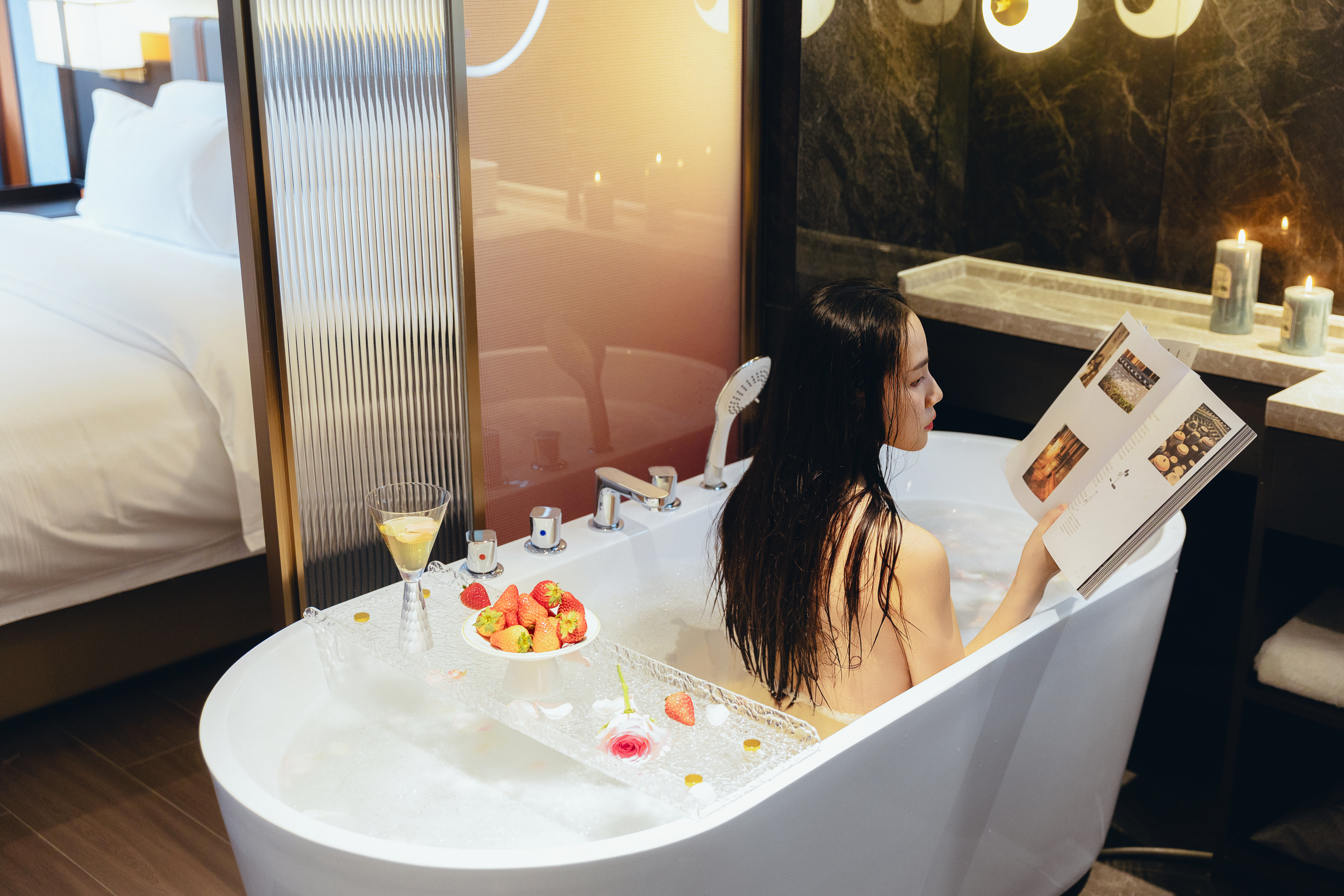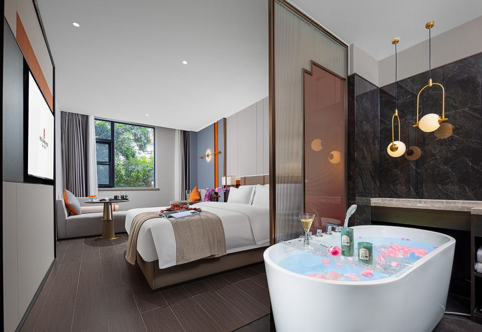 豪华大床房(65寸投屏电视+零压床品+智能马桶+浴缸)