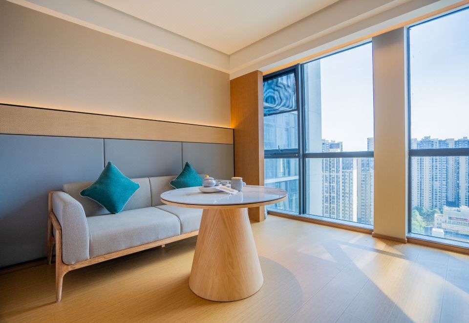 商务大床房【雨淋顶喷+高空景观+电视投屏+沙发休憩】