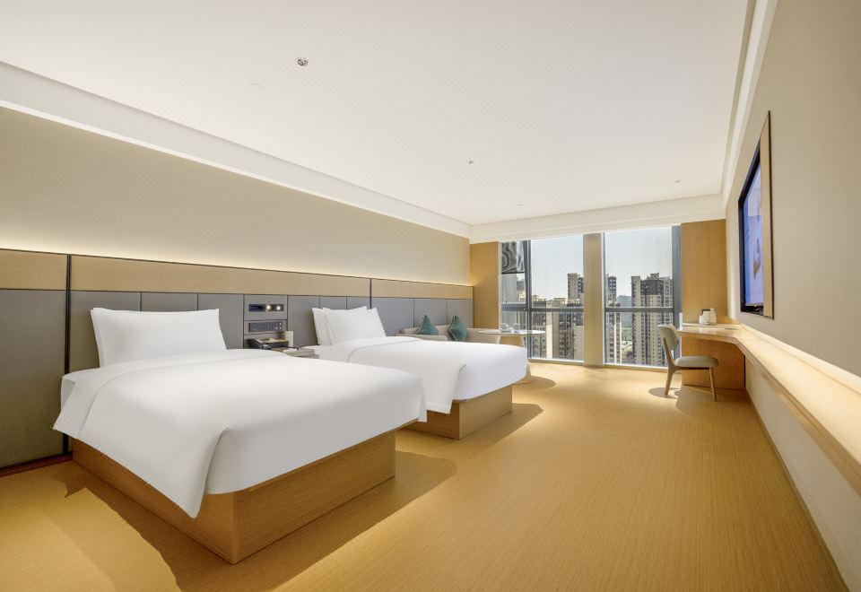 豪华双床房【雨淋顶喷+高空景观+电视投屏+睡眠香氛】