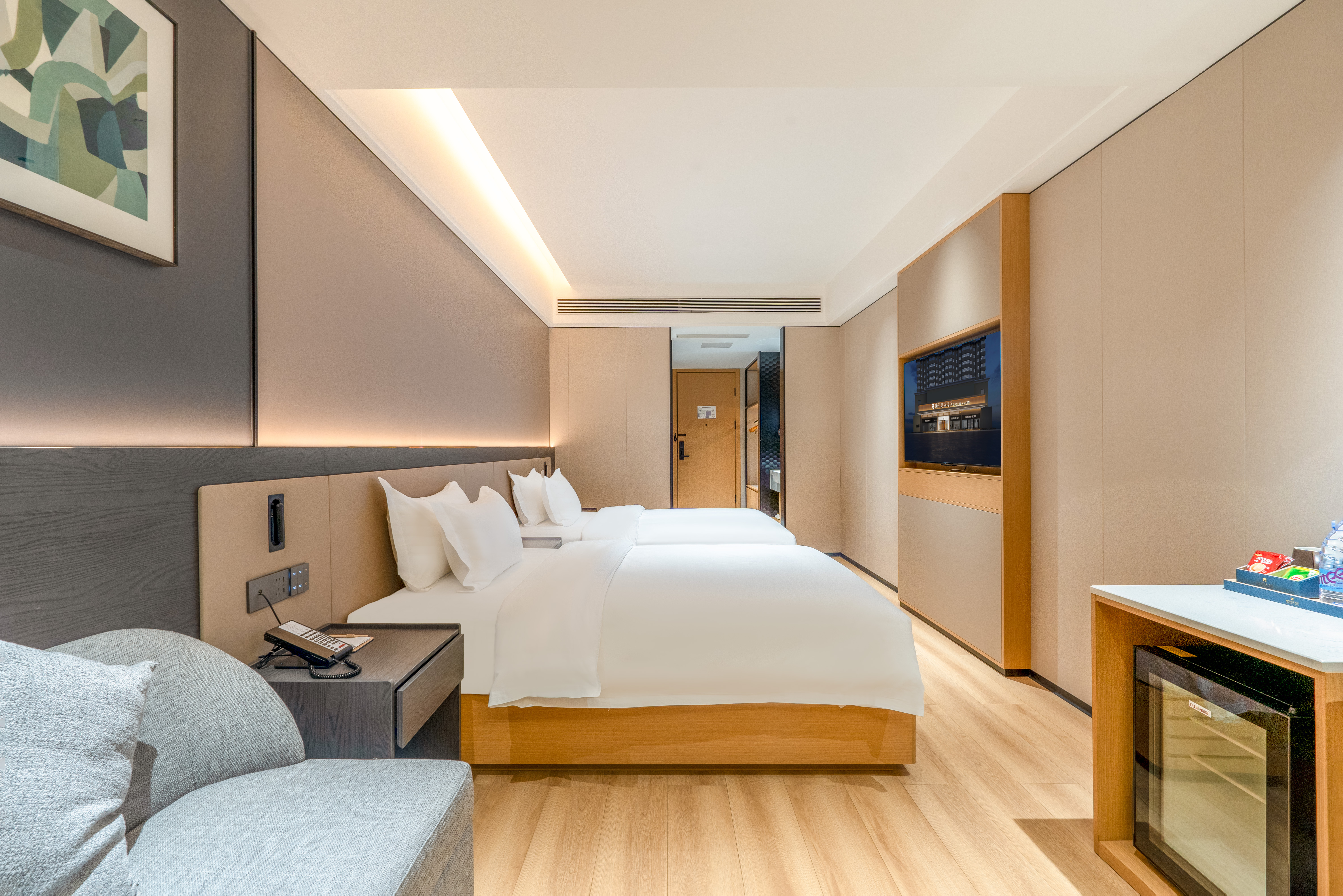 瑞享双床房(液晶投屏+负离子新风+迷你小冰箱)